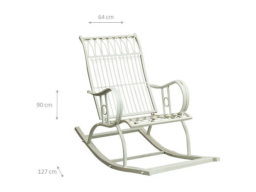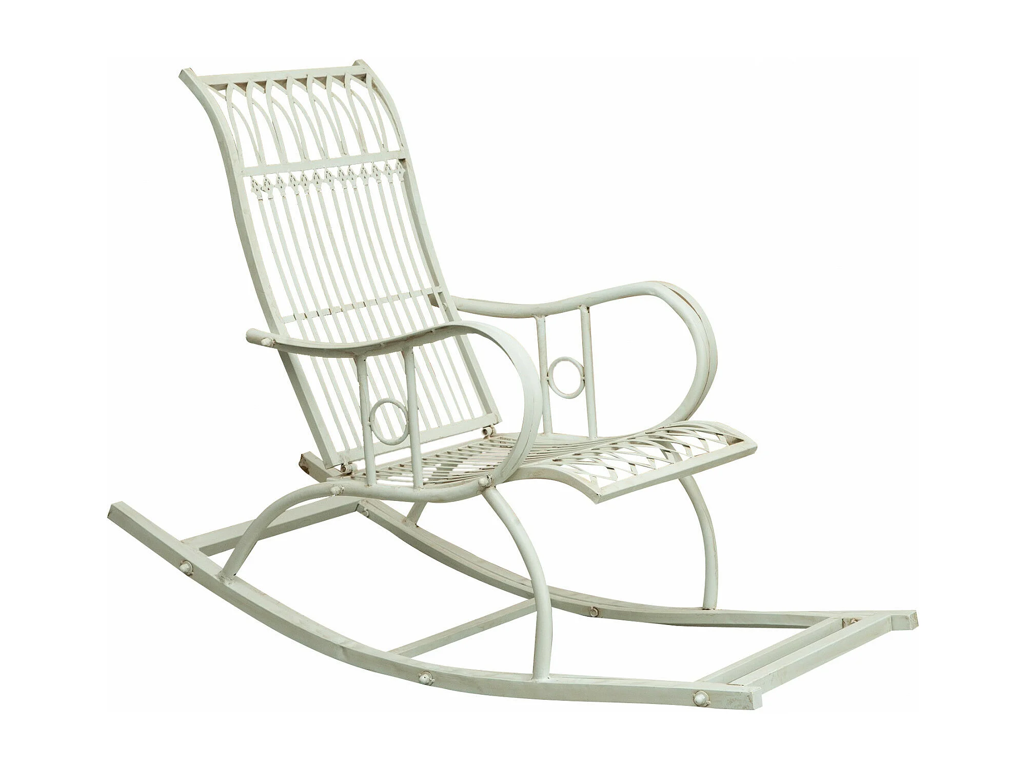 BISCOTTINI Chaise à Bascule - Fer Forgé Finition Blanc Antique - Chaise de Jardin - Mobilier de Jardin - Chaise d'Extérieur - Terrasse - Balcon - 127x64x90cm