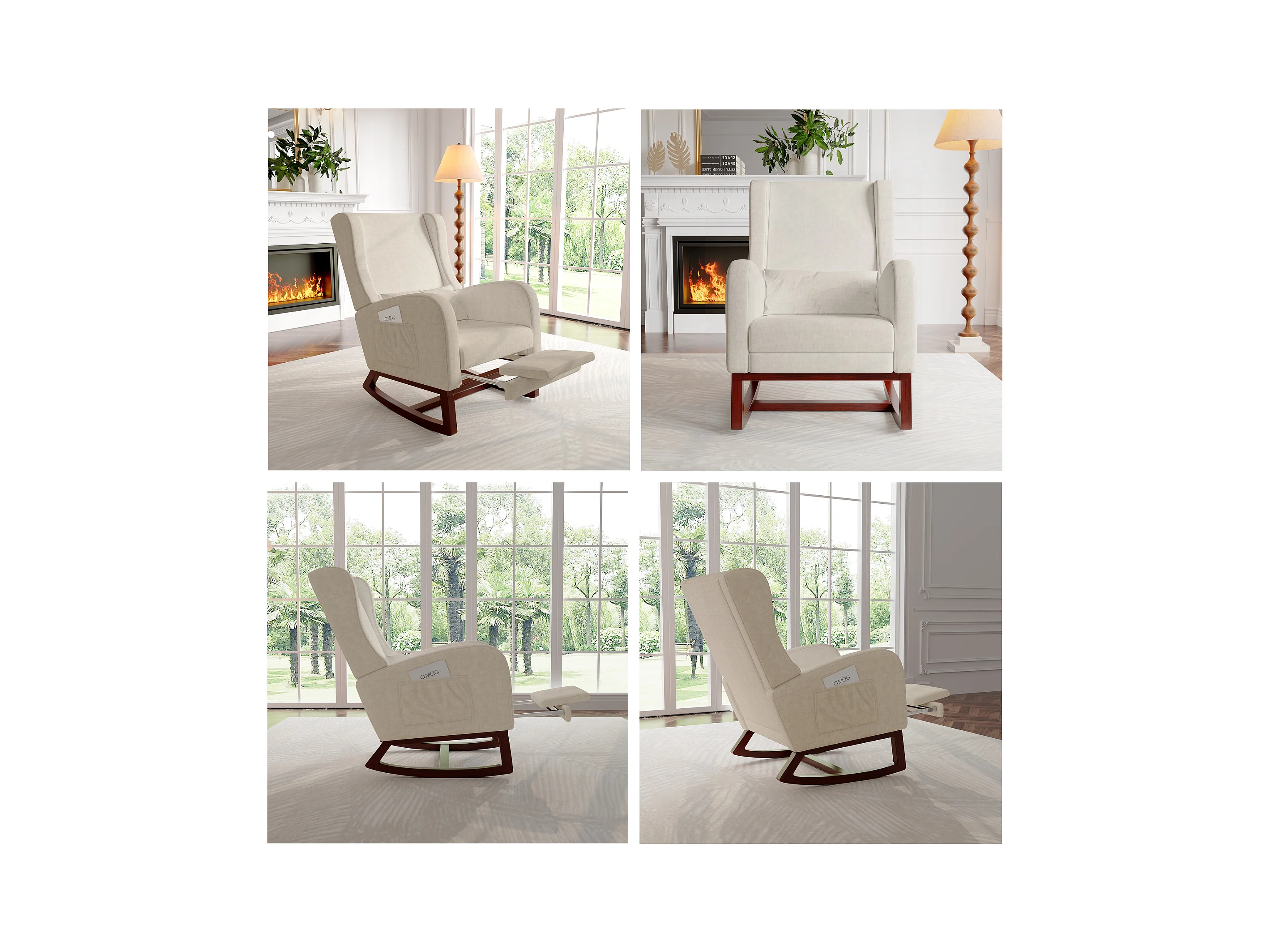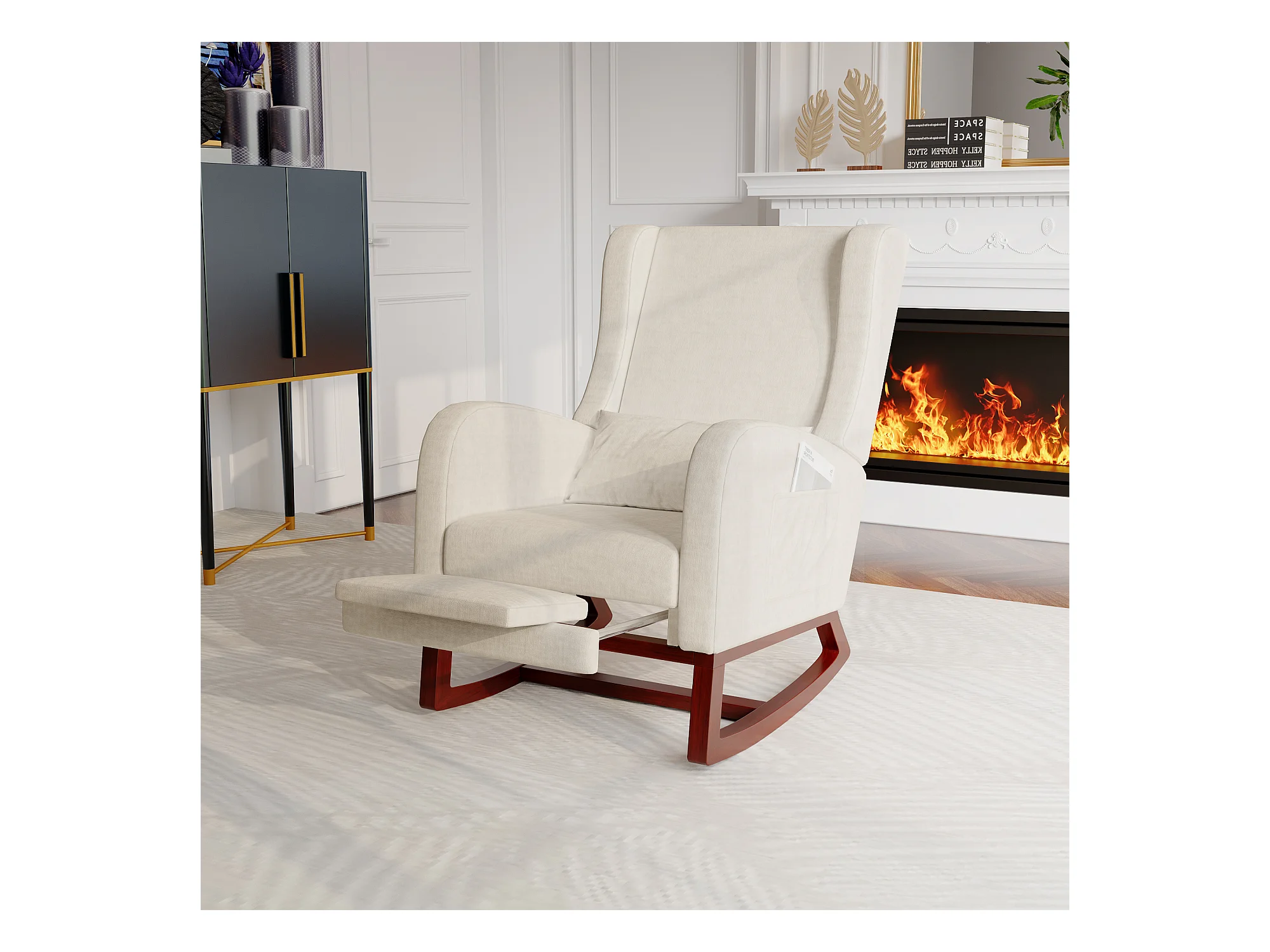 Fauteuil à bascule, Chaise à Bascule - Jambes Rétractable Chaise - Beige