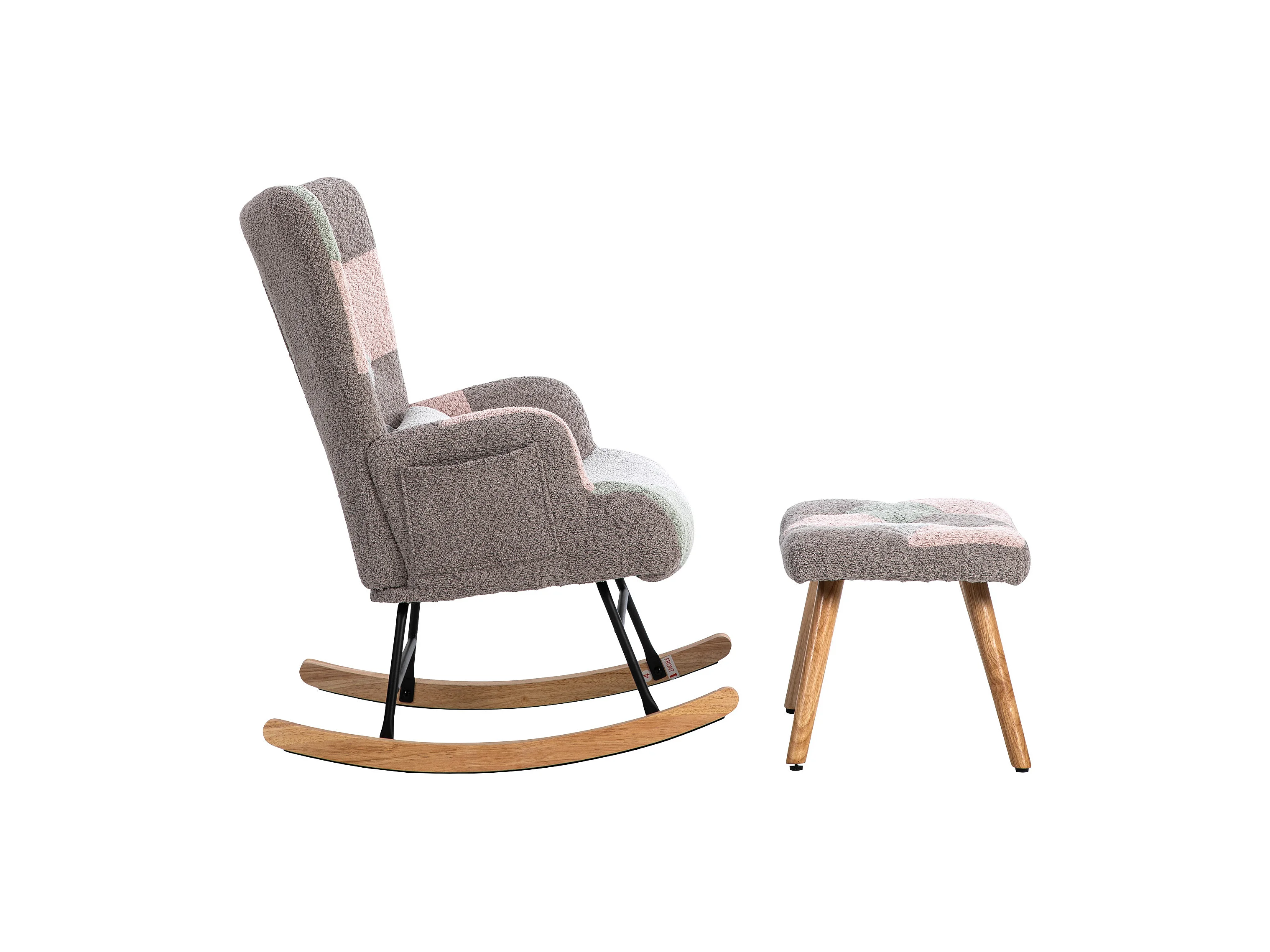 Fauteuil à bascule avec tabouret Patchwork Tissu LSJ7318