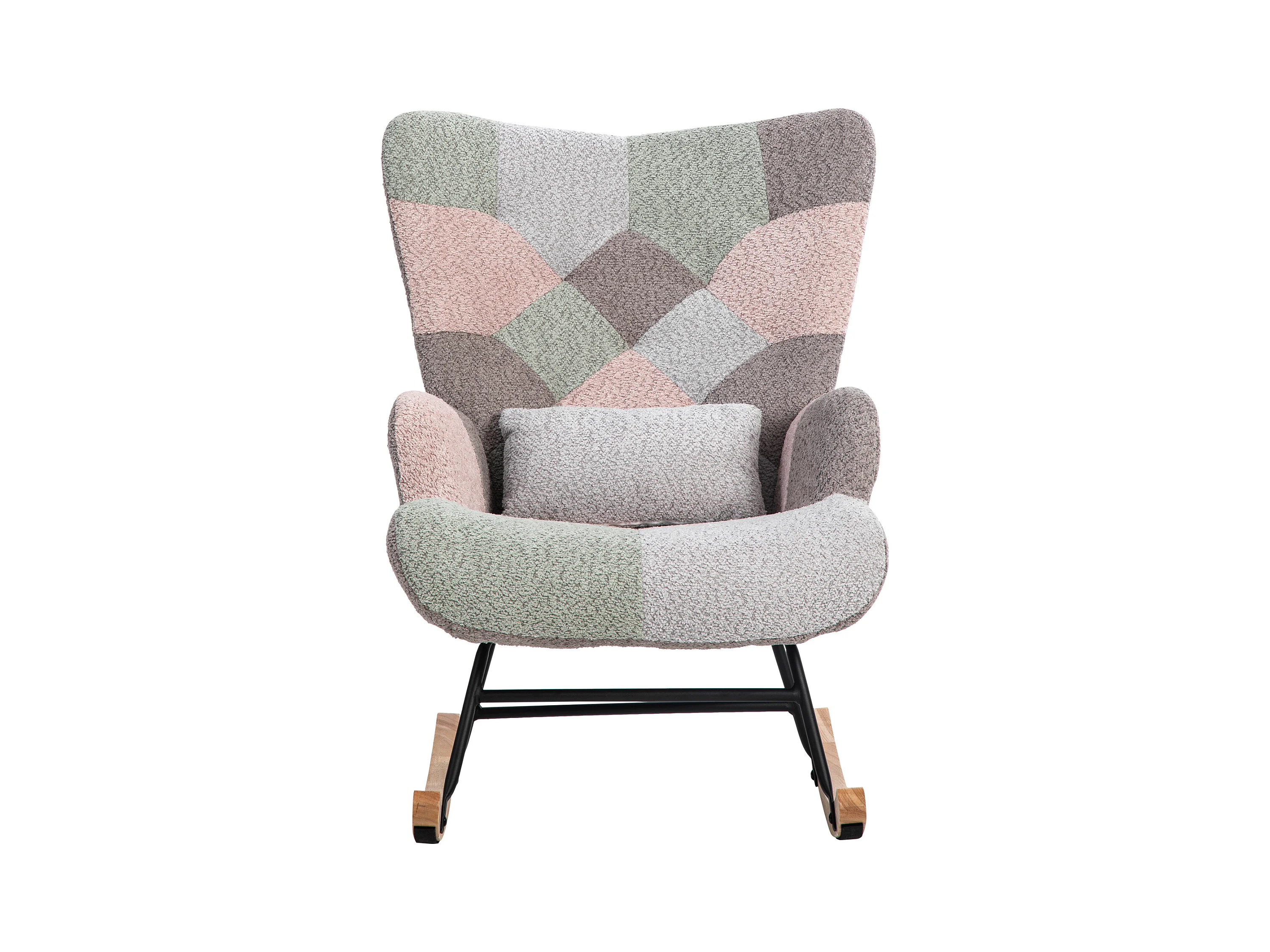 Fauteuil à bascule coloré avec repose-pieds et coussin - 68 x 83 x 91 cm - Teddy-Polaire, boid d'évéa et métal - Design multicolore