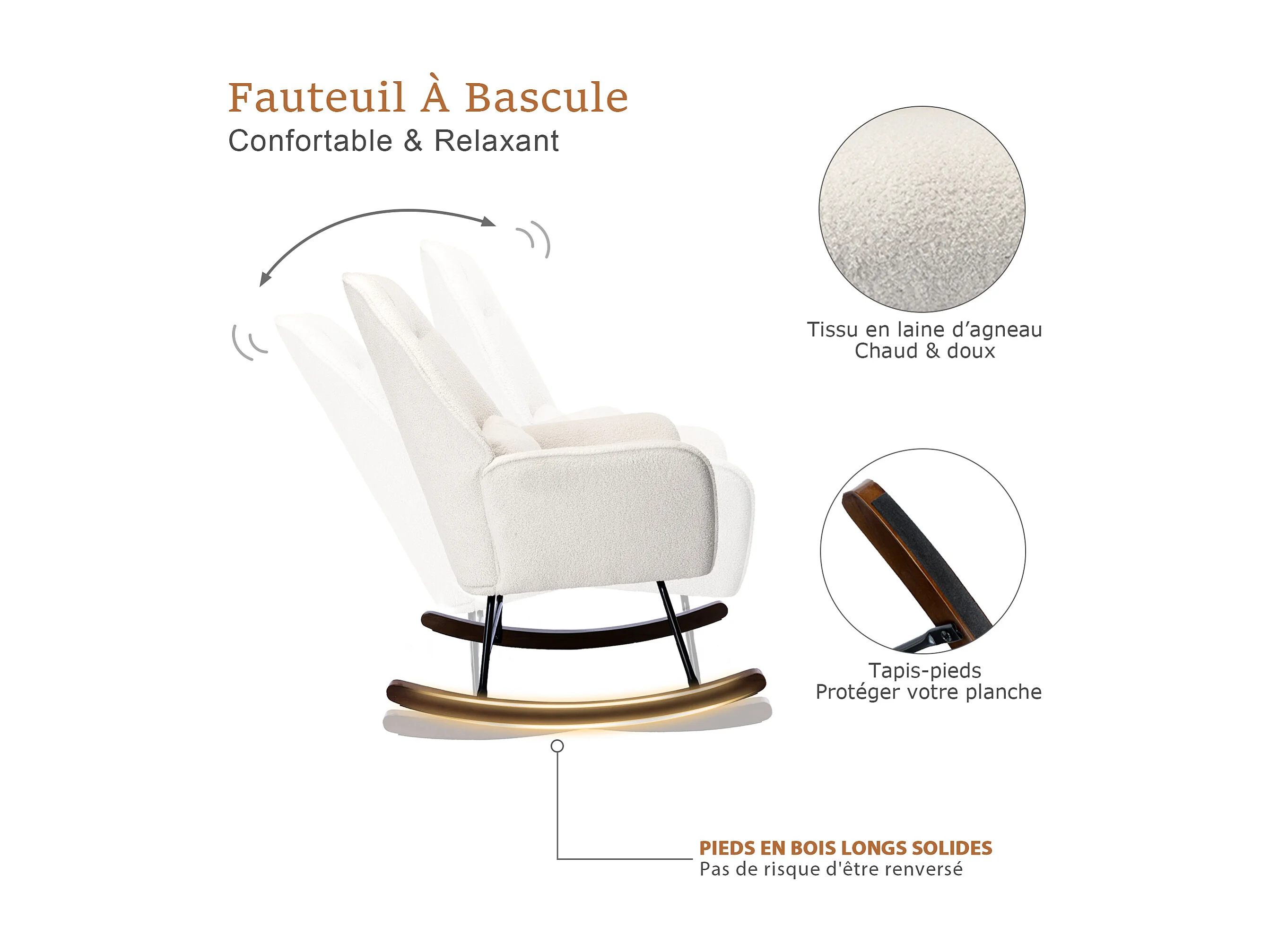 Fauteuil à Bascule en Laine d'agneau Fauteuil en Laine Moderne, Chaise à Bascule Confortable avec Pieds en Bois Massif Beige