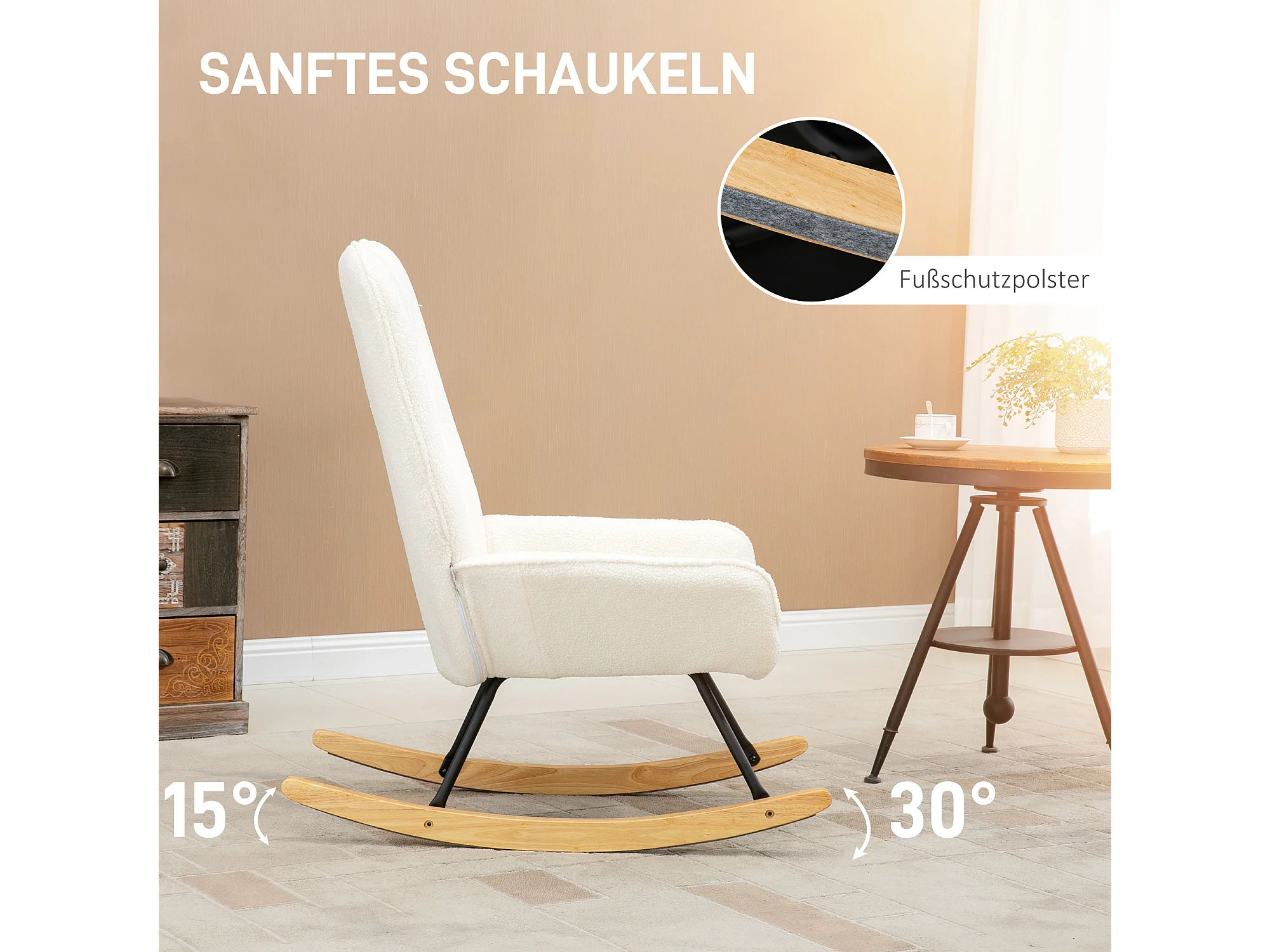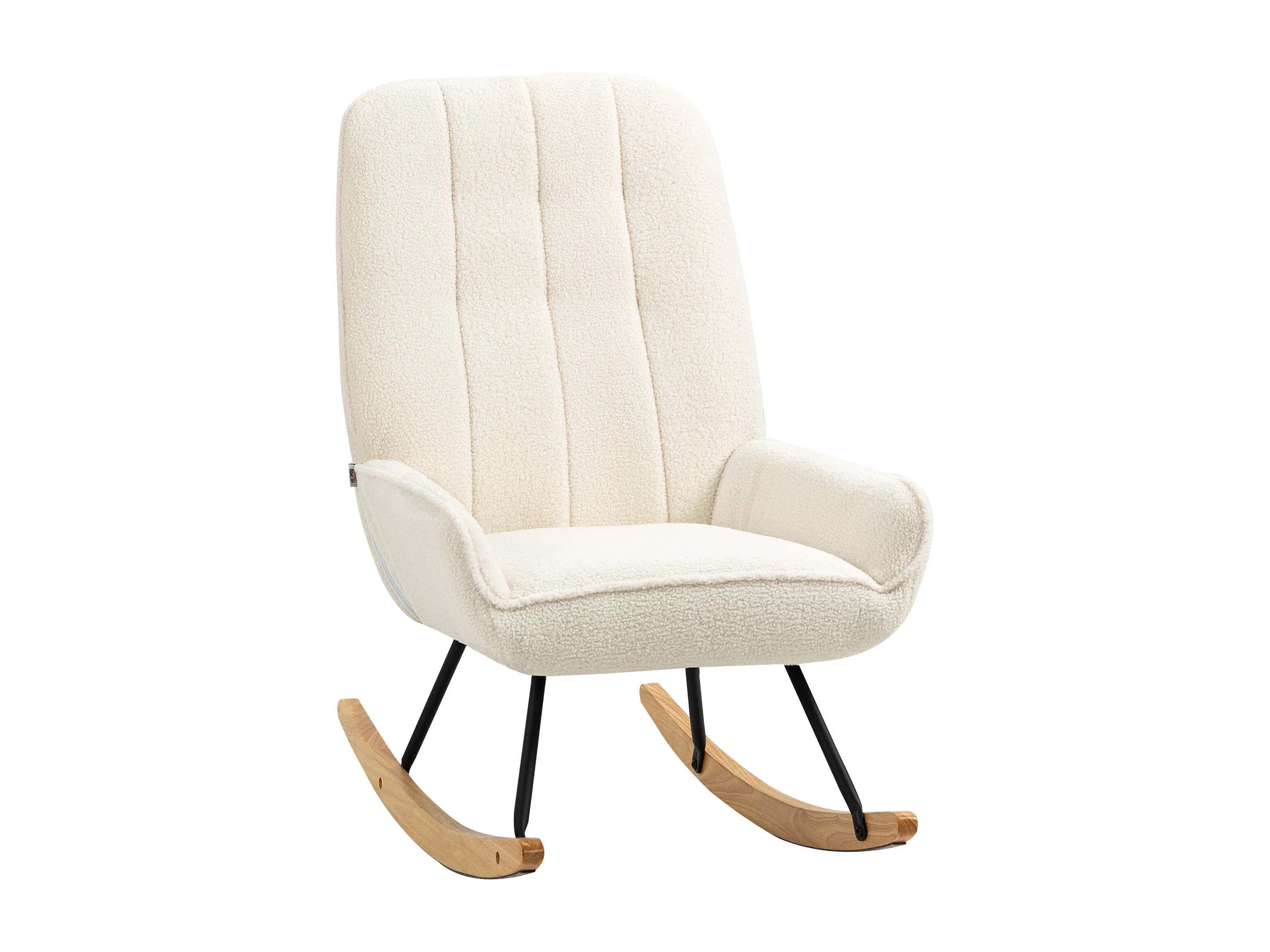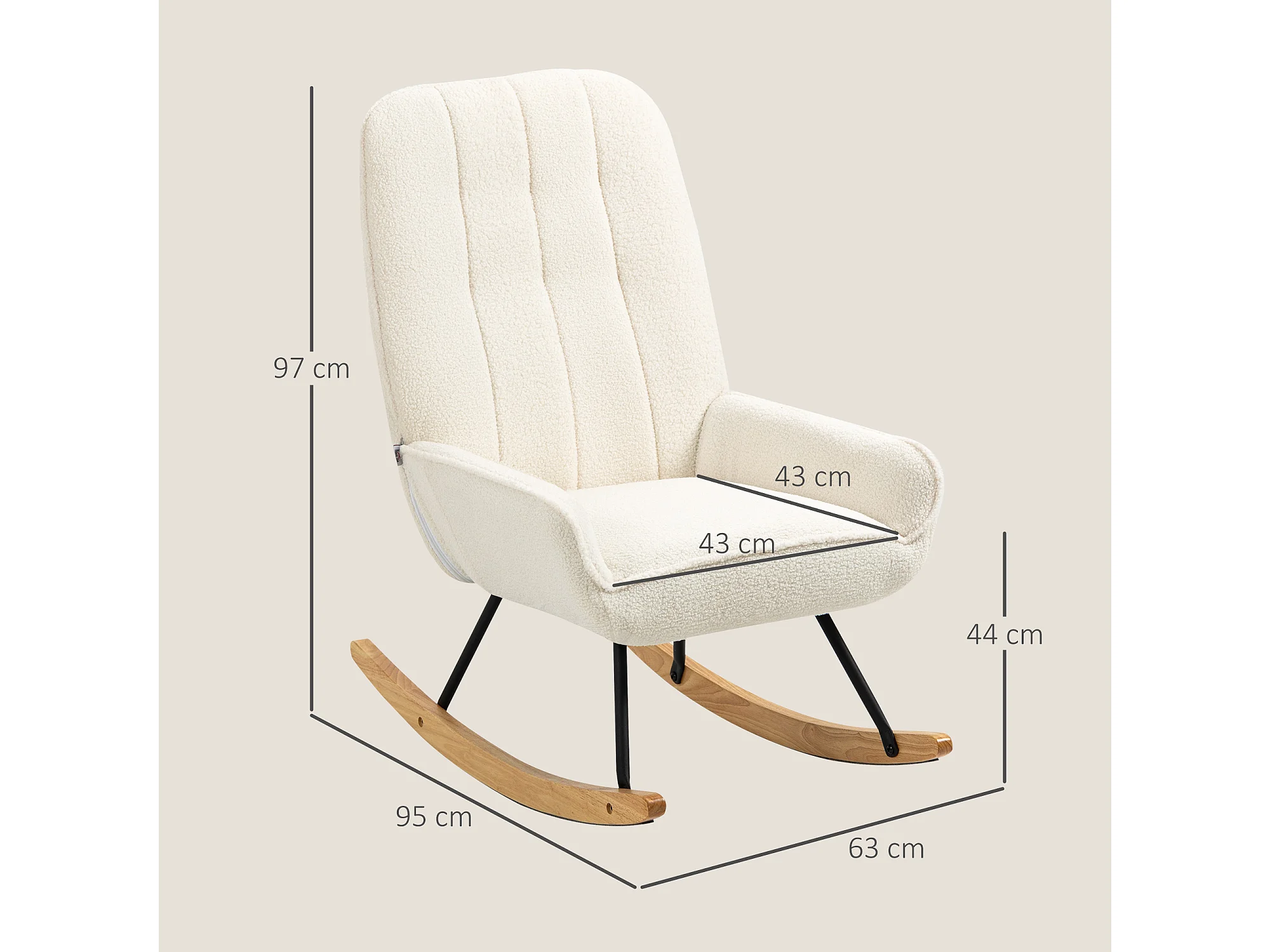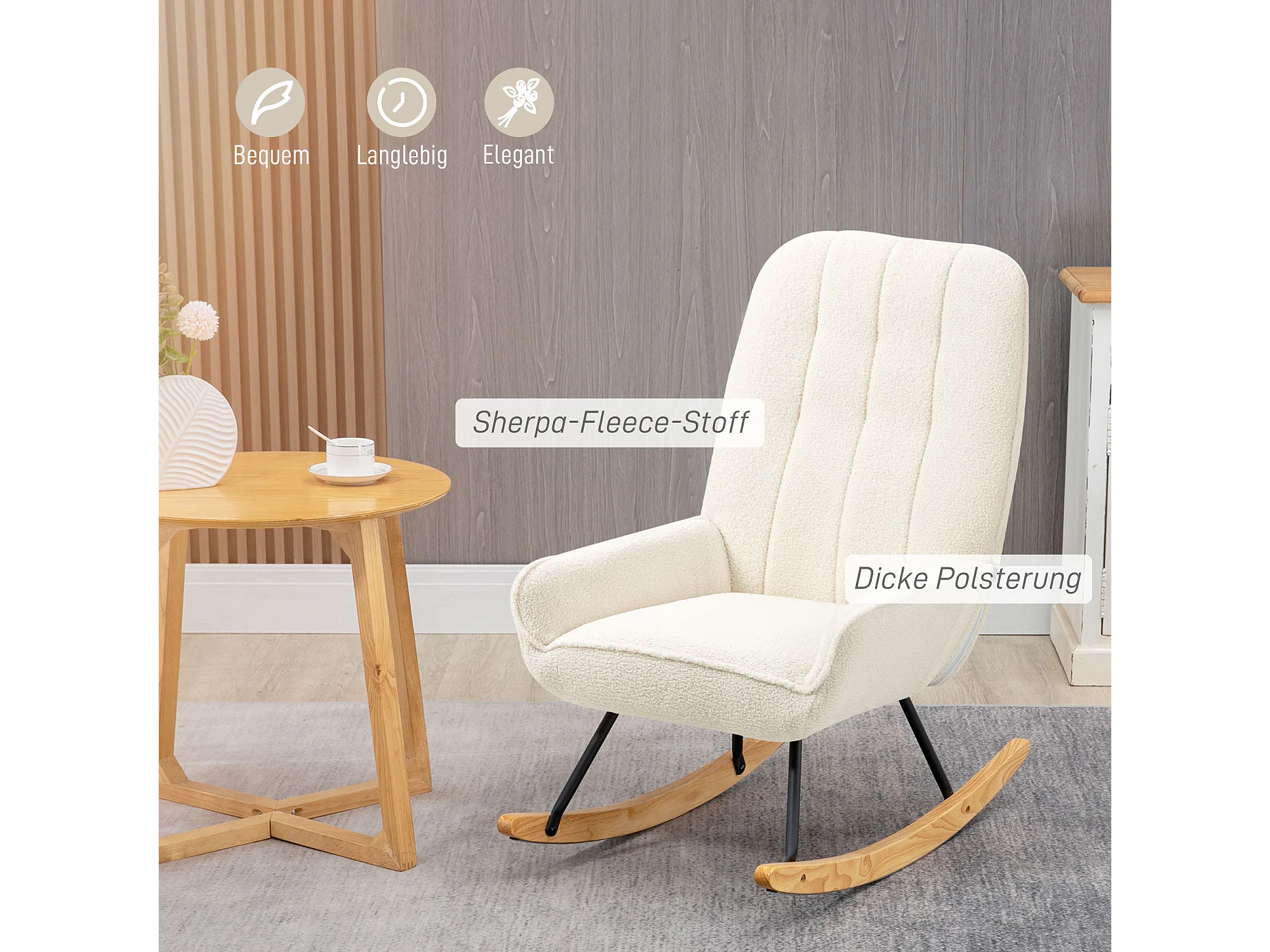 Fauteuil à bascule en sherpa, confortable et robuste, structure bois crème (63x95x97cm)