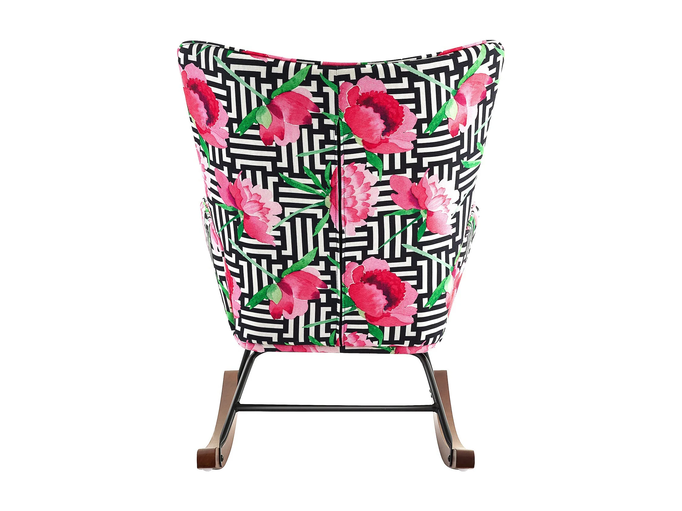 Fauteuil à bascule en velours avec cadre en métal et base en bois pour un refuge de chambre apaisant
