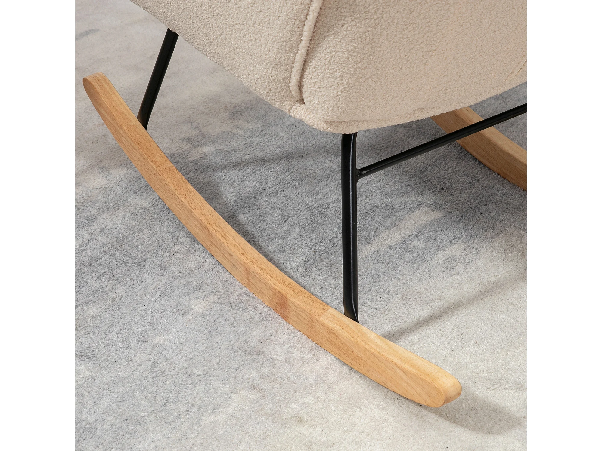 Fauteuil à bascule en velours bouclé beige, chaise à bascule avec accoudoirs
