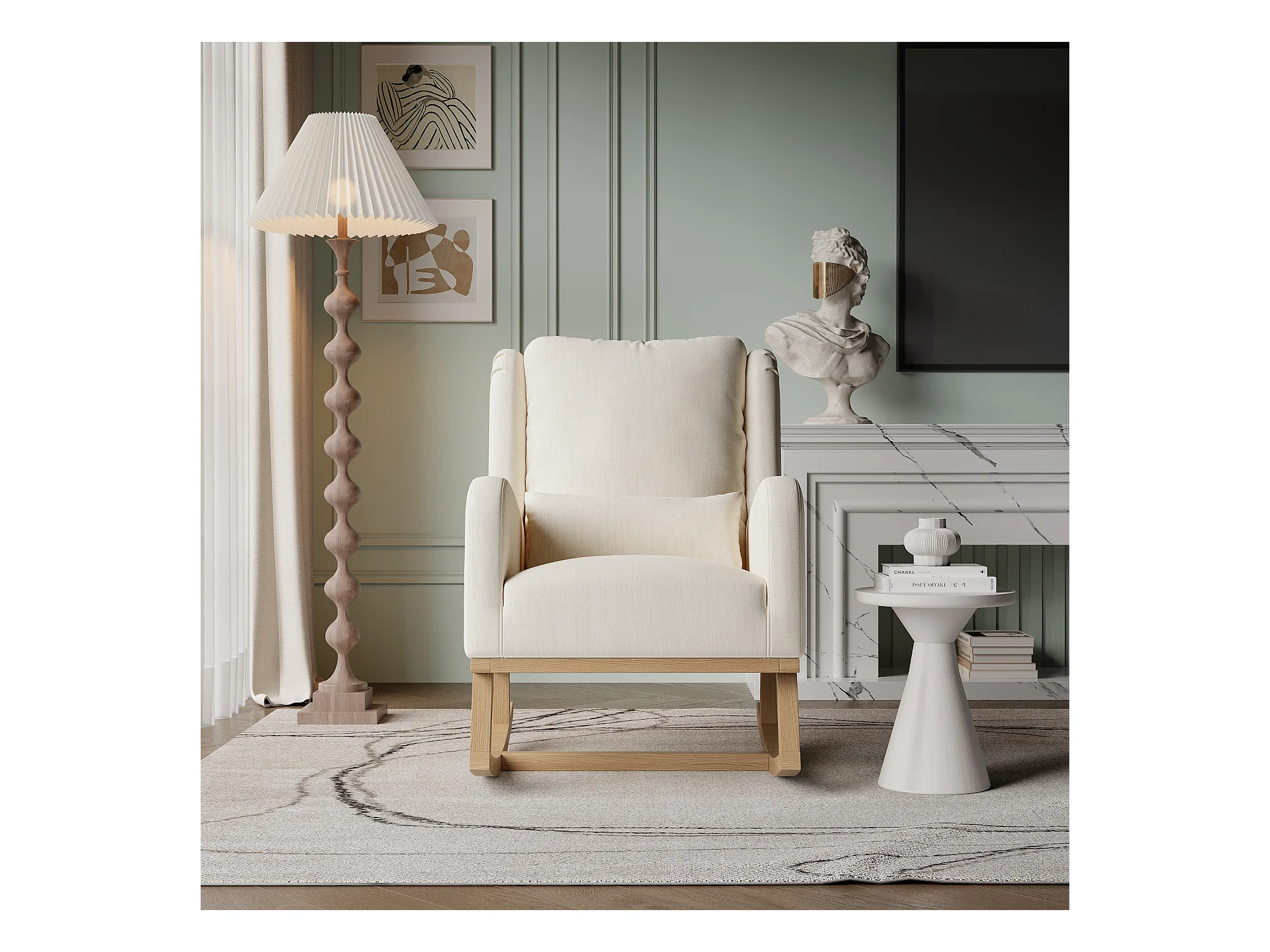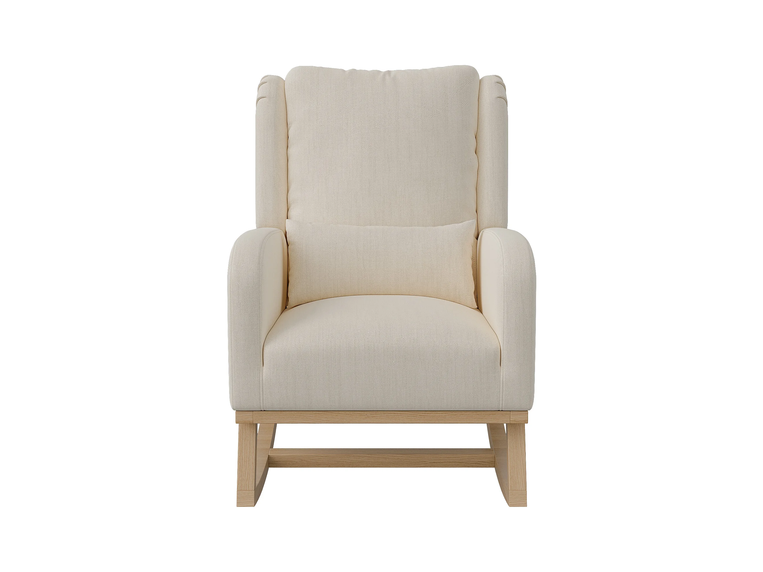 Fauteuil à bascule avec base en bois et dossier, Fauteuil de relaxation pour salon , Lin , Beige