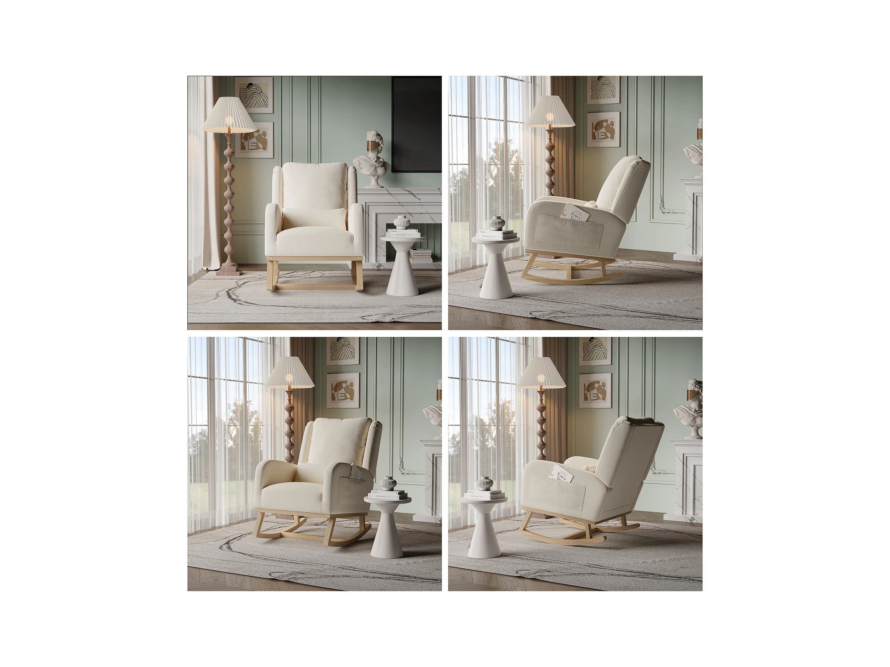 Fauteuil à bascule en peluche Teddy, fauteuil de lecture rembourré, dossier à carreaux, beige