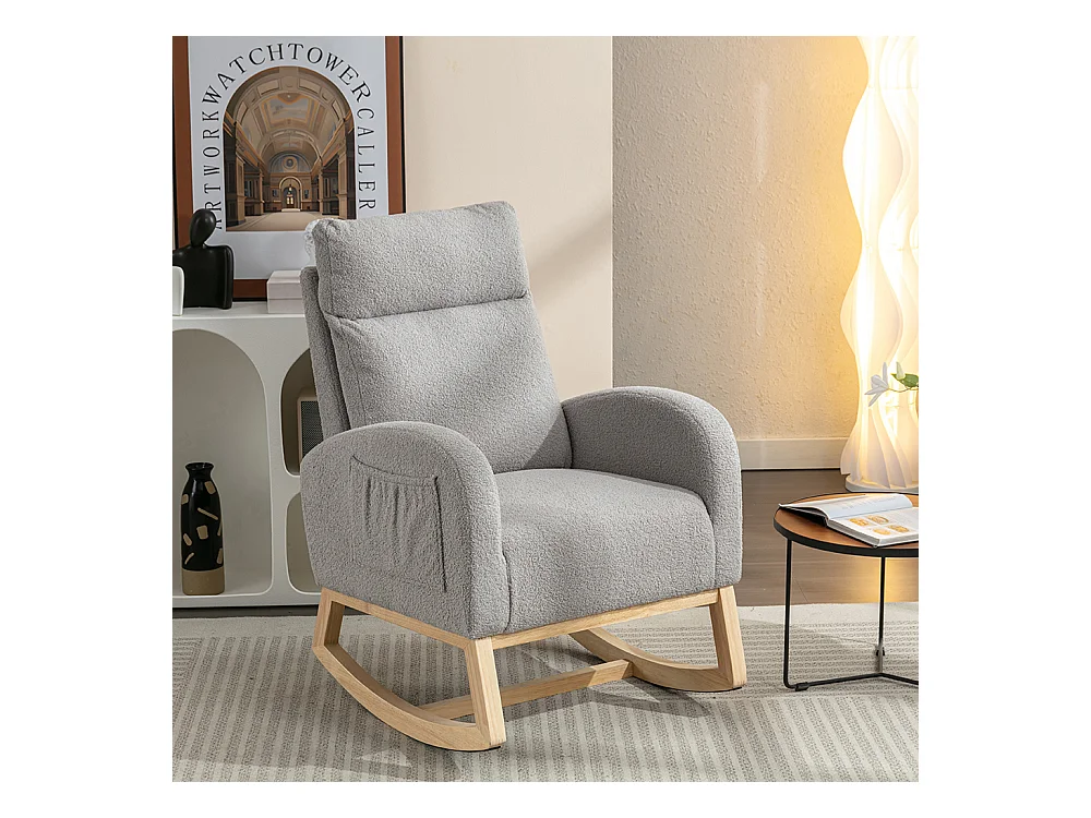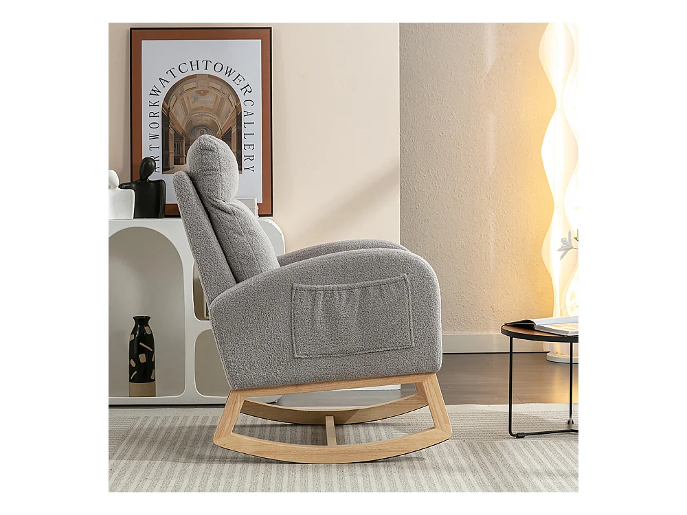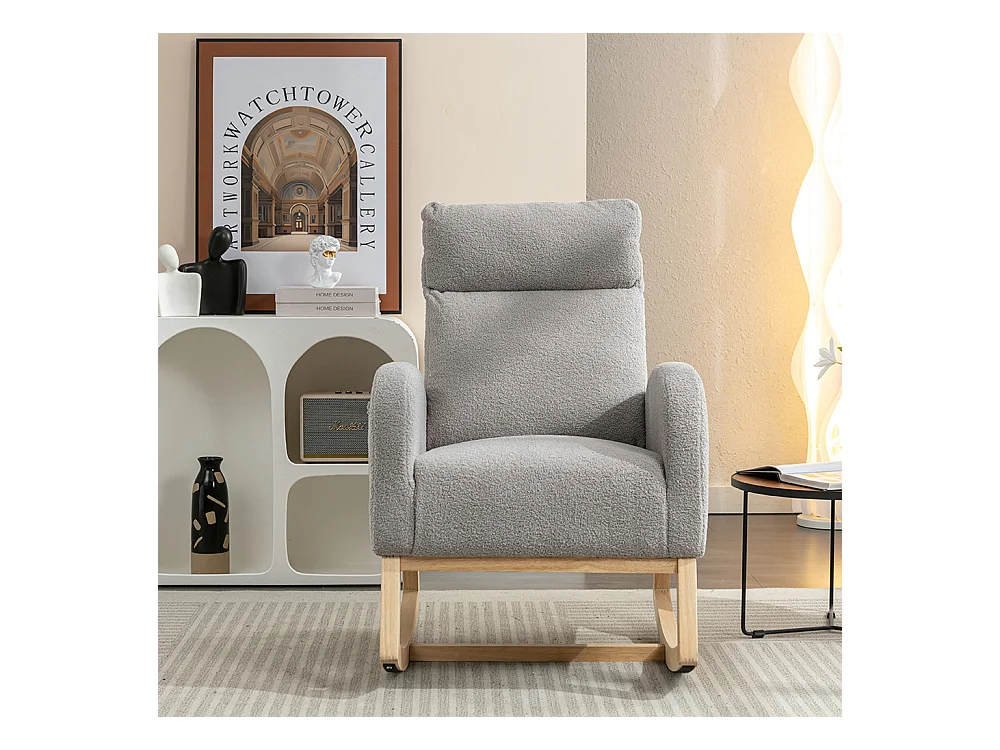Fauteuil à bascule Mid Century Modern tissu Teddy rembourré assise rembourrée salon chambre gris clair