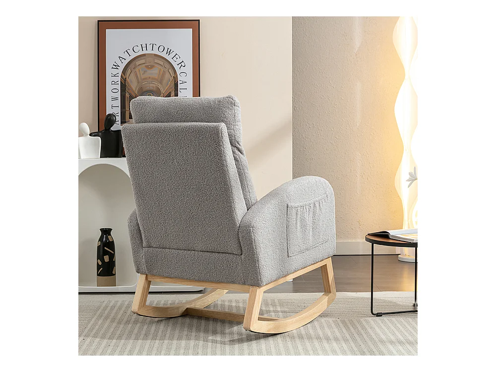 Fauteuil à bascule moderne Mid Century tissu Teddy revêtement tufté assise rembourrée salon chambre gris clair