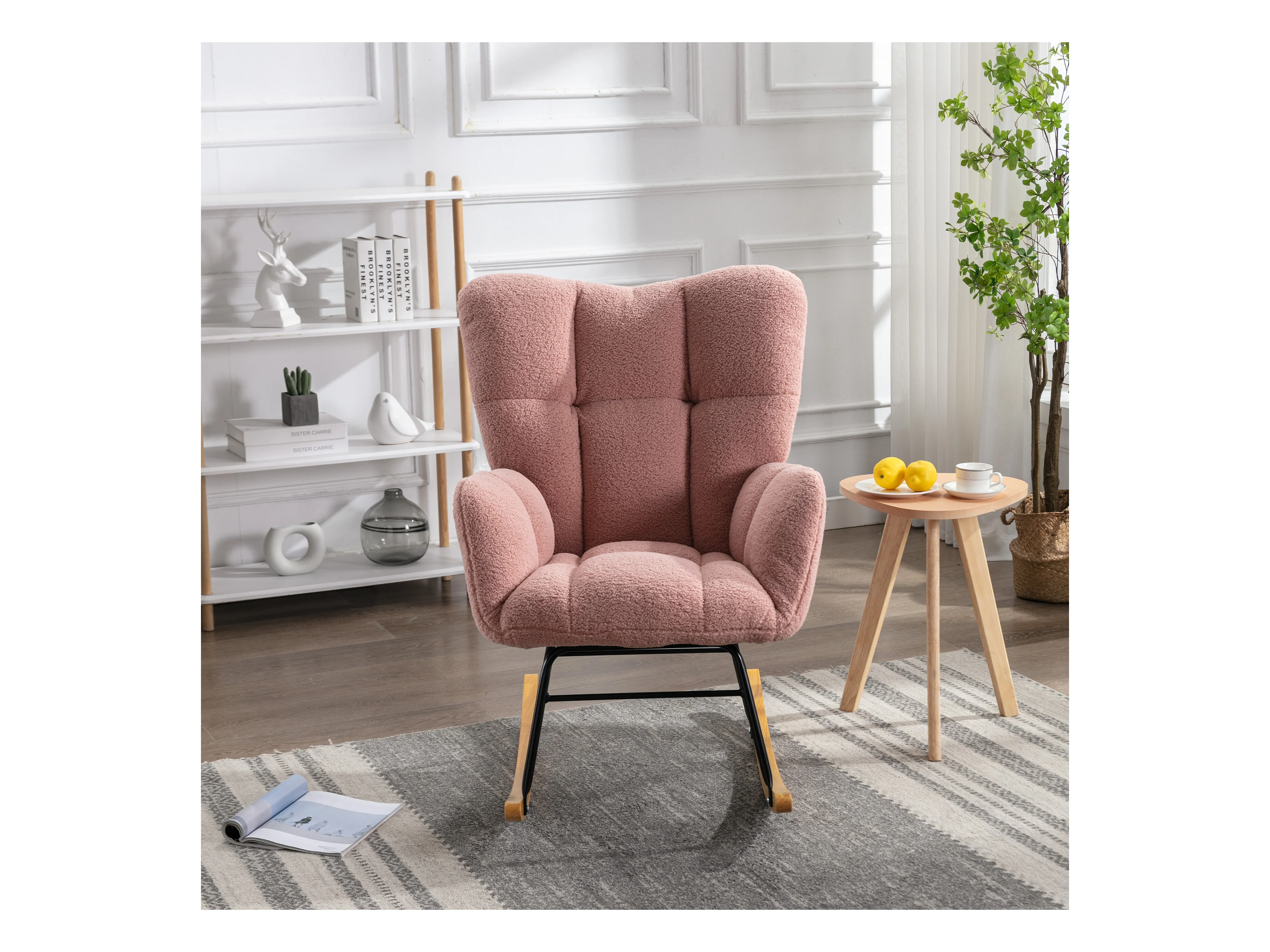 Fauteuil à bascule moderne, peluche rose, fauteuil à bascule avec accoudoirs et dossier , pour salon et chambre