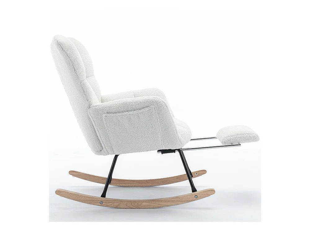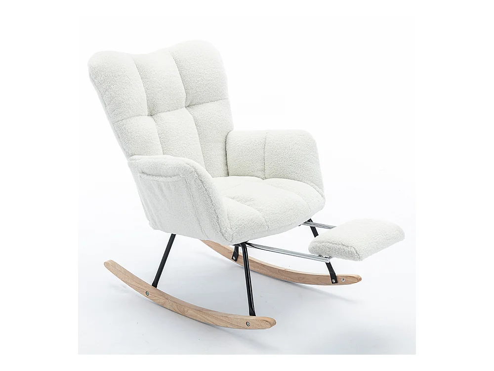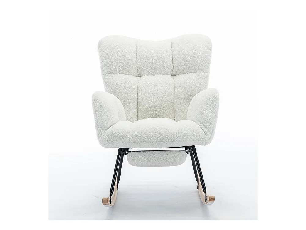 Fauteuil à bascule moderne rembourrage tissu Teddy repose-pieds extensible blanc
