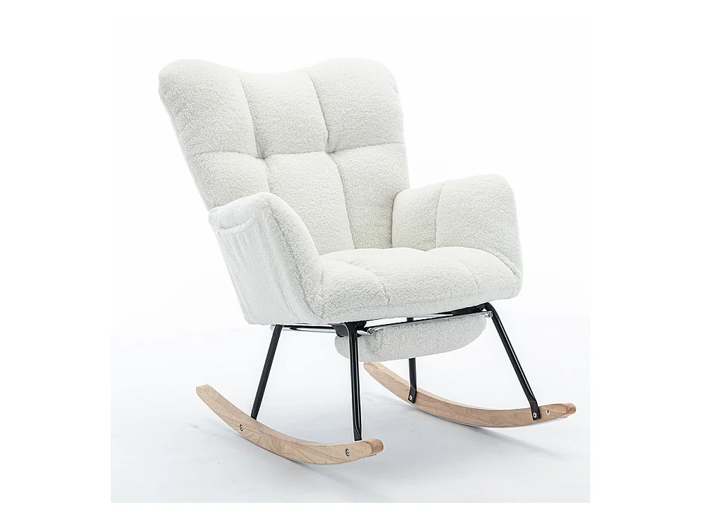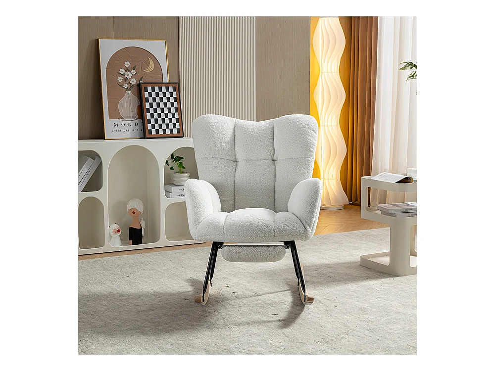 Fauteuil à bascule tissu Teddy doux tufté assise rembourrée salon chambre blanc