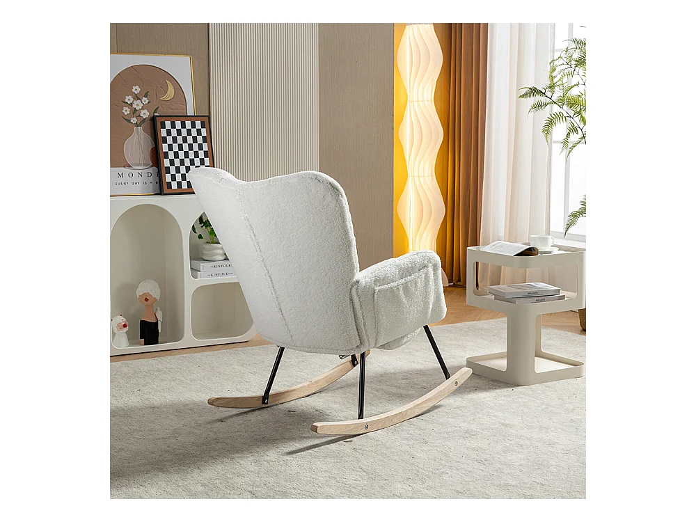Fauteuil à bascule moderne Mid Century tissu Teddy revêtement tufté assise rembourrée salon chambre blanc