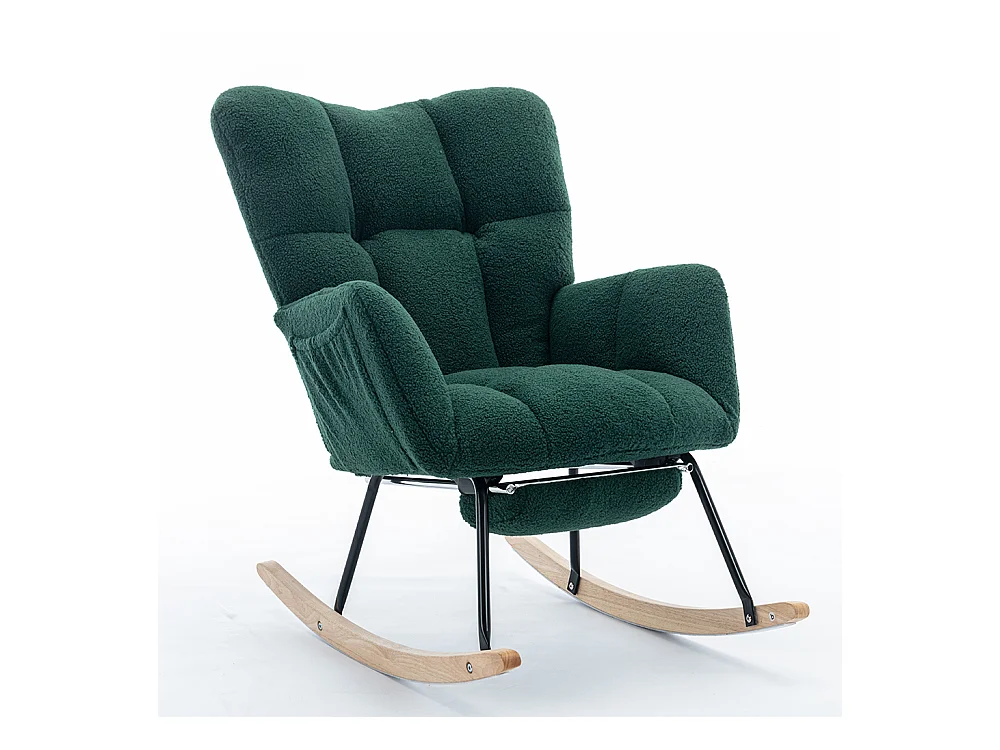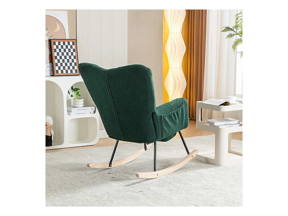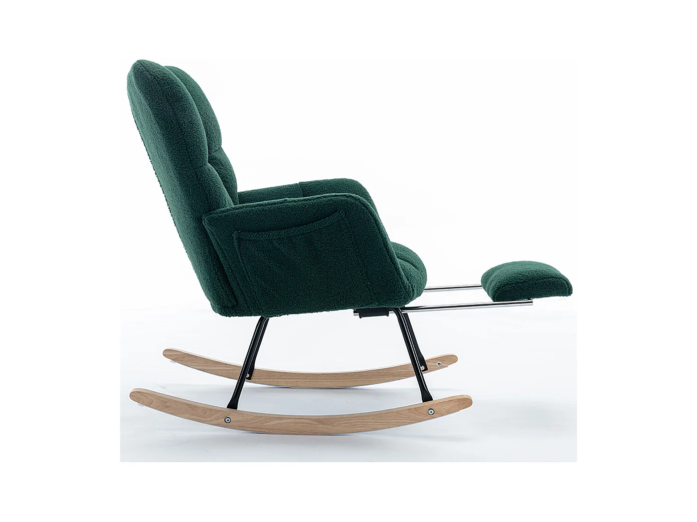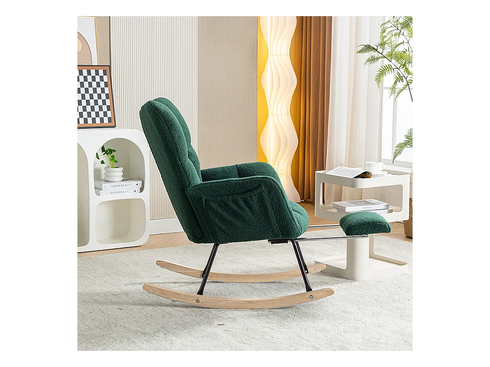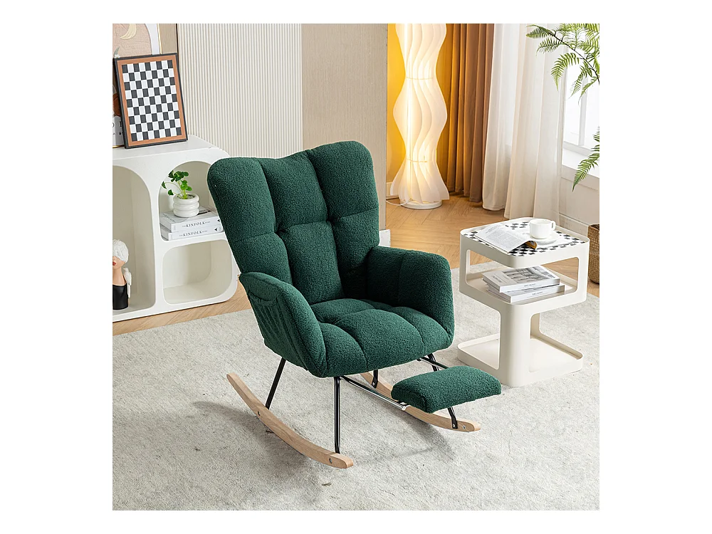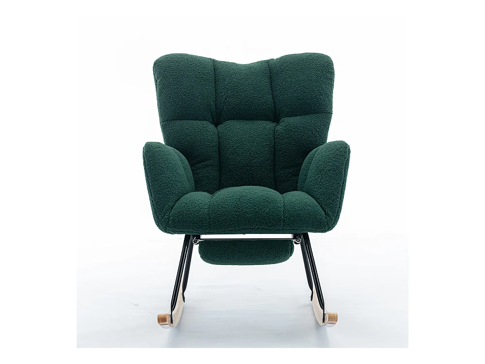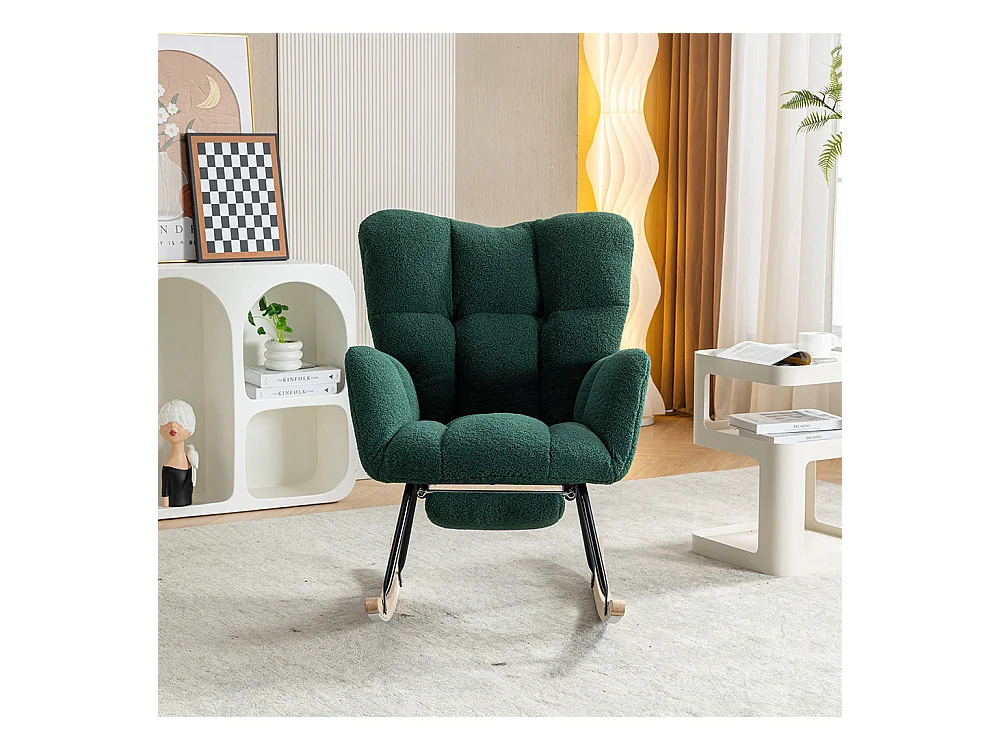 Fauteuil à bascule moderne rembourrage tissu Teddy repose-pieds extensible vert