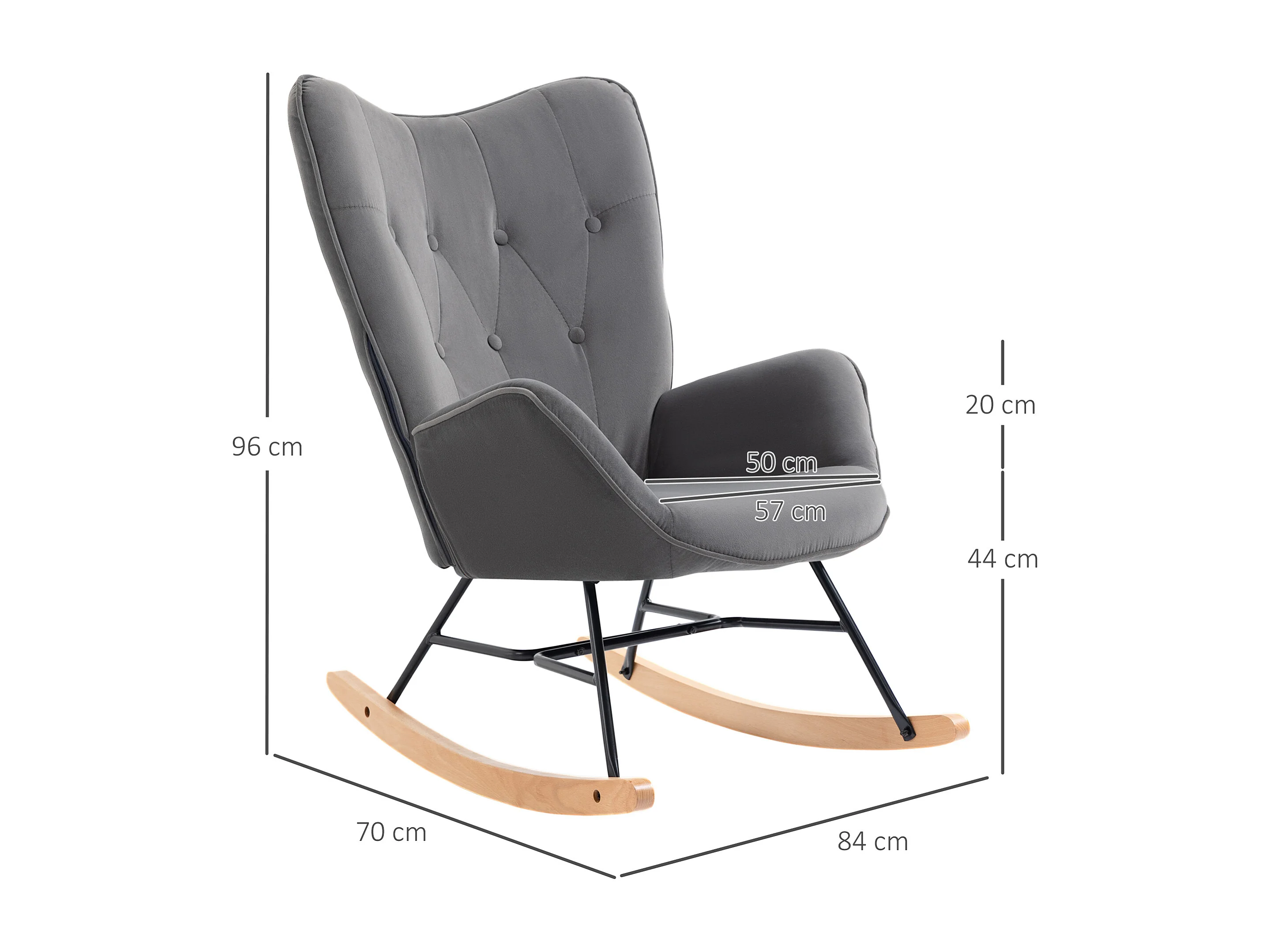 Fauteuil à bascule oreilles rocking chair grand confort accoudoirs assise dossier garnissage mousse haute densité aspect velours anthracite