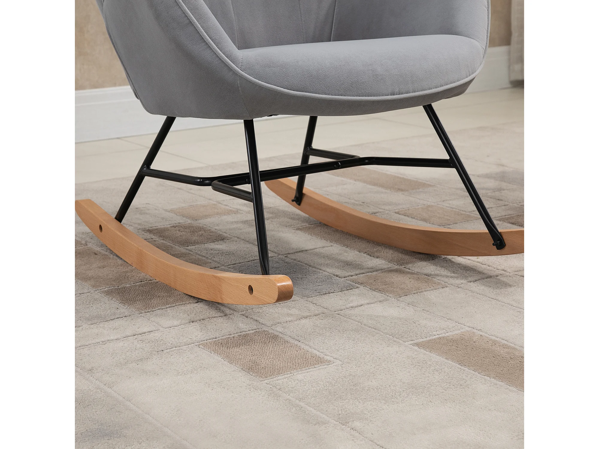 Fauteuil à bascule oreilles rocking chair grand confort accoudoirs assise dossier garnissage mousse haute densité aspect velours gris