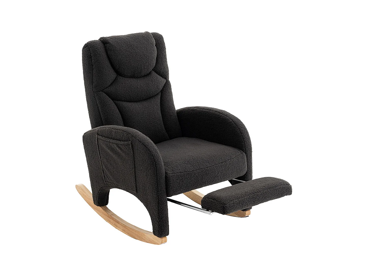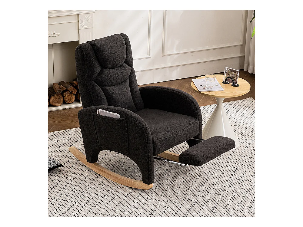 Fauteuil à bascule en Tissu peluche, design moderne, structure en bois, gris foncé (96.5x71x101 cm)