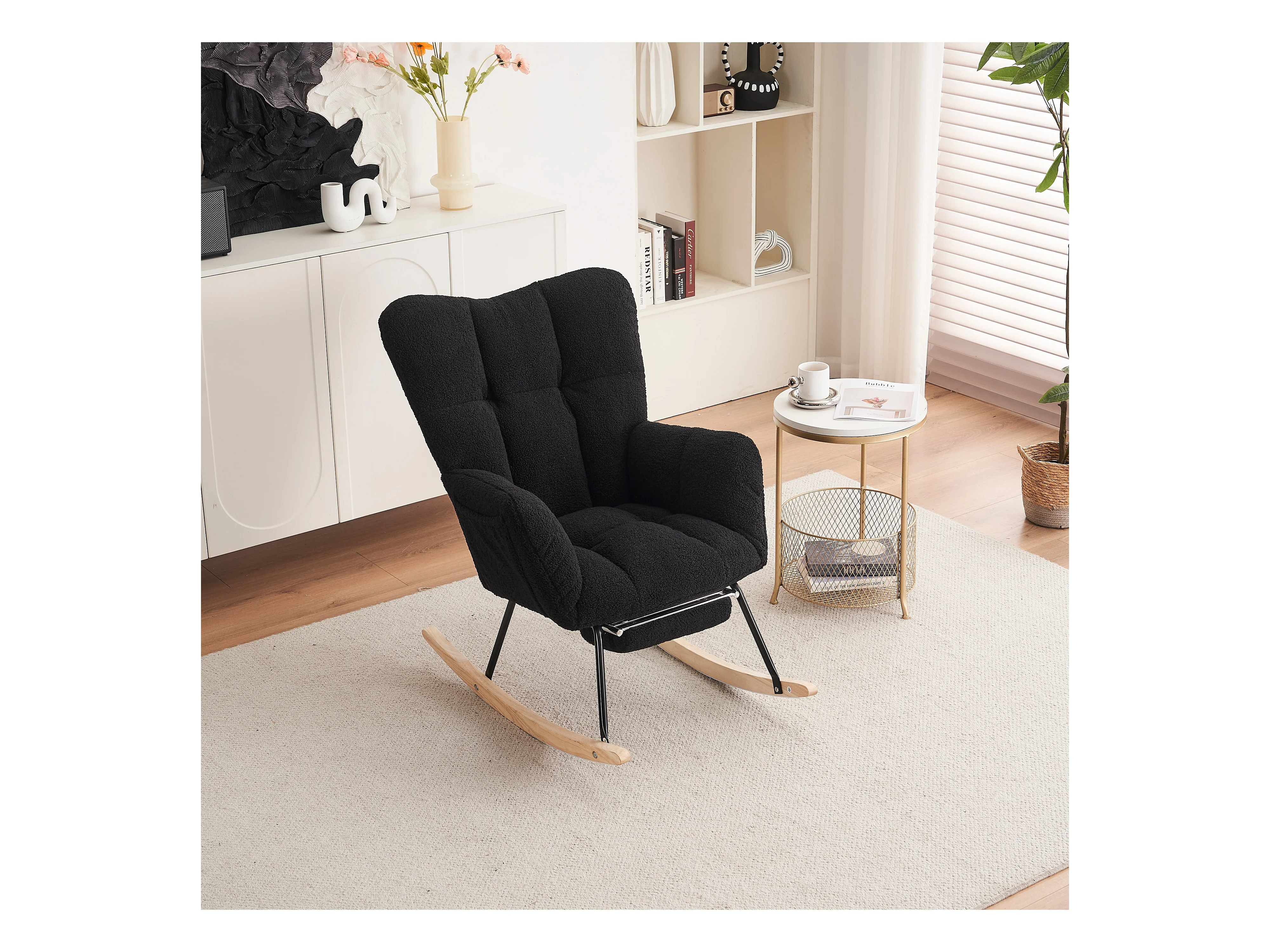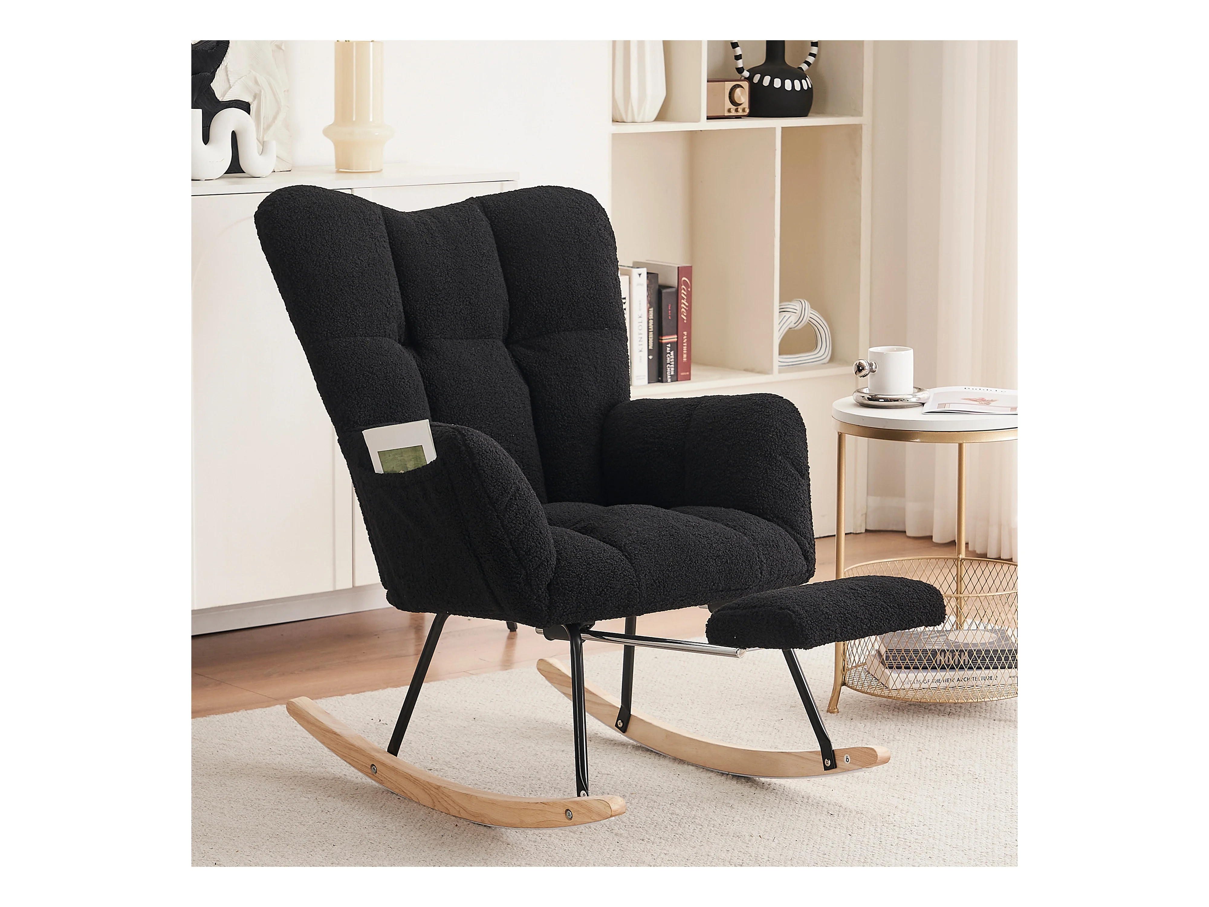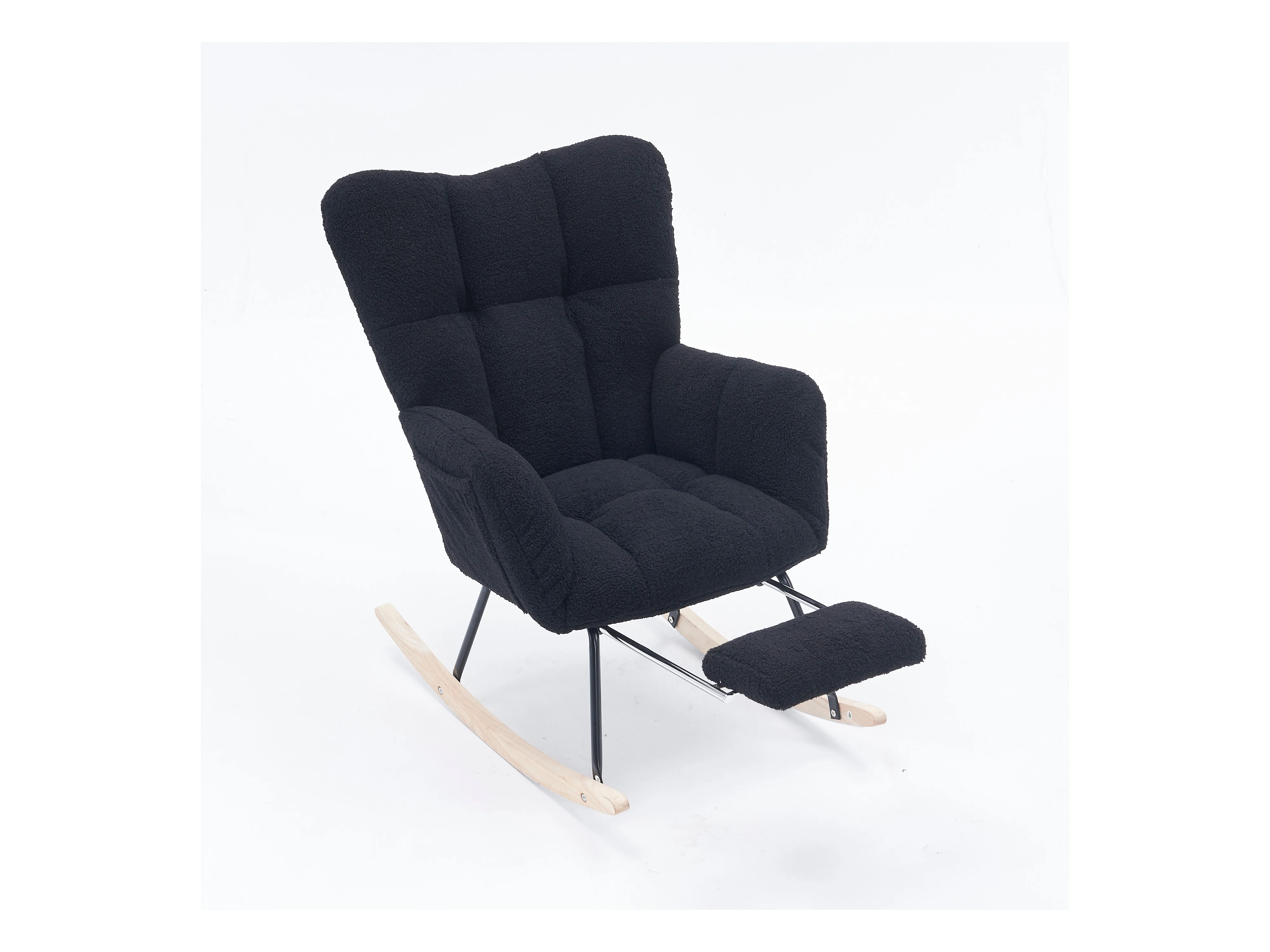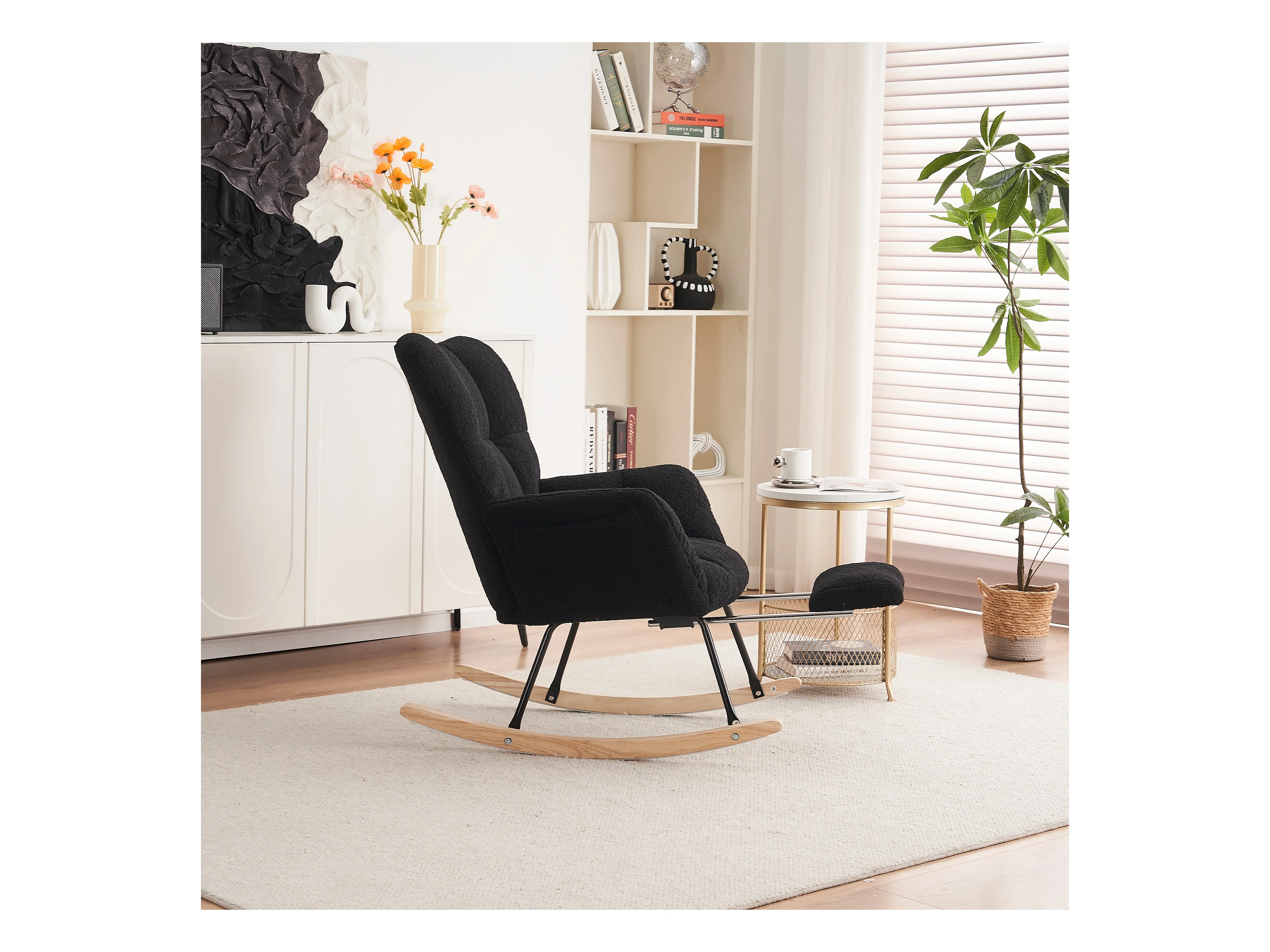 Fauteuil à bascule rembourré, peluche, fauteuil à bascule noir avec repose-pieds rétractable, structure en métal
