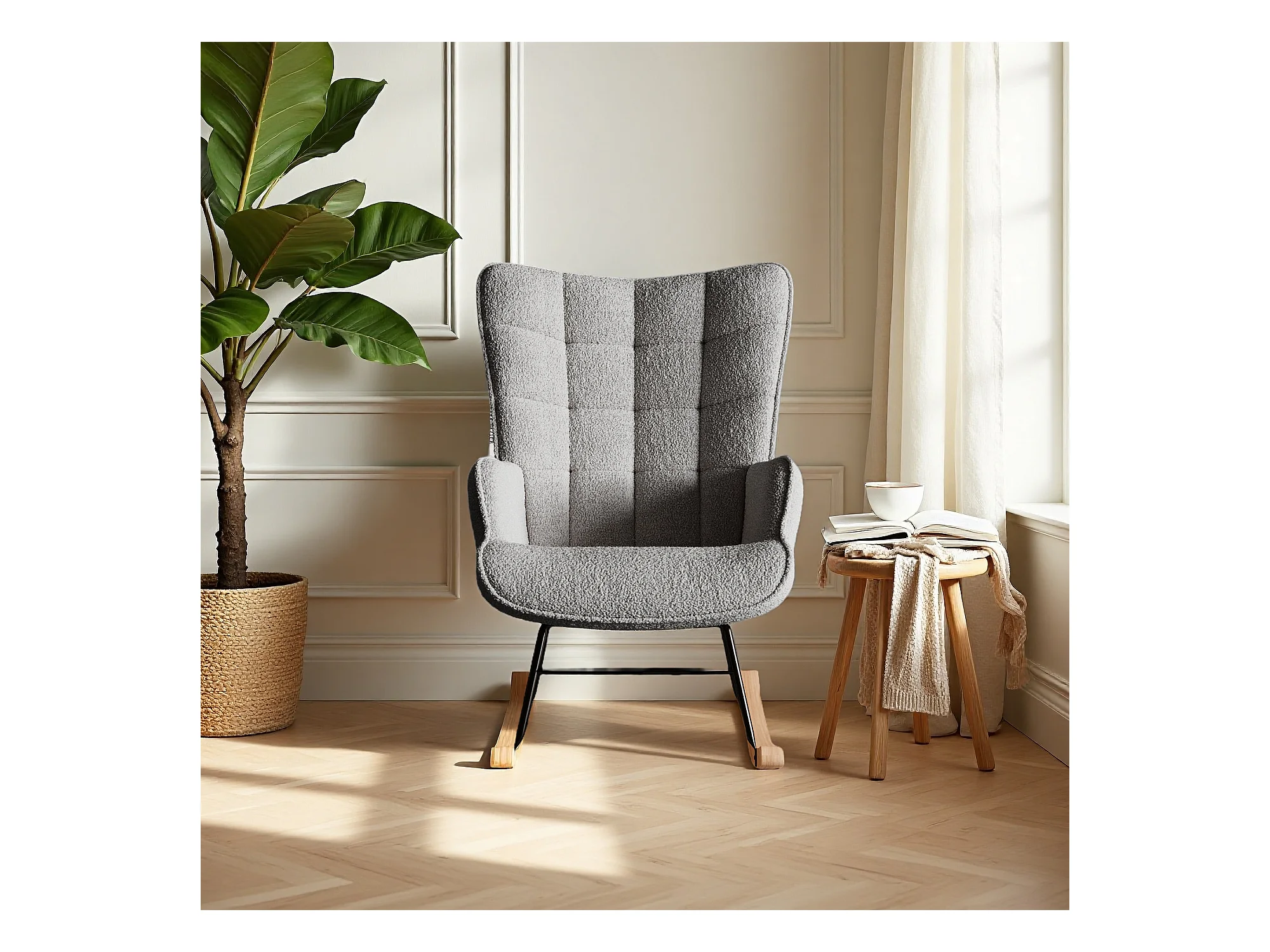 fauteuil à bascule, rocking chair en velours, Scandinave, pied en bois massif, gris