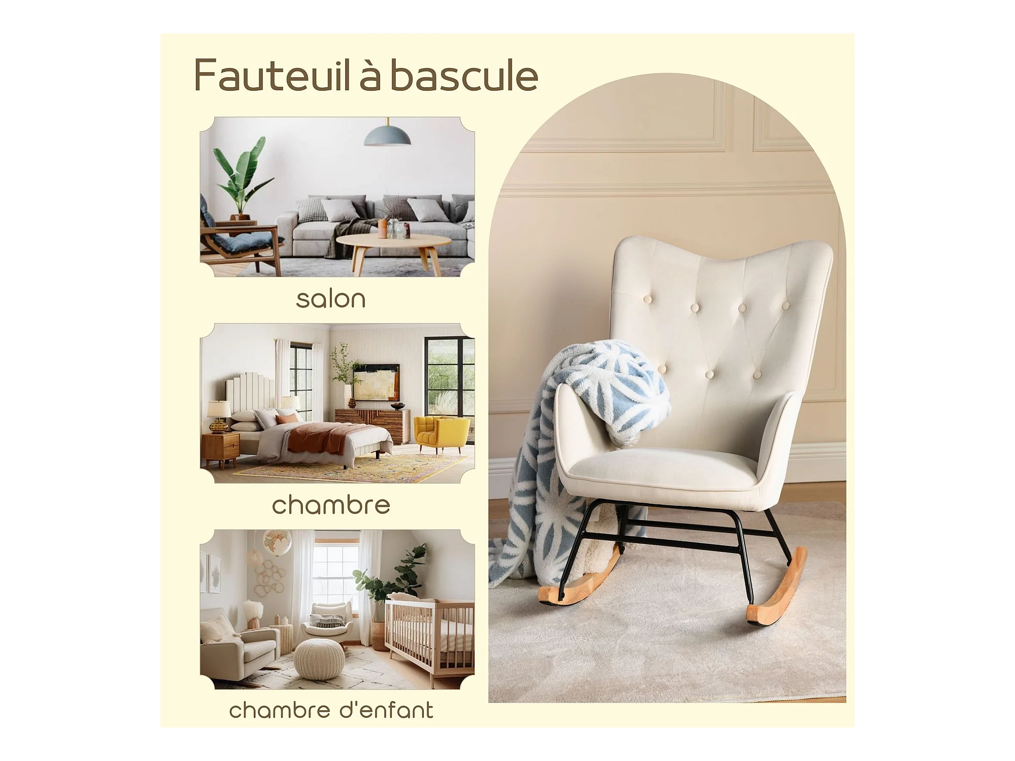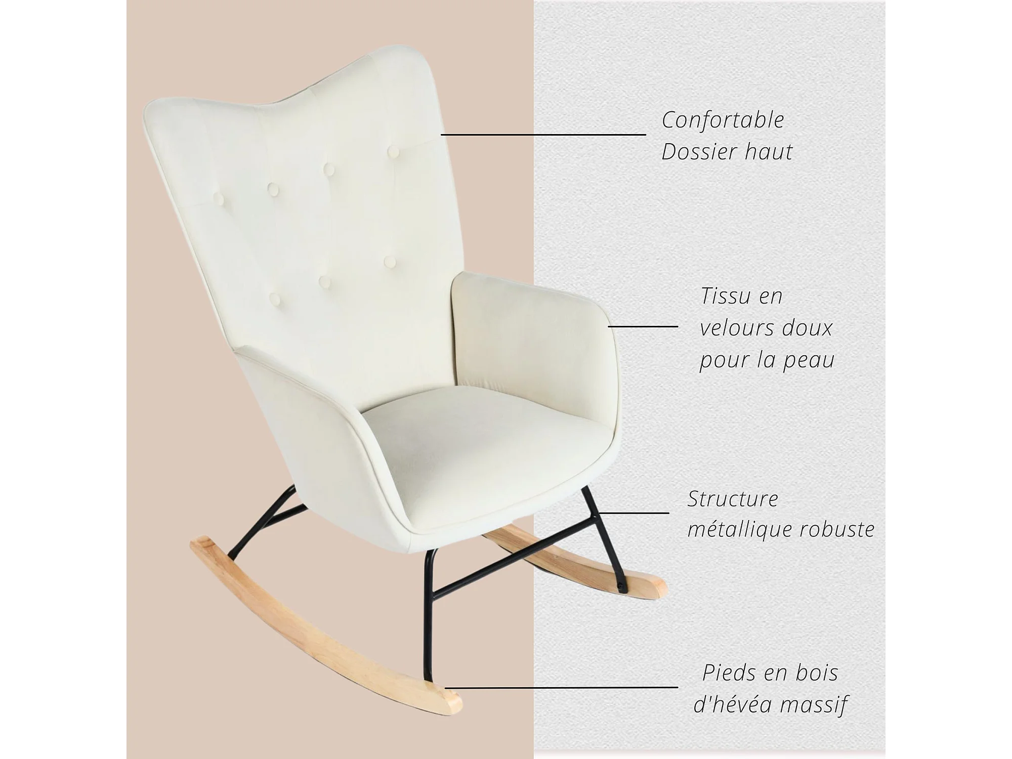 Fauteuil à bascule rocking tissu crème 71 x 88 x 98 cm FAB10073