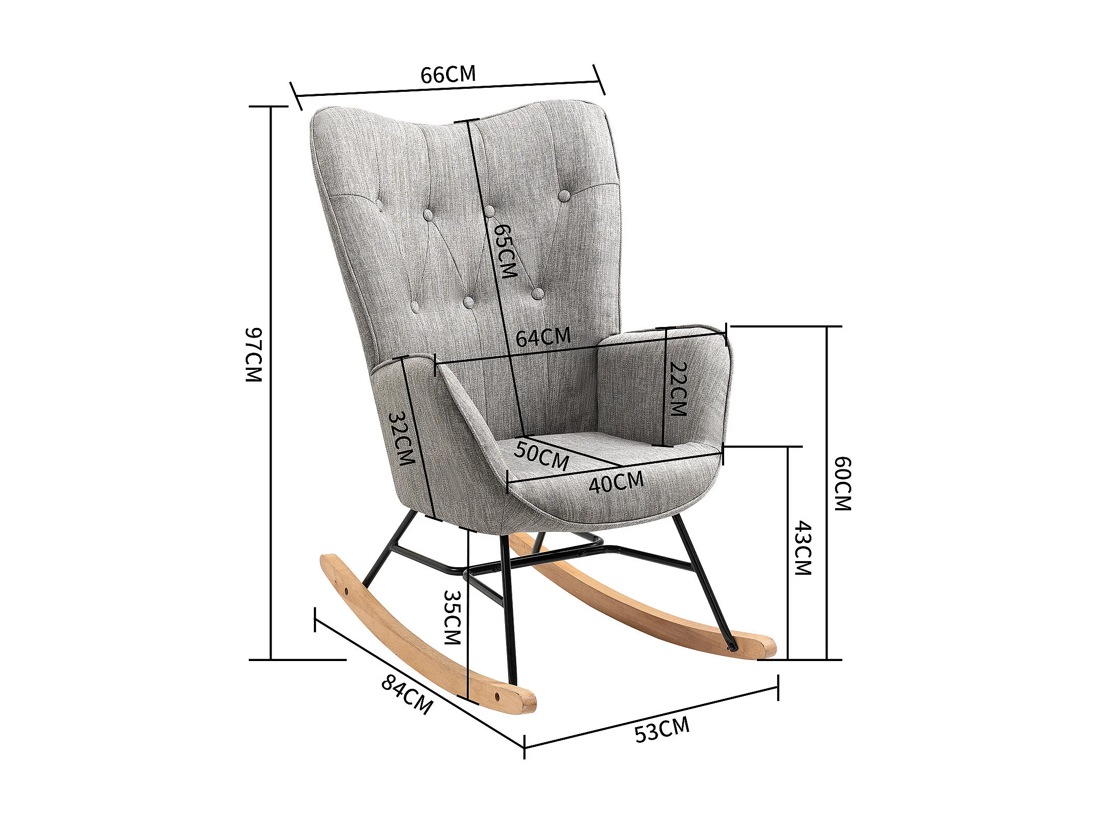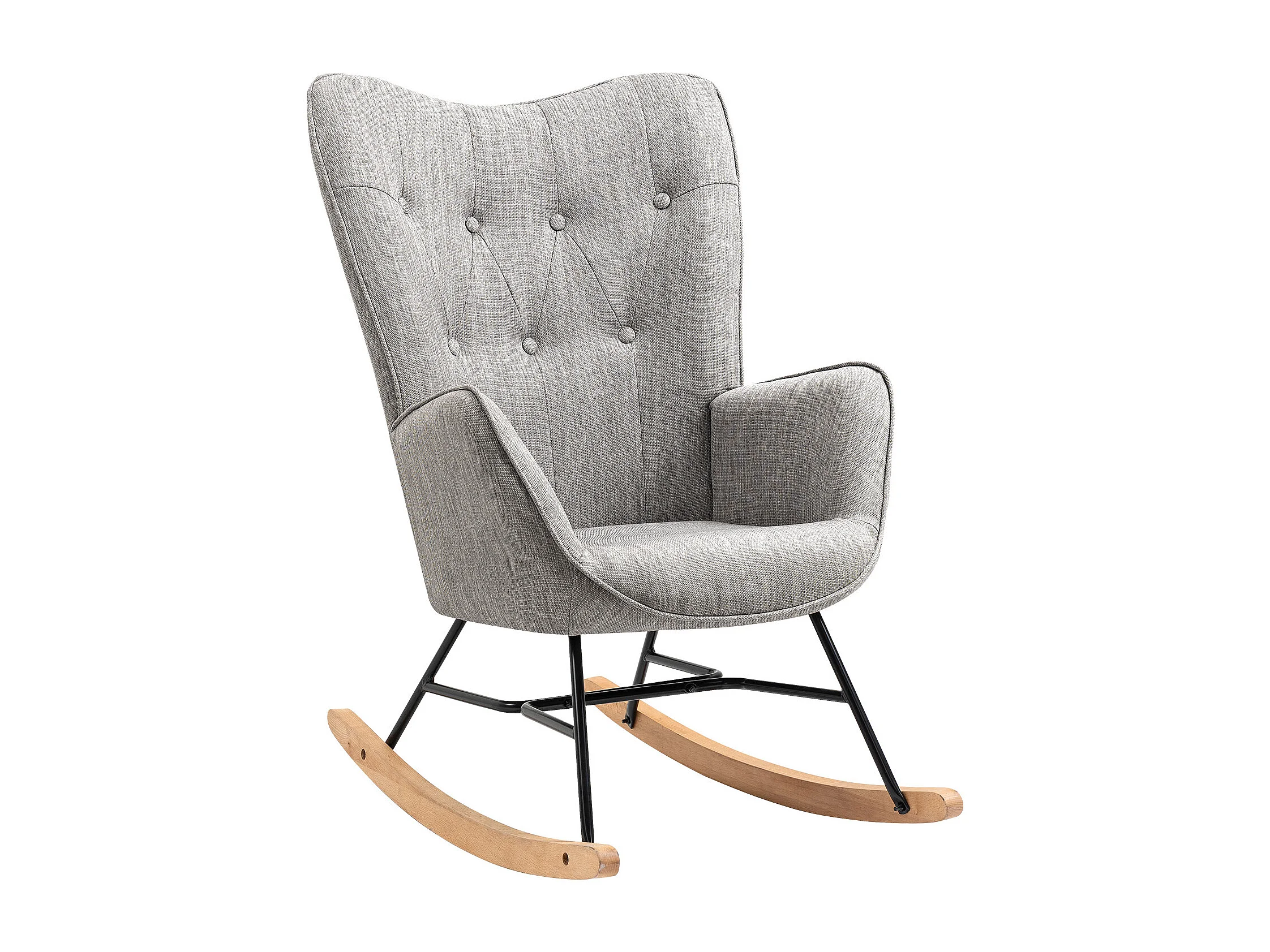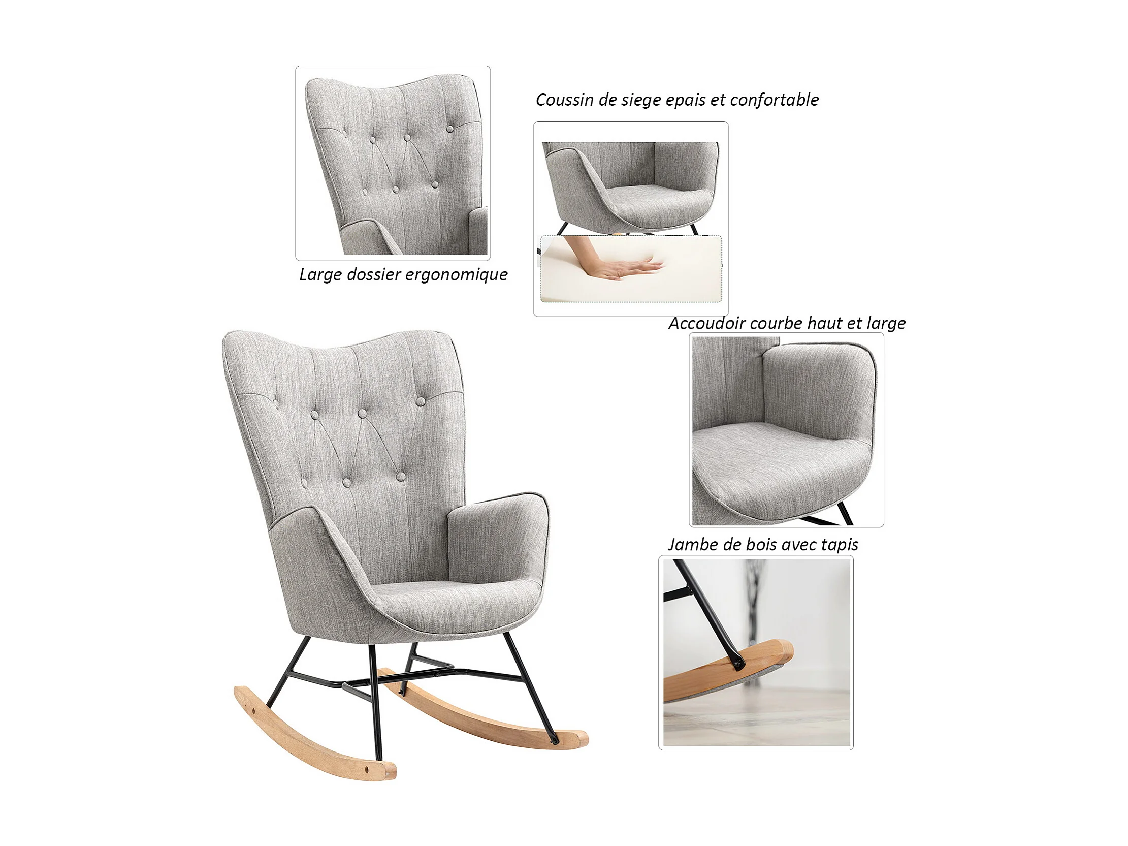 Fauteuil à bascule style Rocking chair - Style Scandinave - Tissu gris clair - Pieds en véritable bois de hêtre - 68x 85x96cm , Gris Tissu