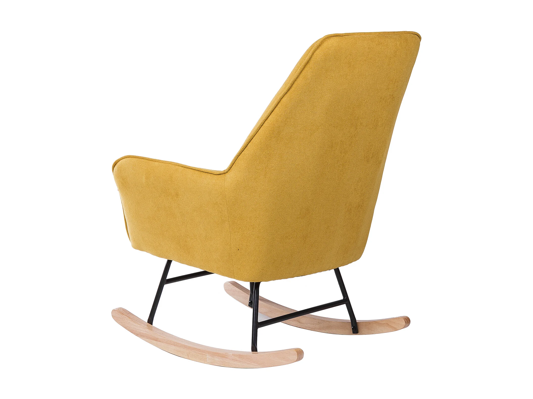 Fauteuil à bascule tissu jaune moutarde et pieds bois clair Kopen 75cm