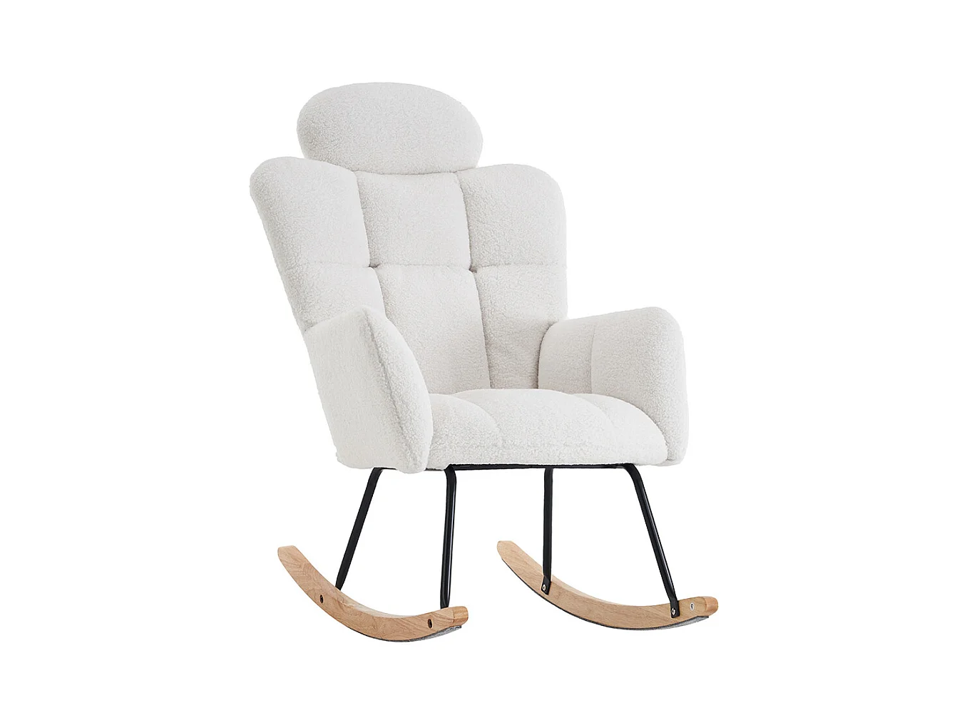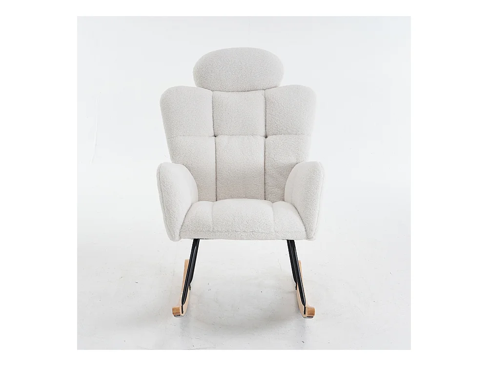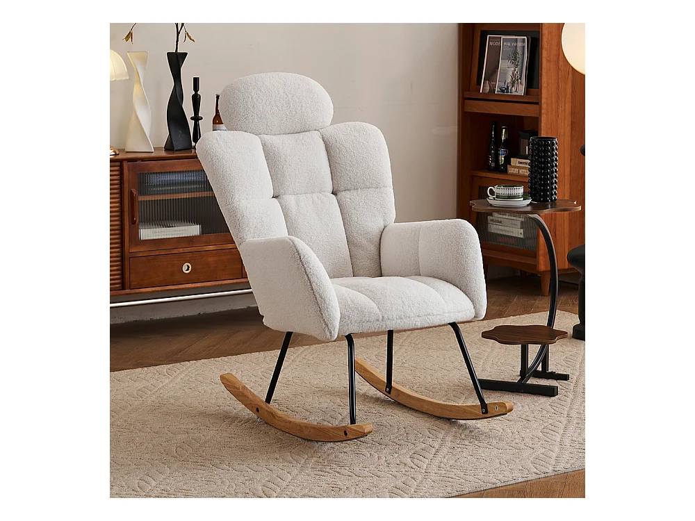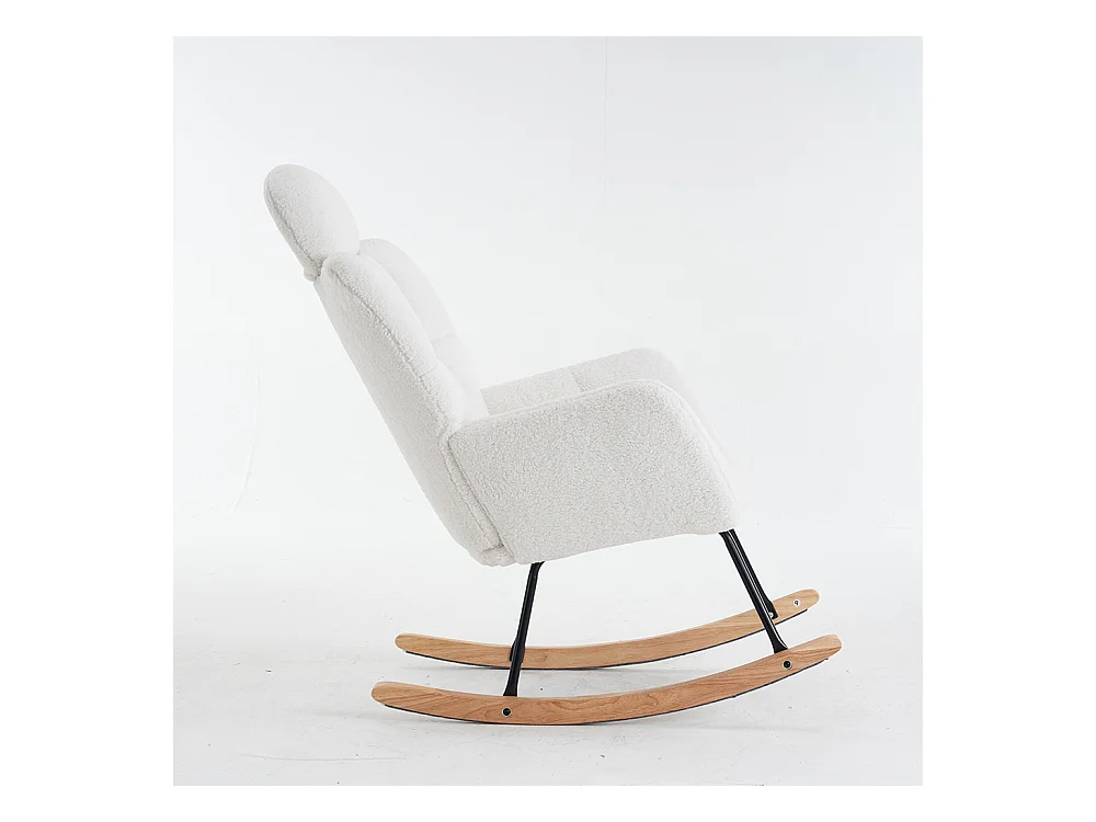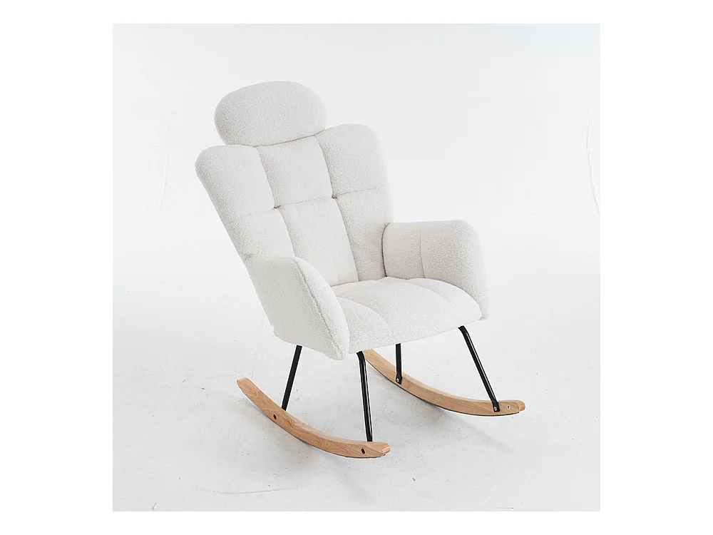 Fauteuil à bascule tissu Teddy doux tufté assise rembourrée salon chambre blanc