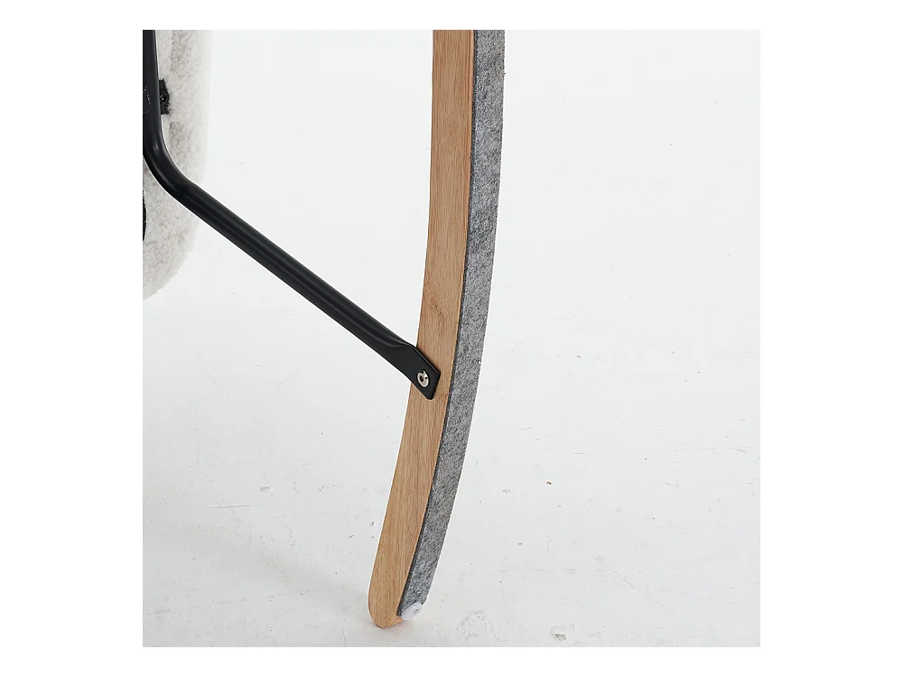 Chaise à bascule moderne Mid-Century, tissu Tissu peluche, capitonné, bois et métal, blanc (80x70x95 cm)