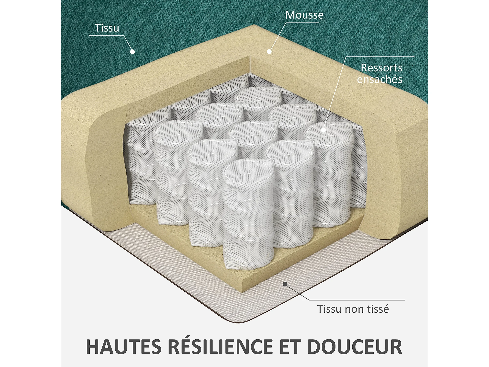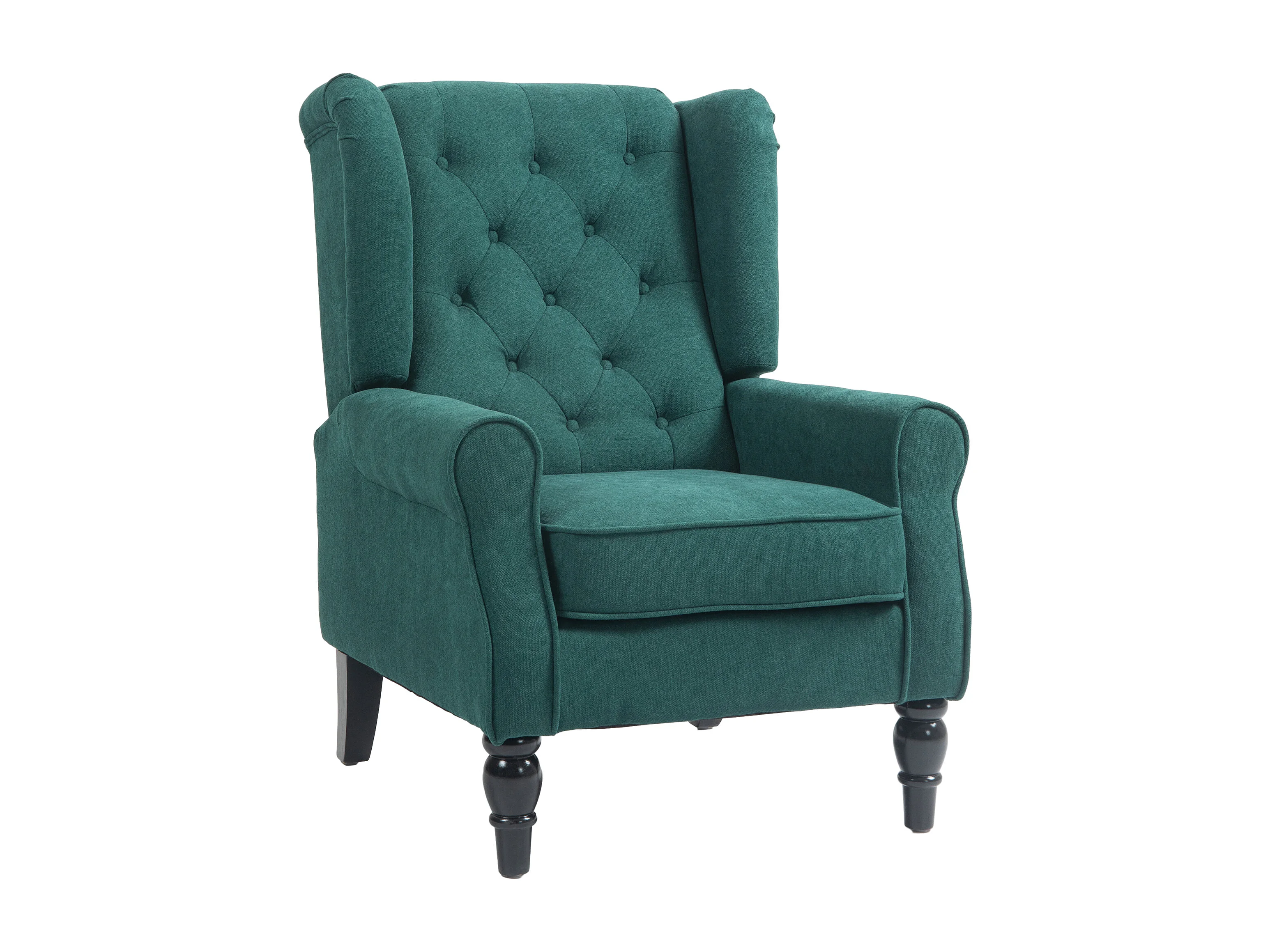 Fauteuil à oreilles style Chesterfield dossier capitonné grand confort bois noir tissu vert