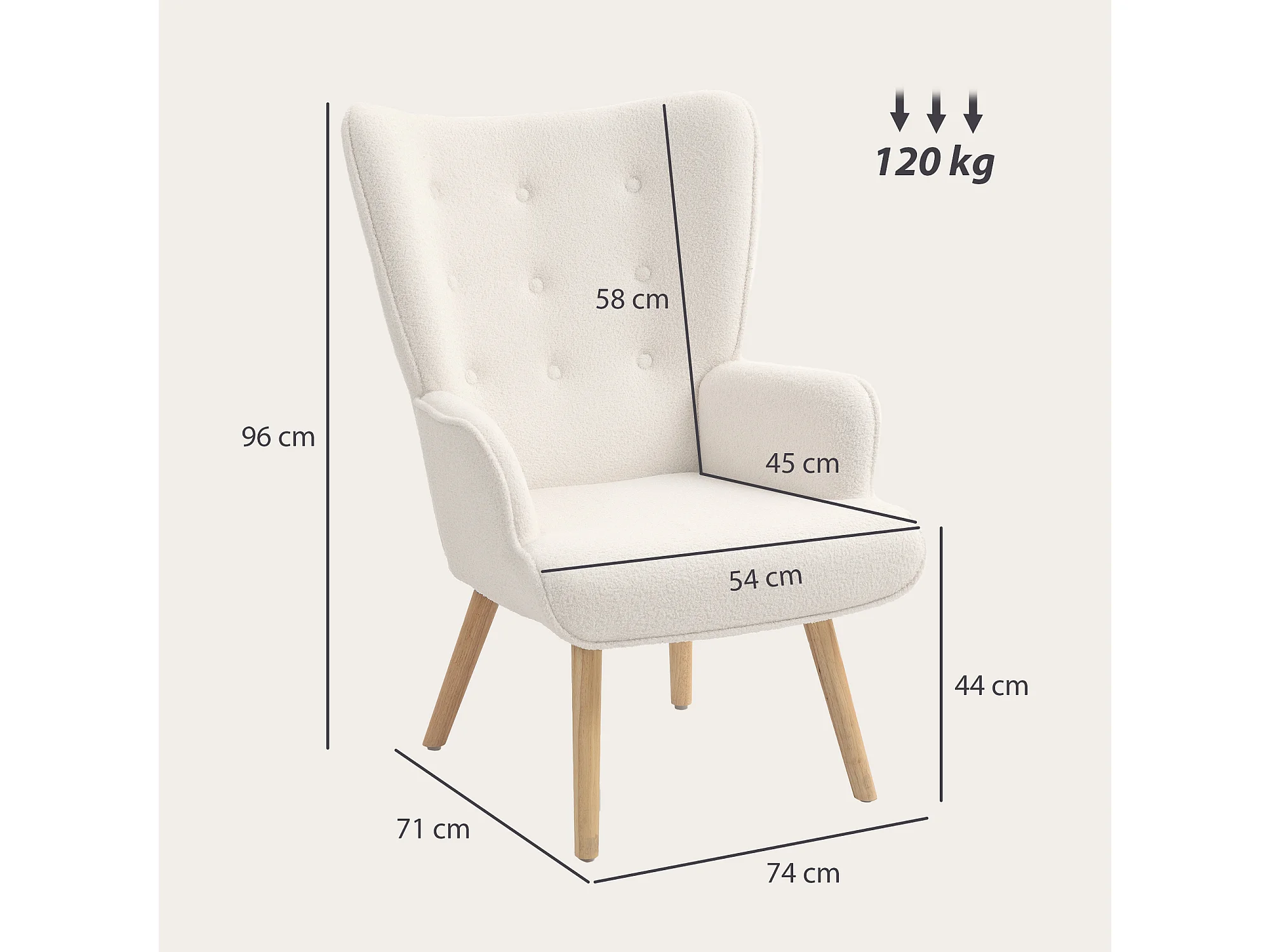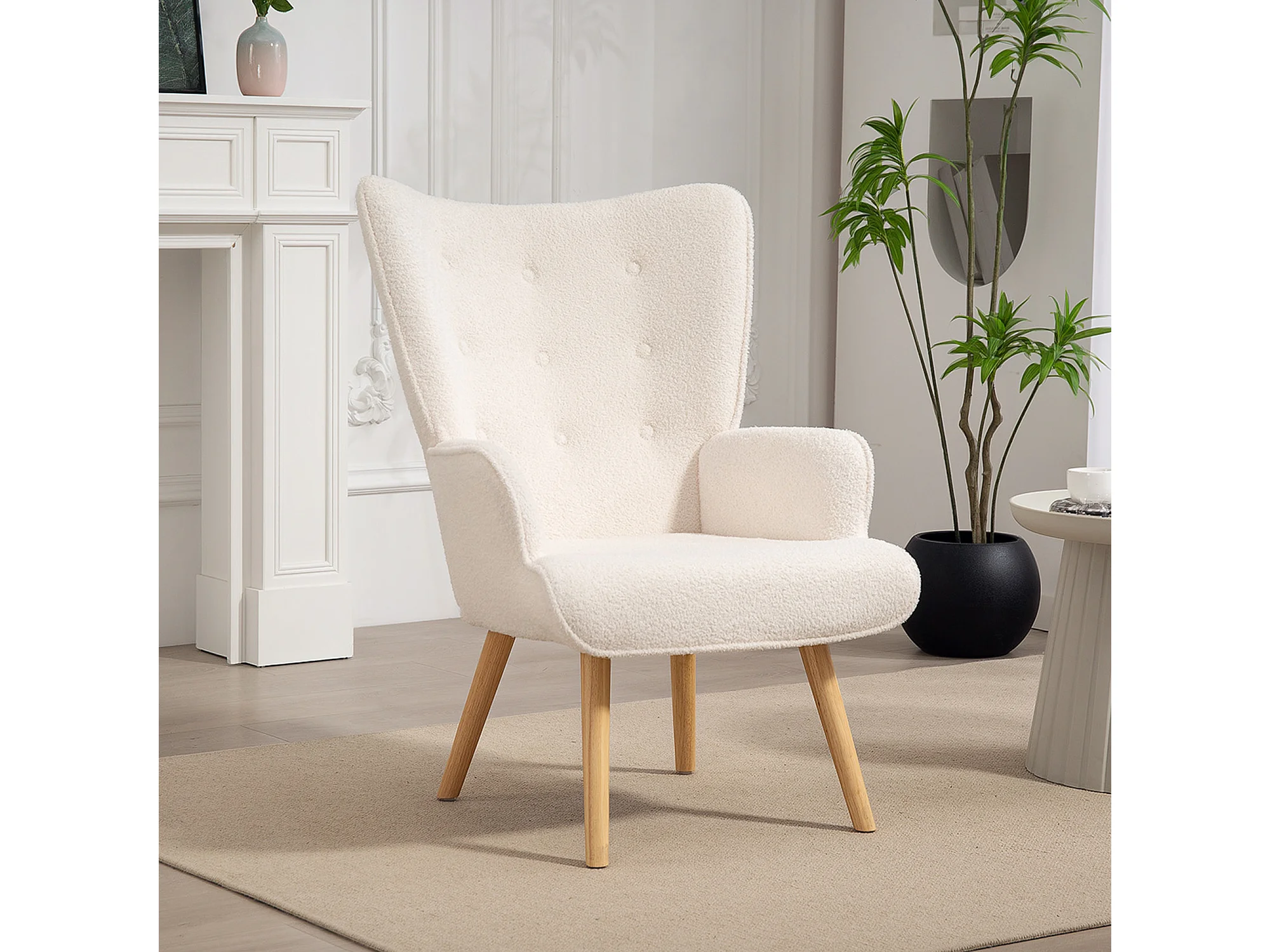 Fauteuil à oreilles style nordique piètement bois effet laine bouclée beige clair