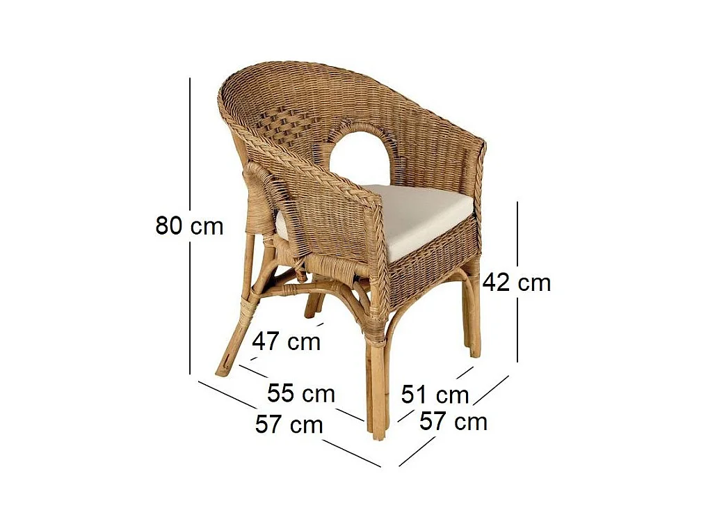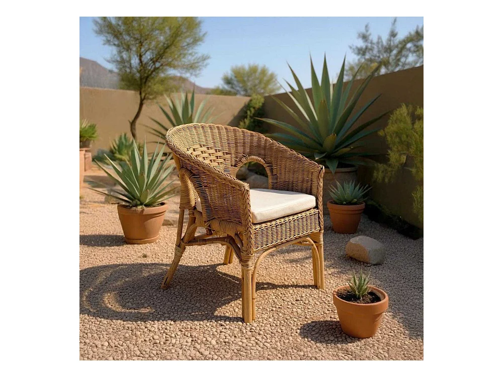 Fauteuil avec coussin en moelle de rotin Galep Avec coussin