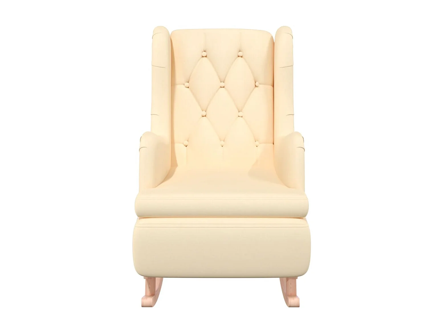 Fauteuil avec pieds à bascule en bois d'hévéa solide Crème Tissu