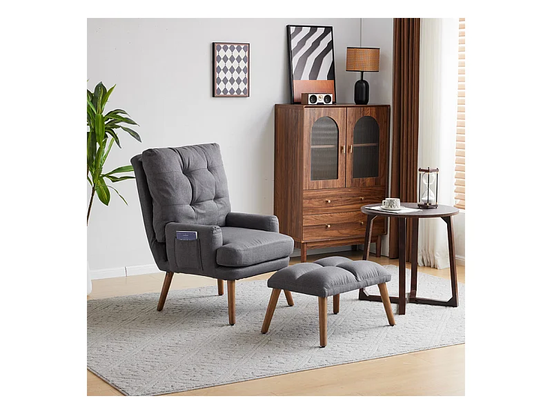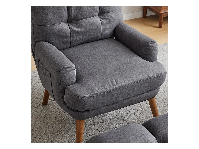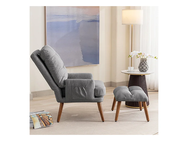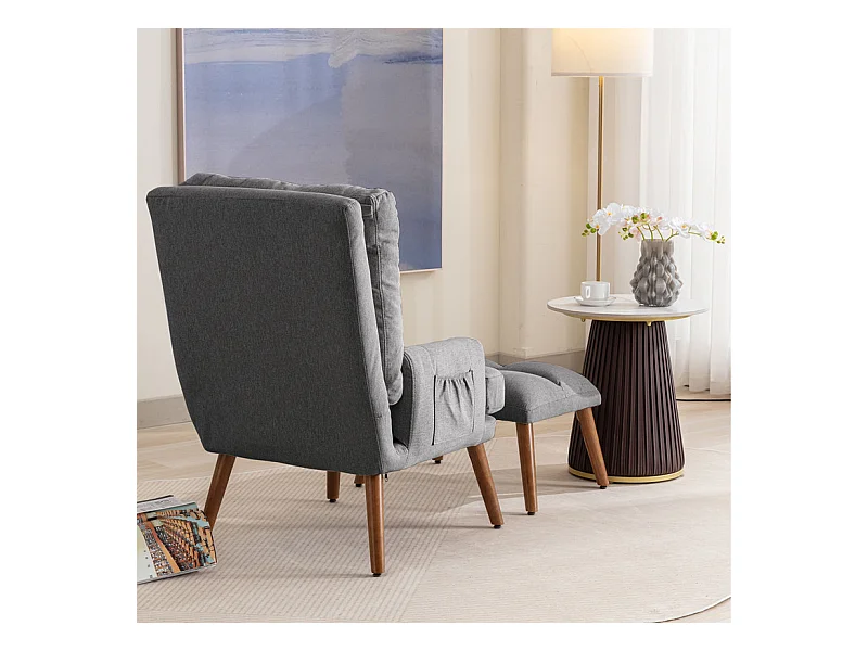 Fauteuil avec pouf en tissu gris - 5 niveau de dossier réglable - charge max 90kg - 65x50x96.5cm