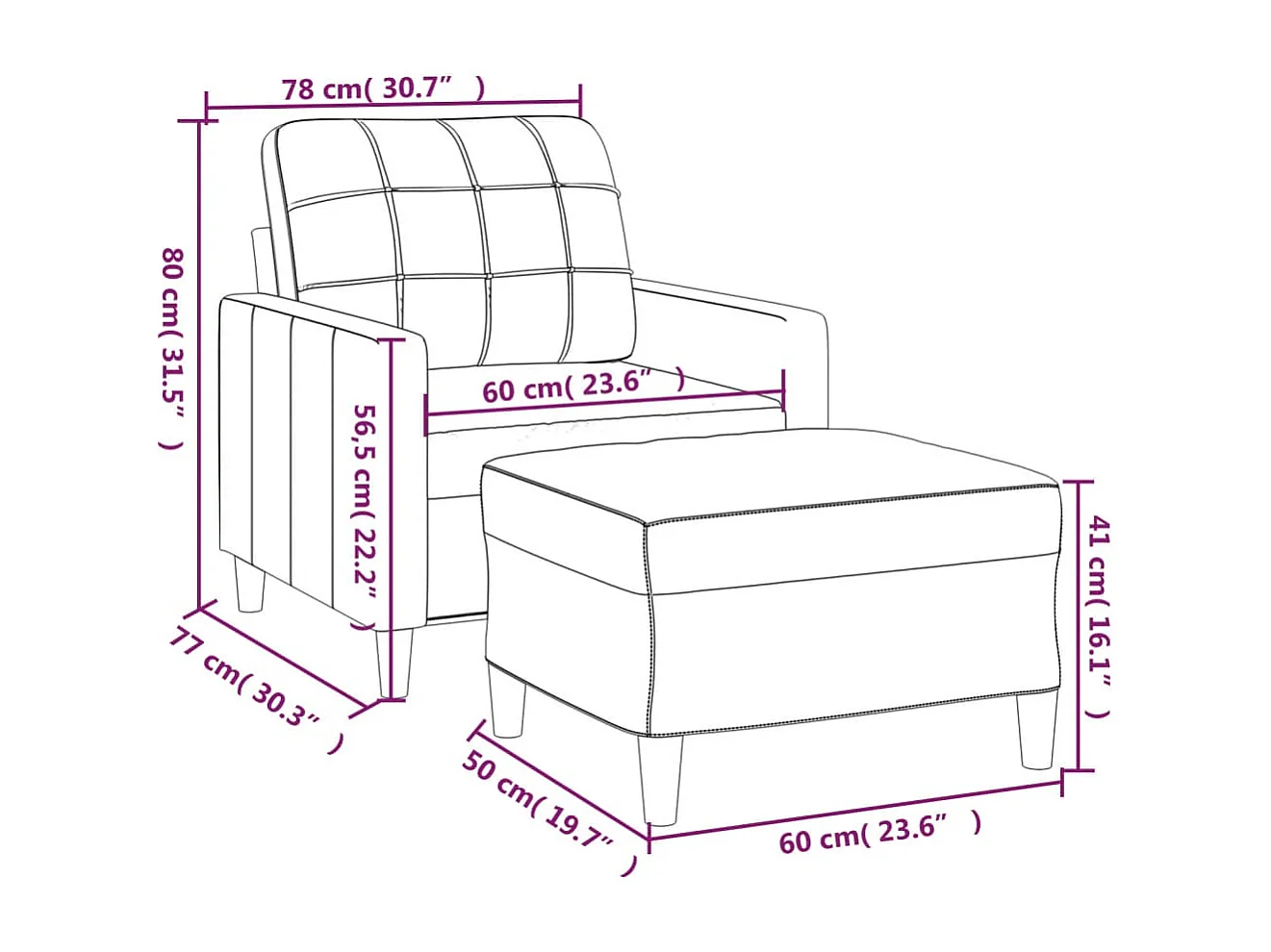 Fauteuil avec repose-pied Gris foncé 60 cm Tissu