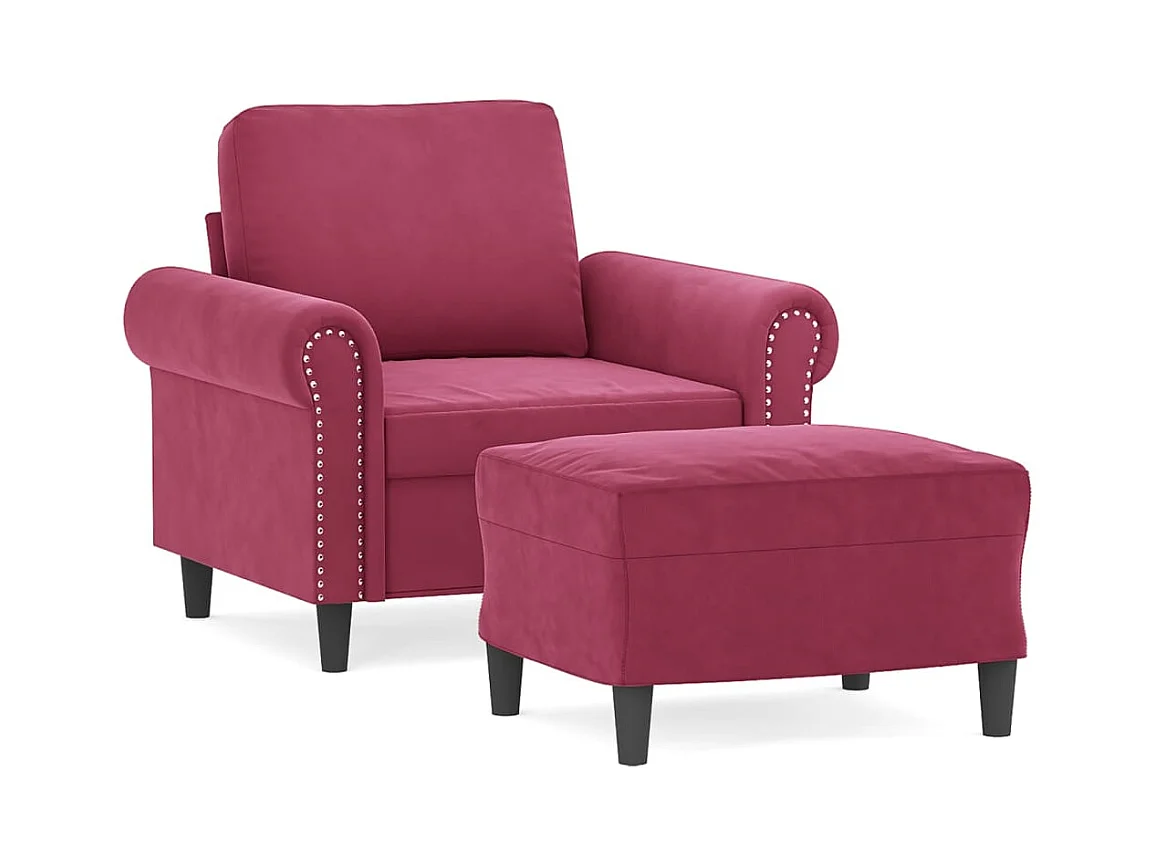 Fauteuil avec repose-pied Rouge bordeaux 60 cm Velours FR43397