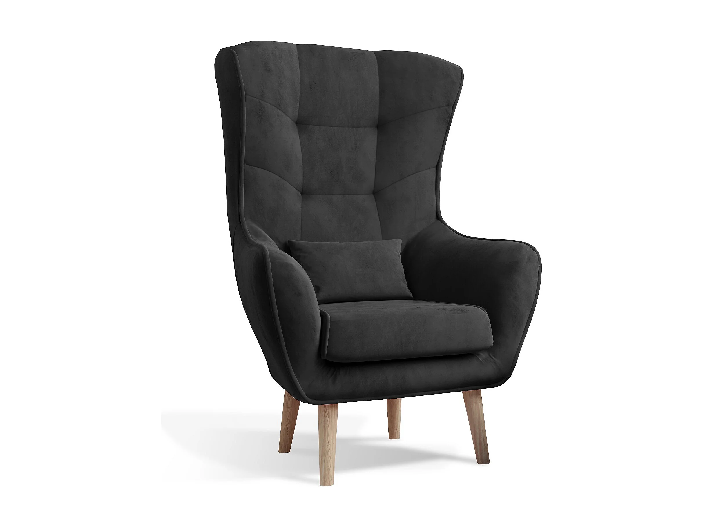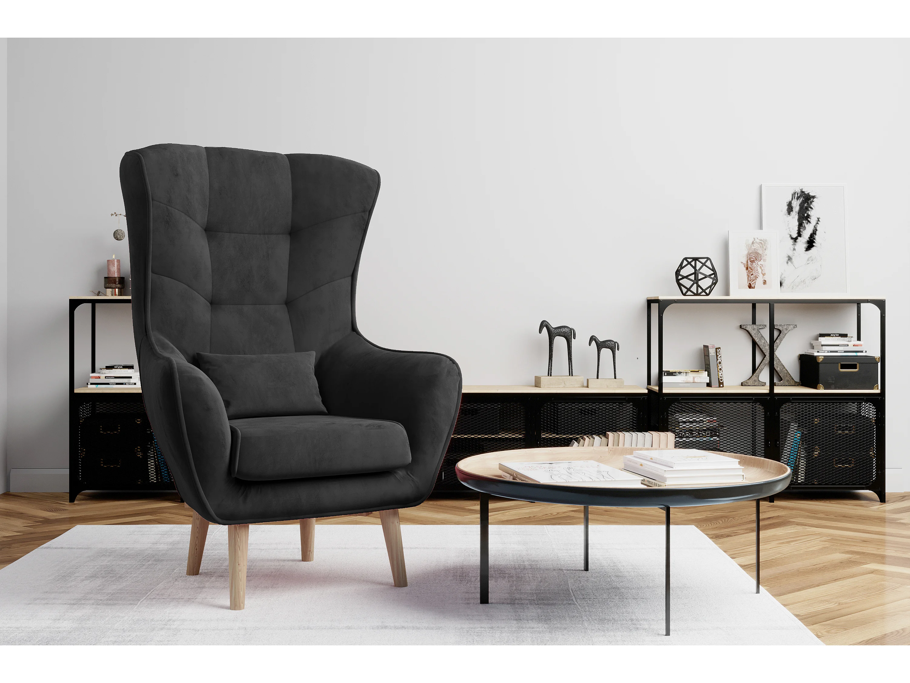 Fauteuil bergère velours anthracite capitonné Lazza 80cm
