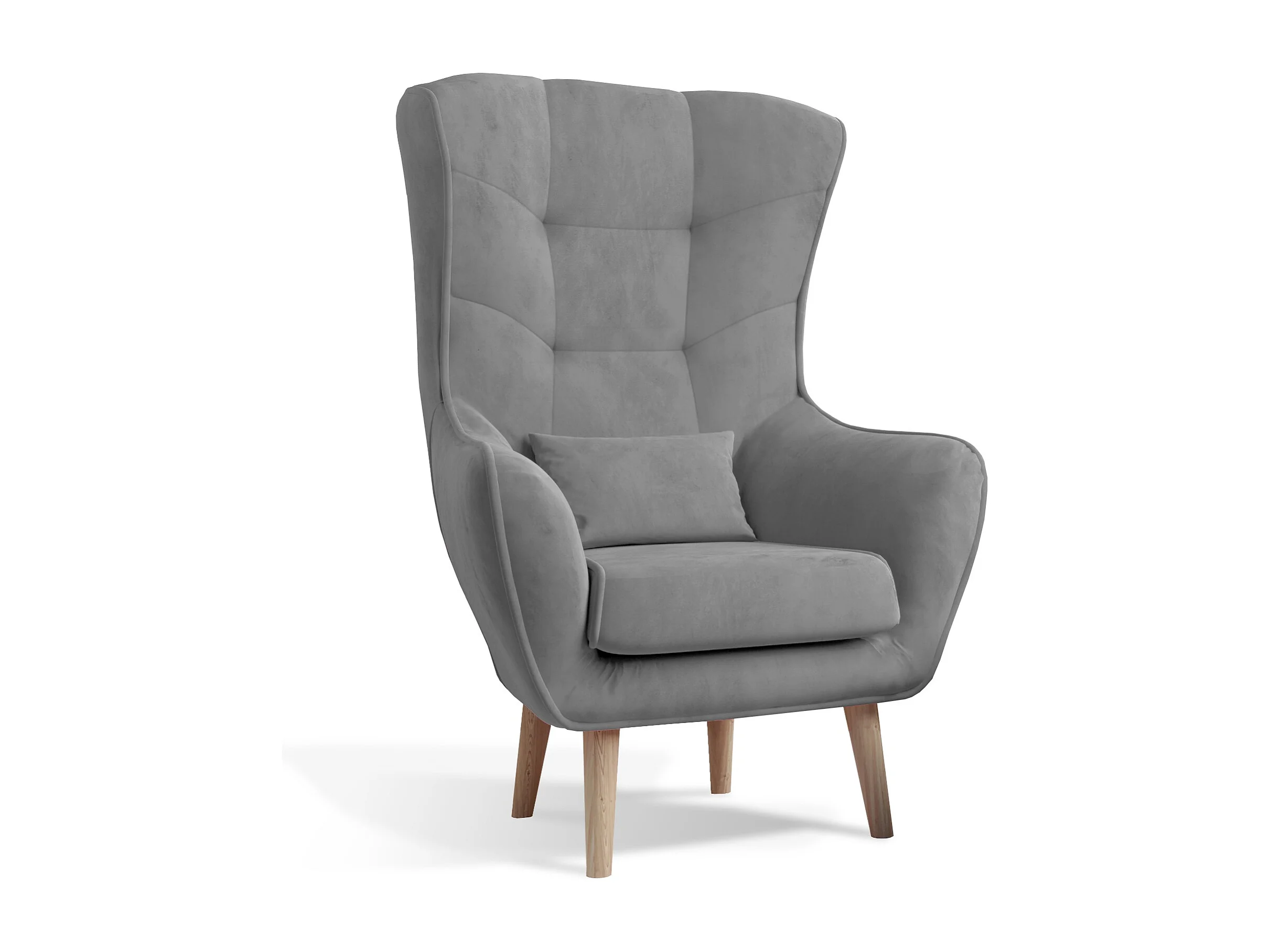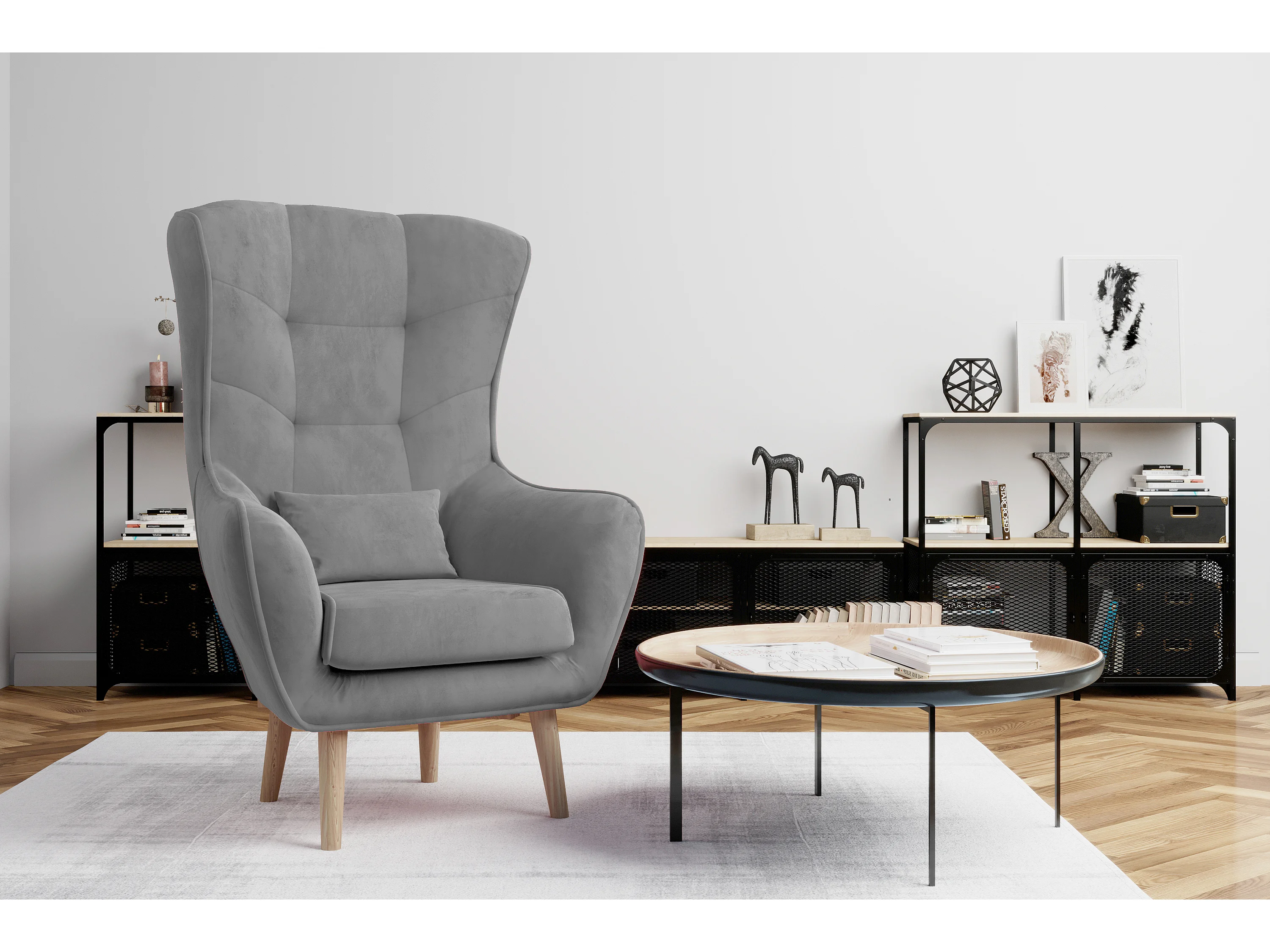 Fauteuil bergère velours gris capitonné Lazza 80cm