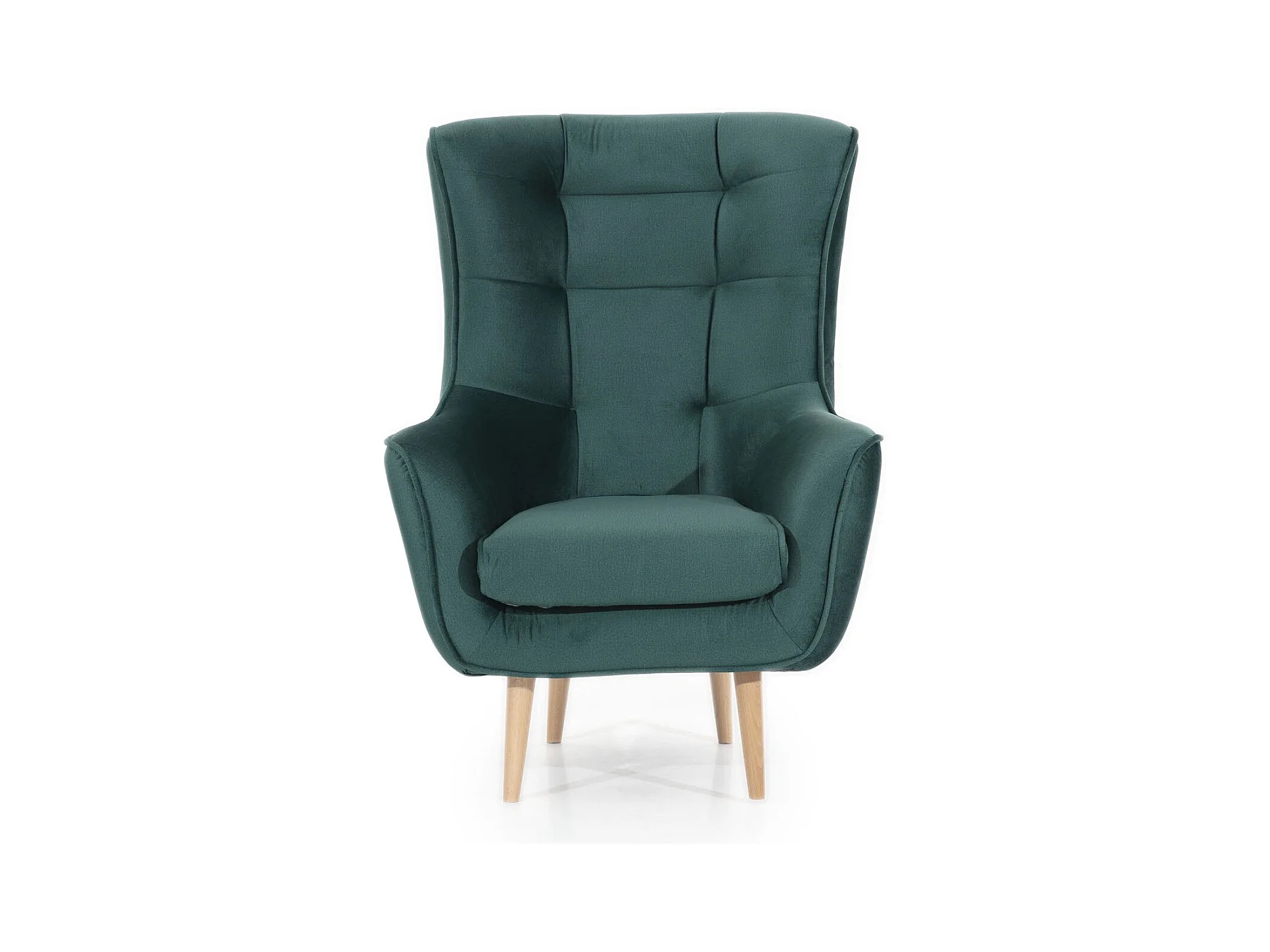 Fauteuil bergère velours vert capitonné Lazza 80cm