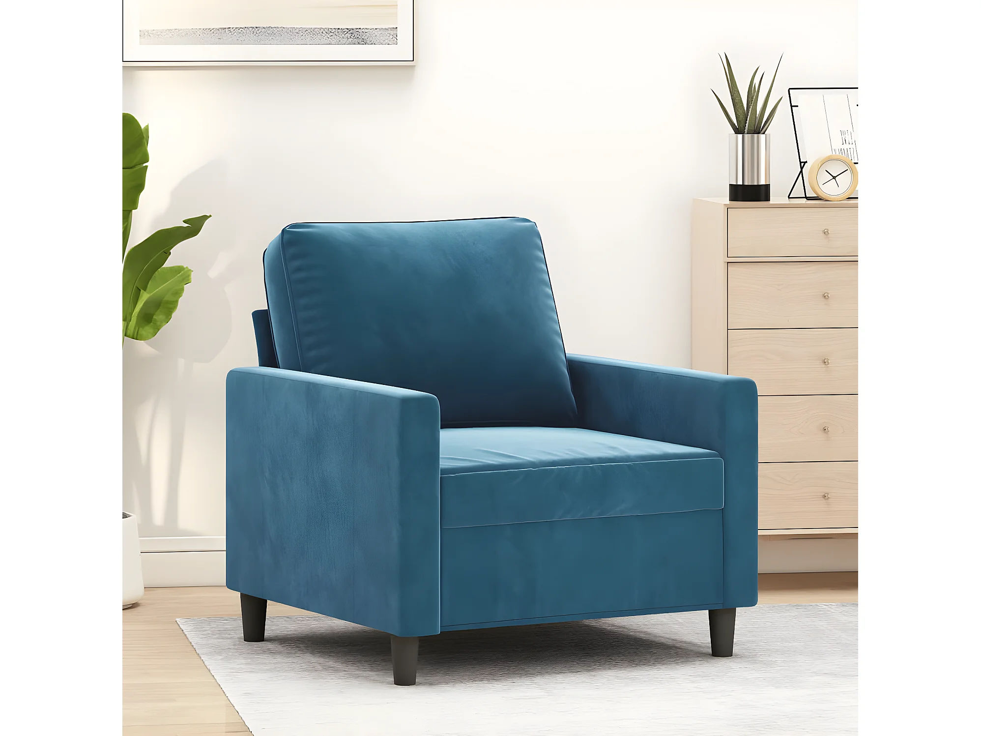 Fauteuil Bleu 60 cm Velours REO84512