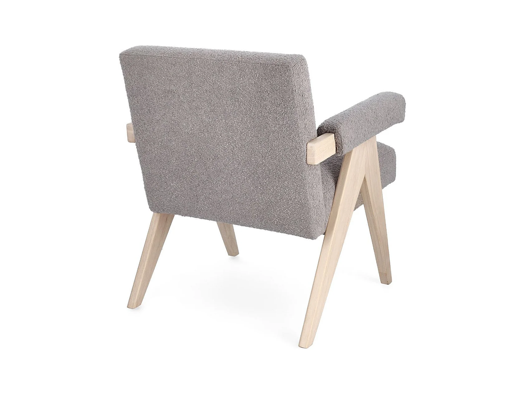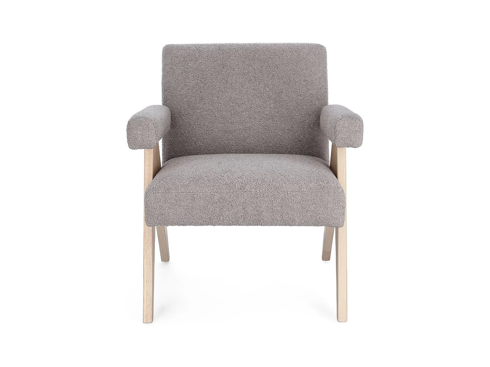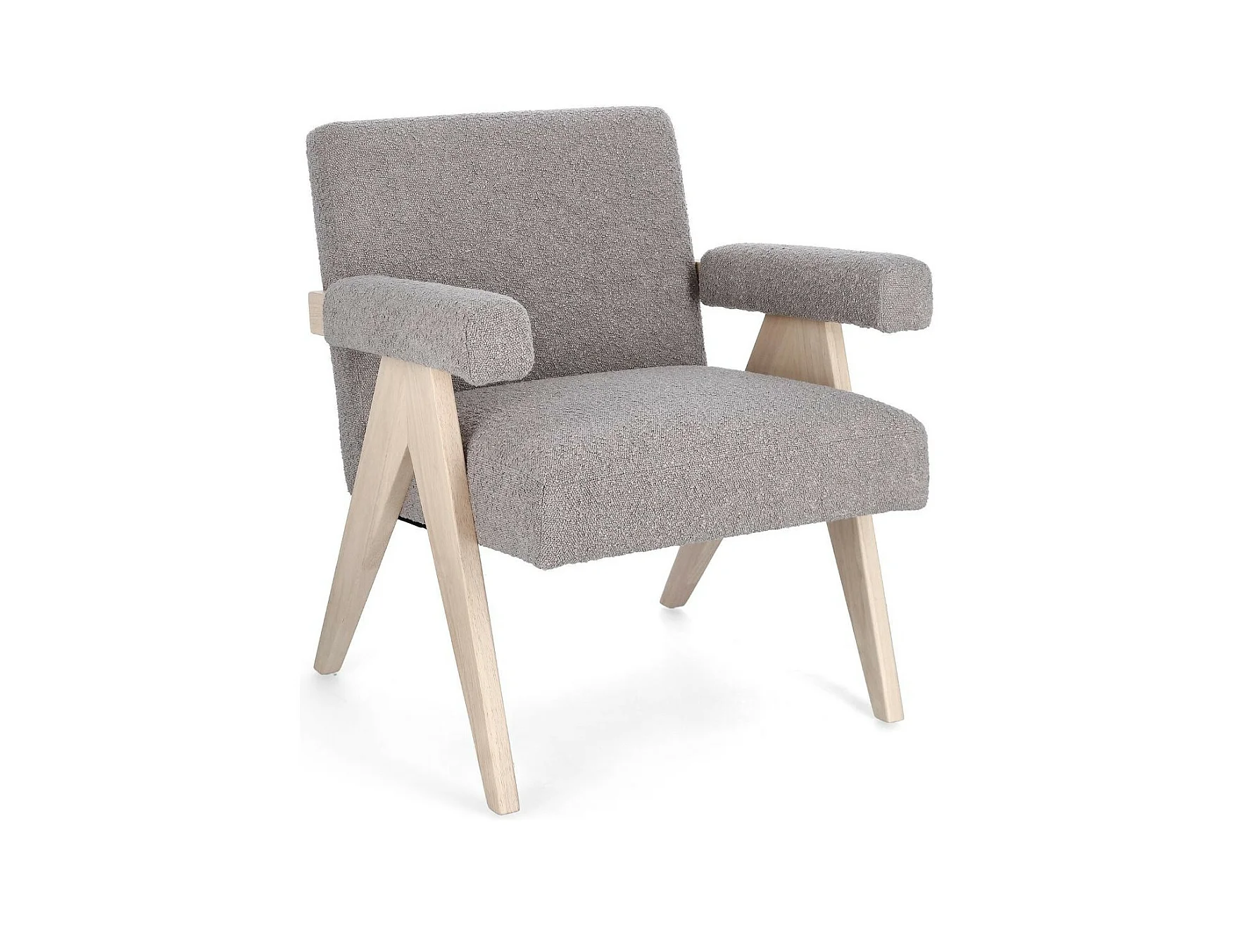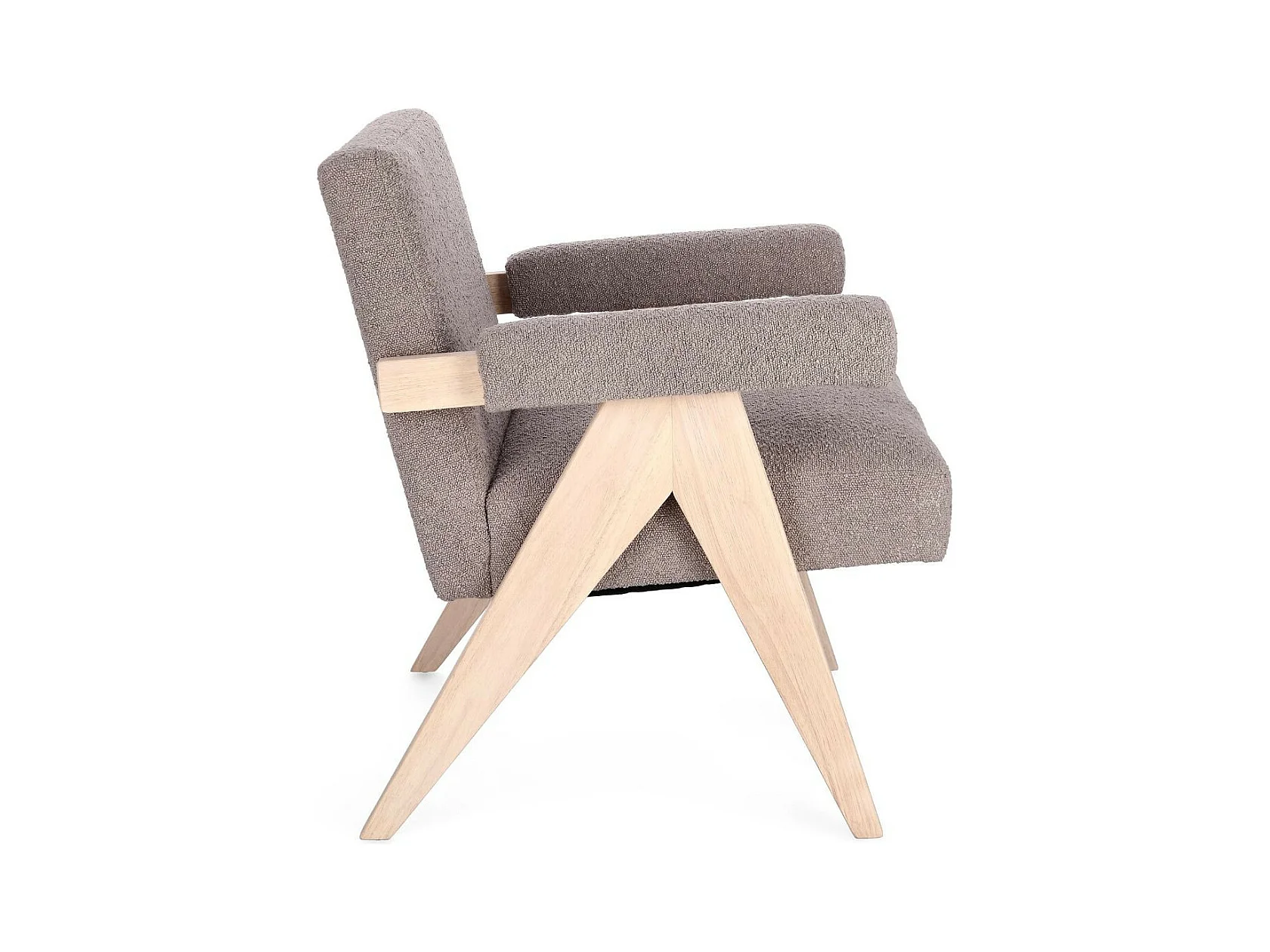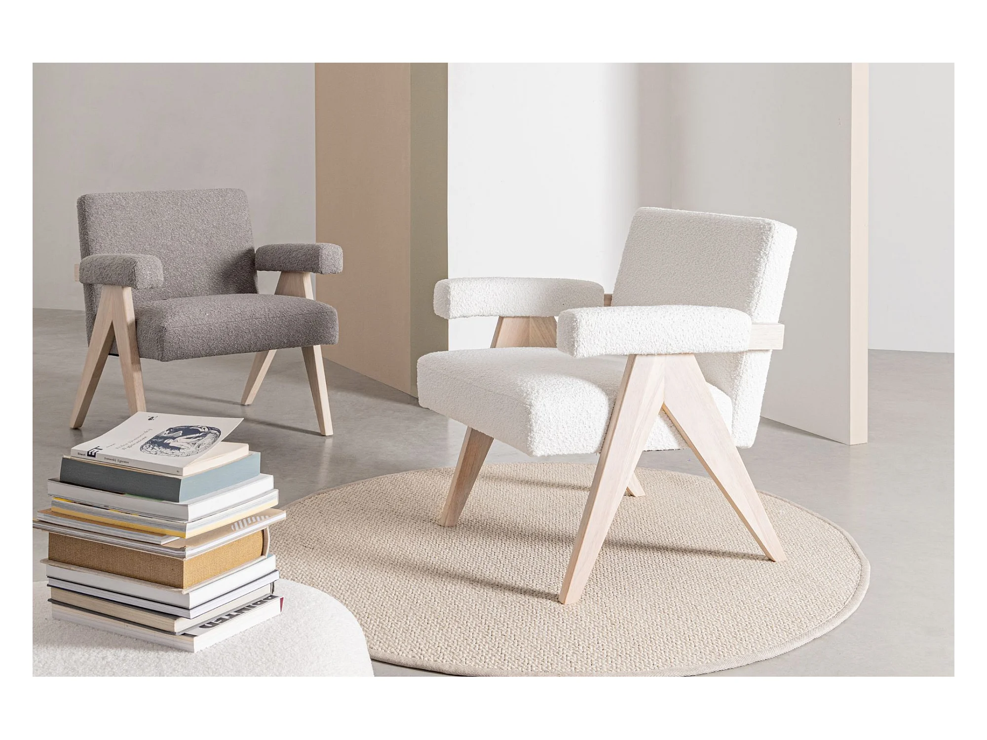 Fauteuil bouclette à accoudoirs et bois naturel - ZAIA
