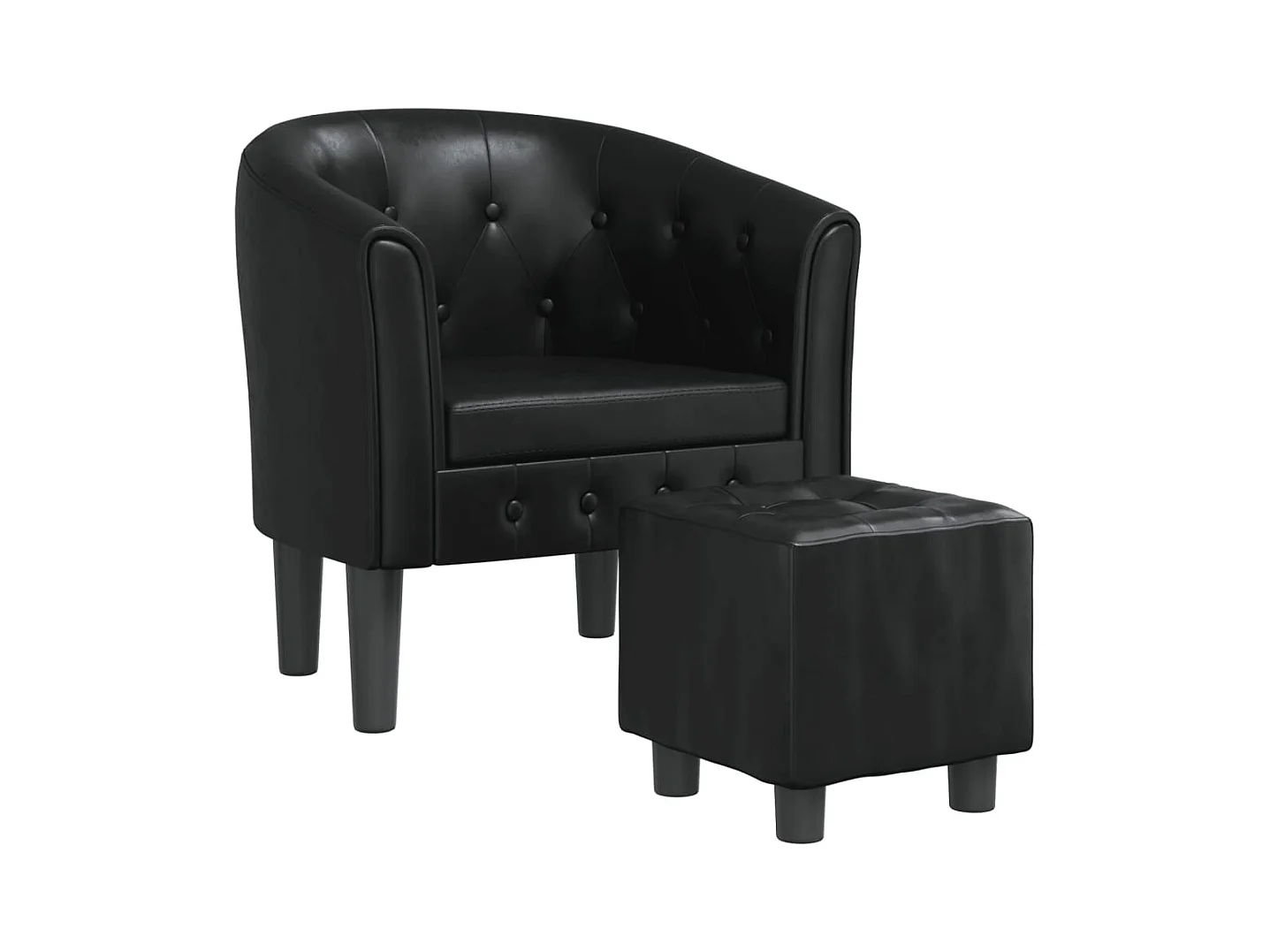 Fauteuil avec repose-pied Noir 60 cm Similicuir