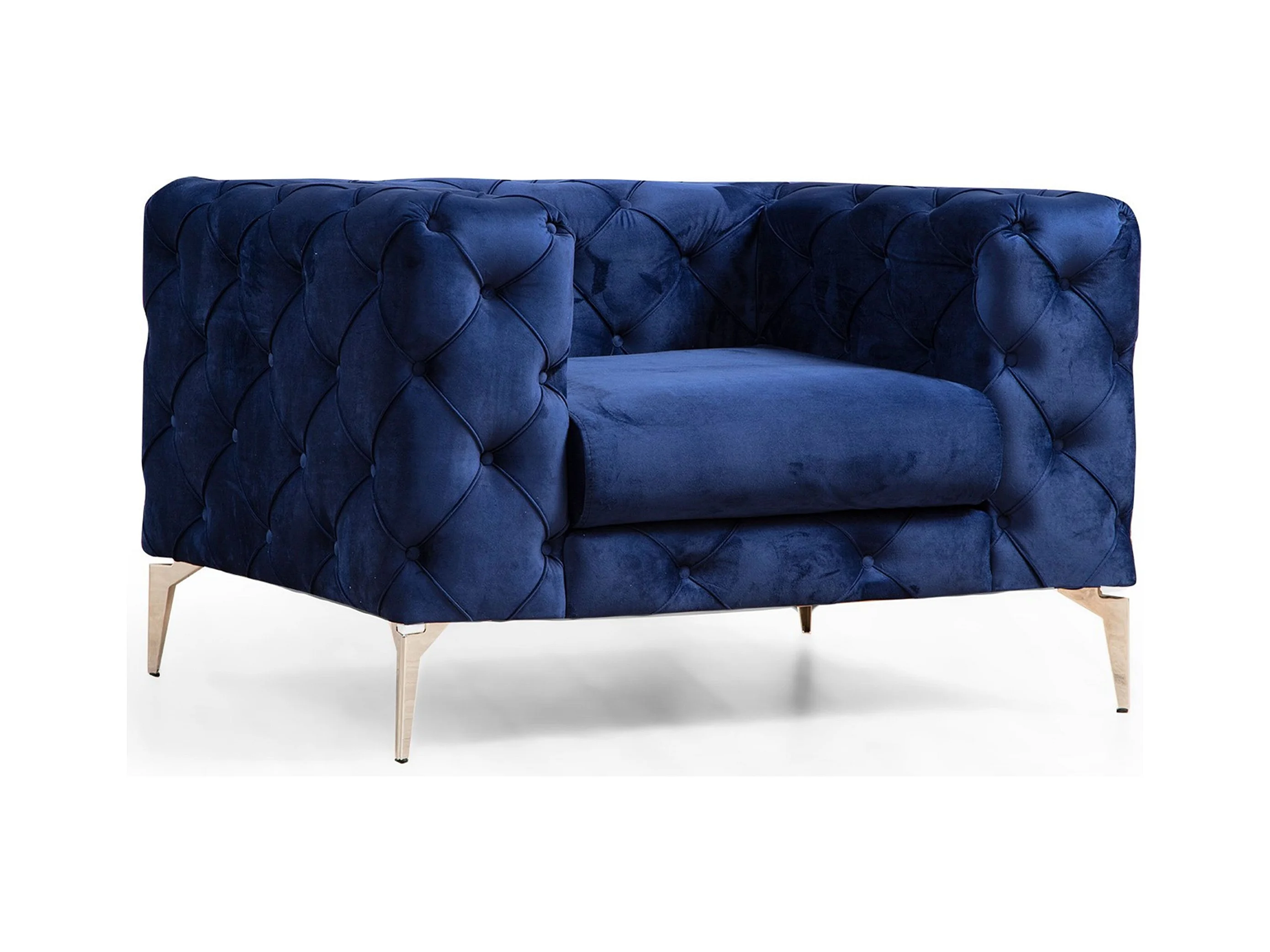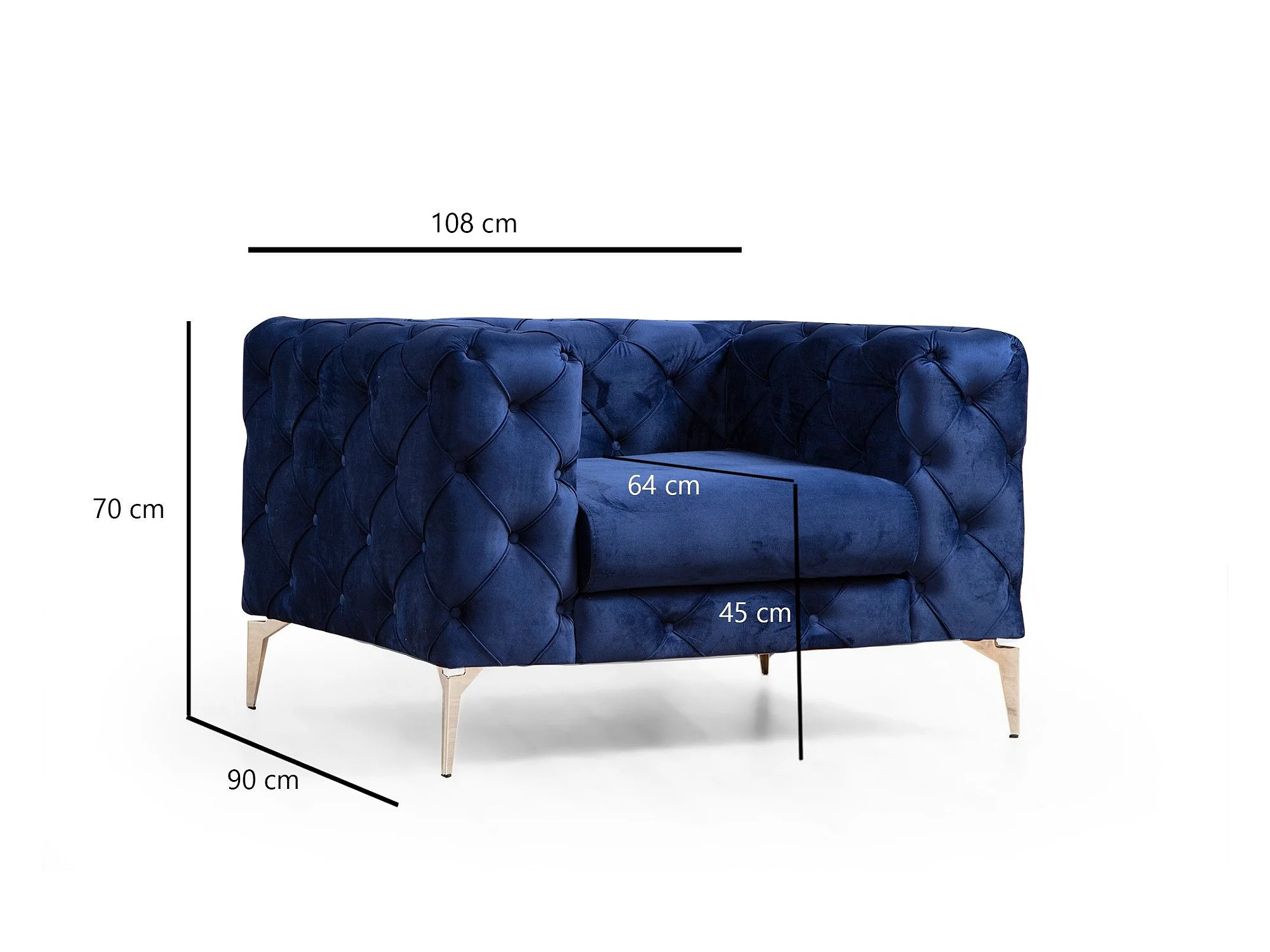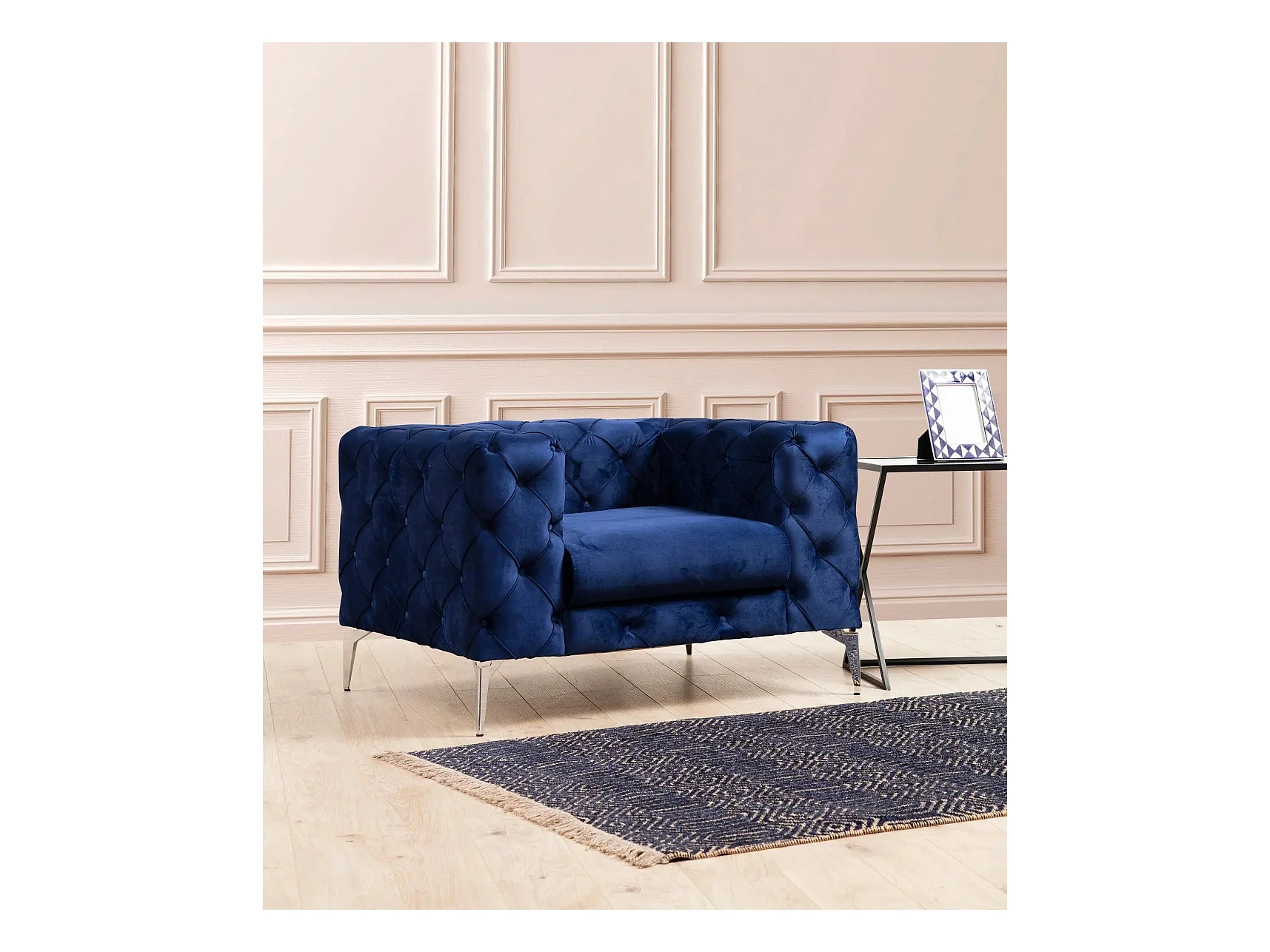 Fauteuil capitonné avec coussin Alykes Velours Bleu marine
