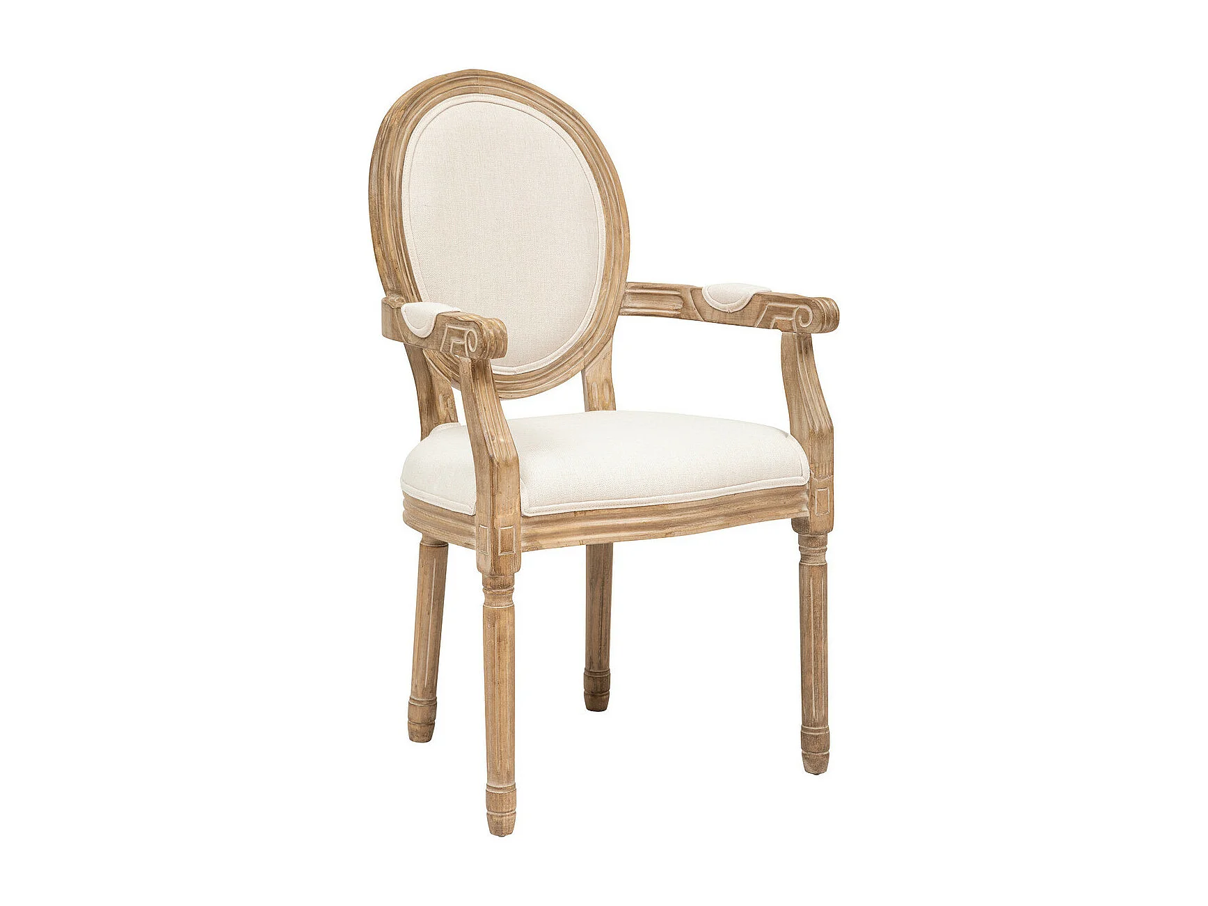 Fauteuil Chaise de table assise Beige Lin et pieds en Bois d'Hévéa