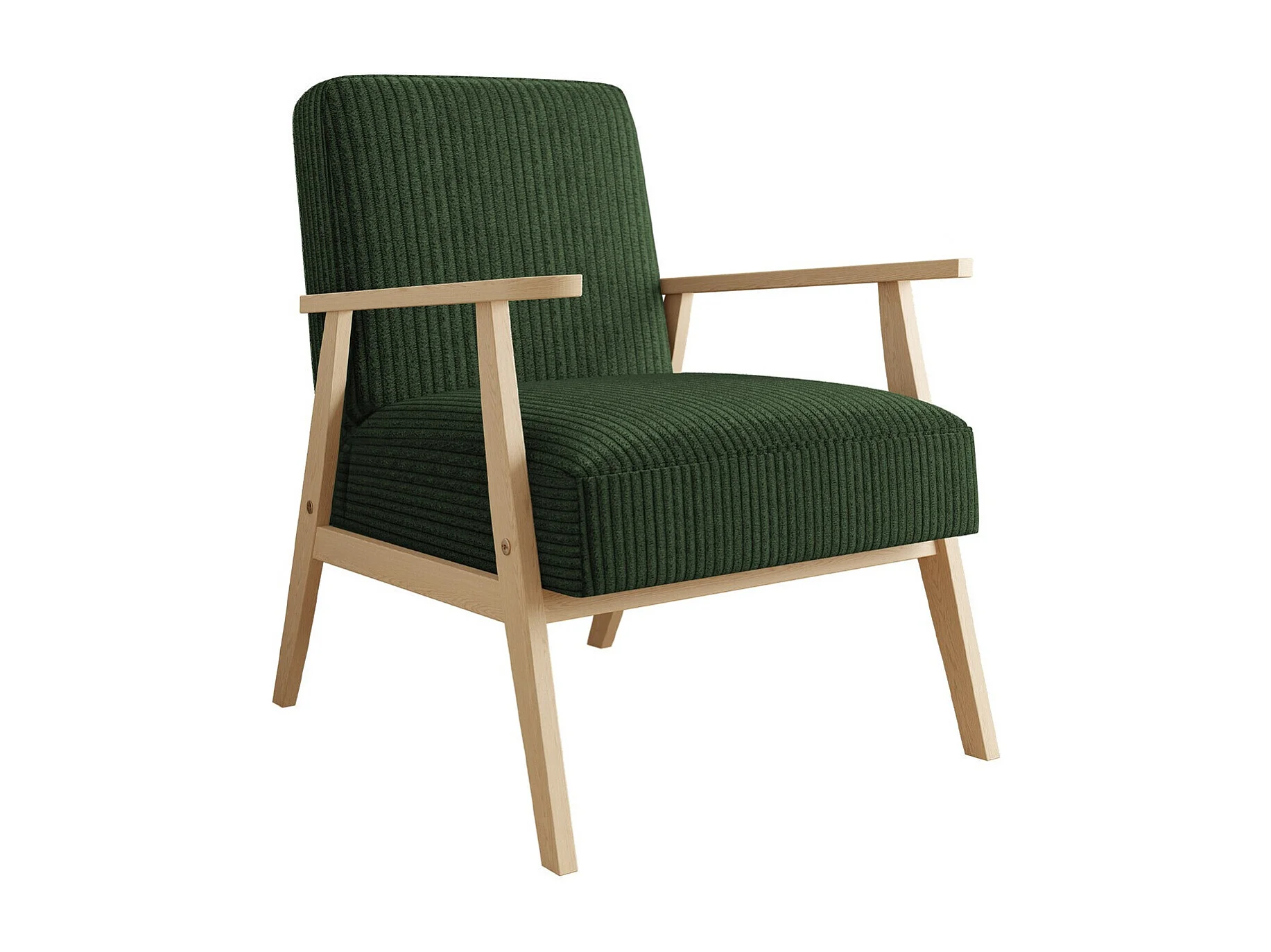 Fauteuil Clovis 100, Vert, 76x59x67cm, Tapisserie, Pieds: Bois