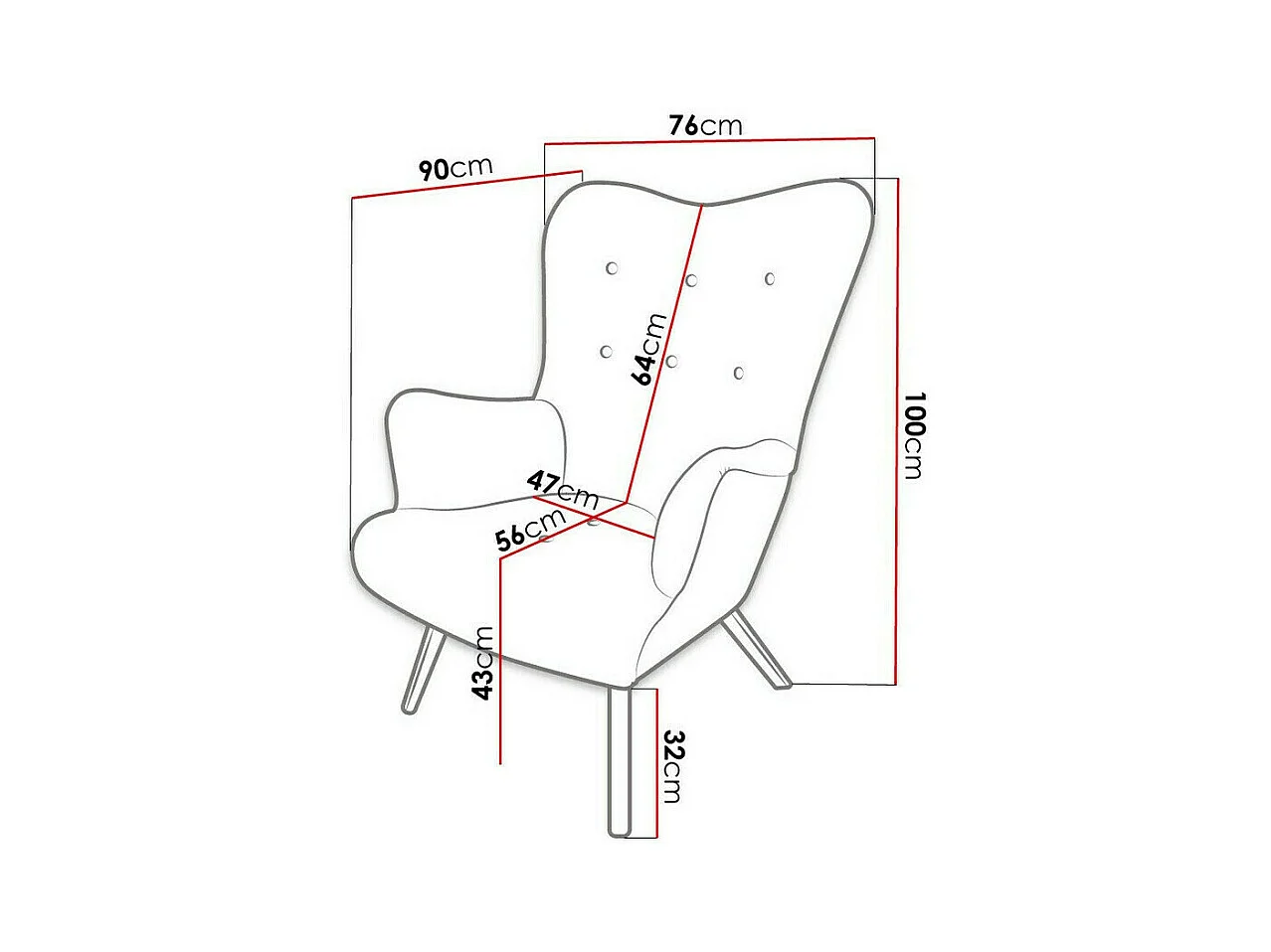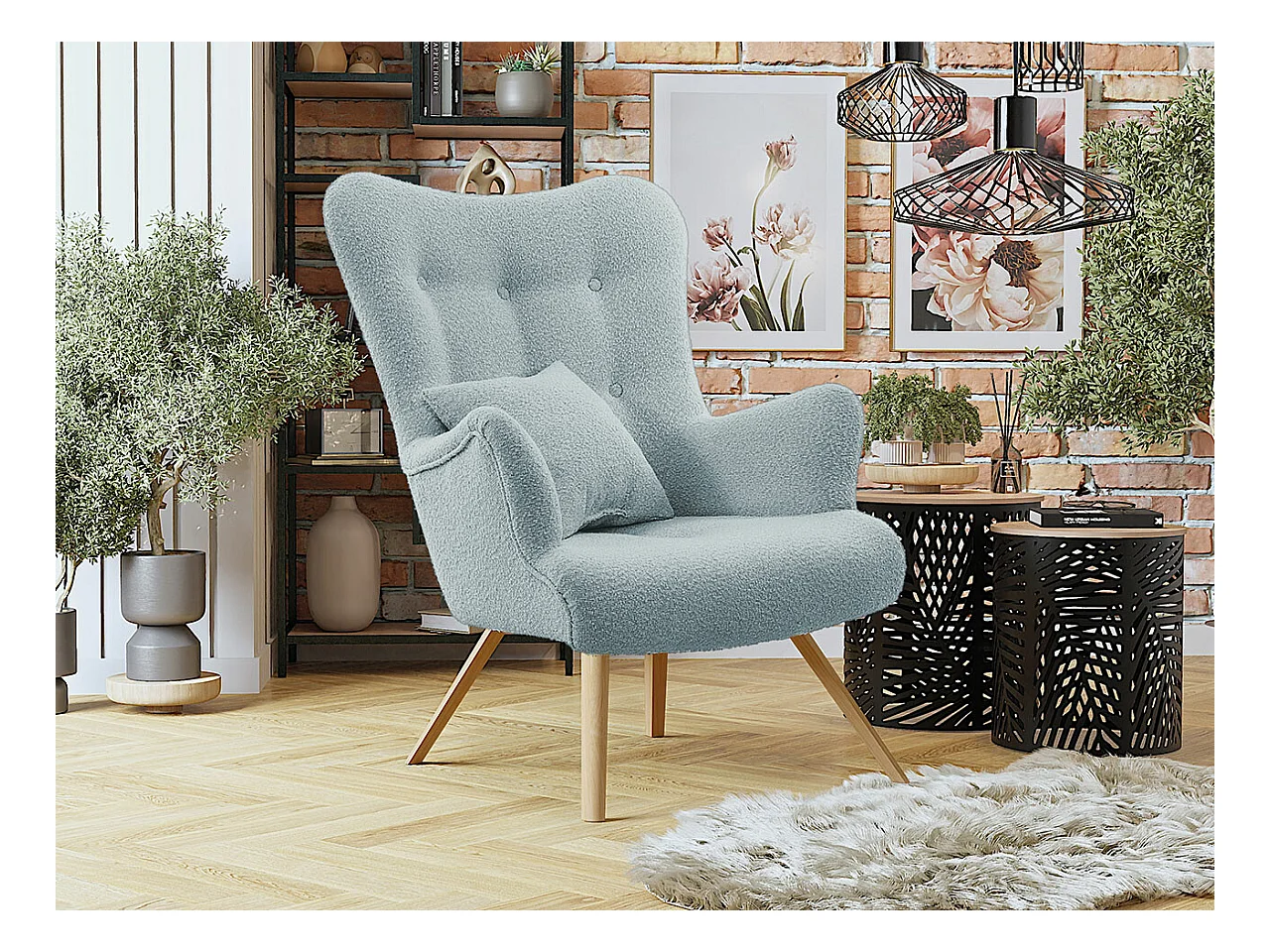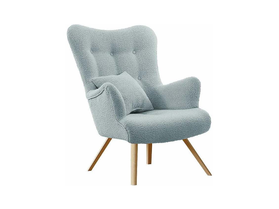 Fauteuil Clovis 106, Turquoise, 100x76x90cm, Tapisserie, Pieds: Bois