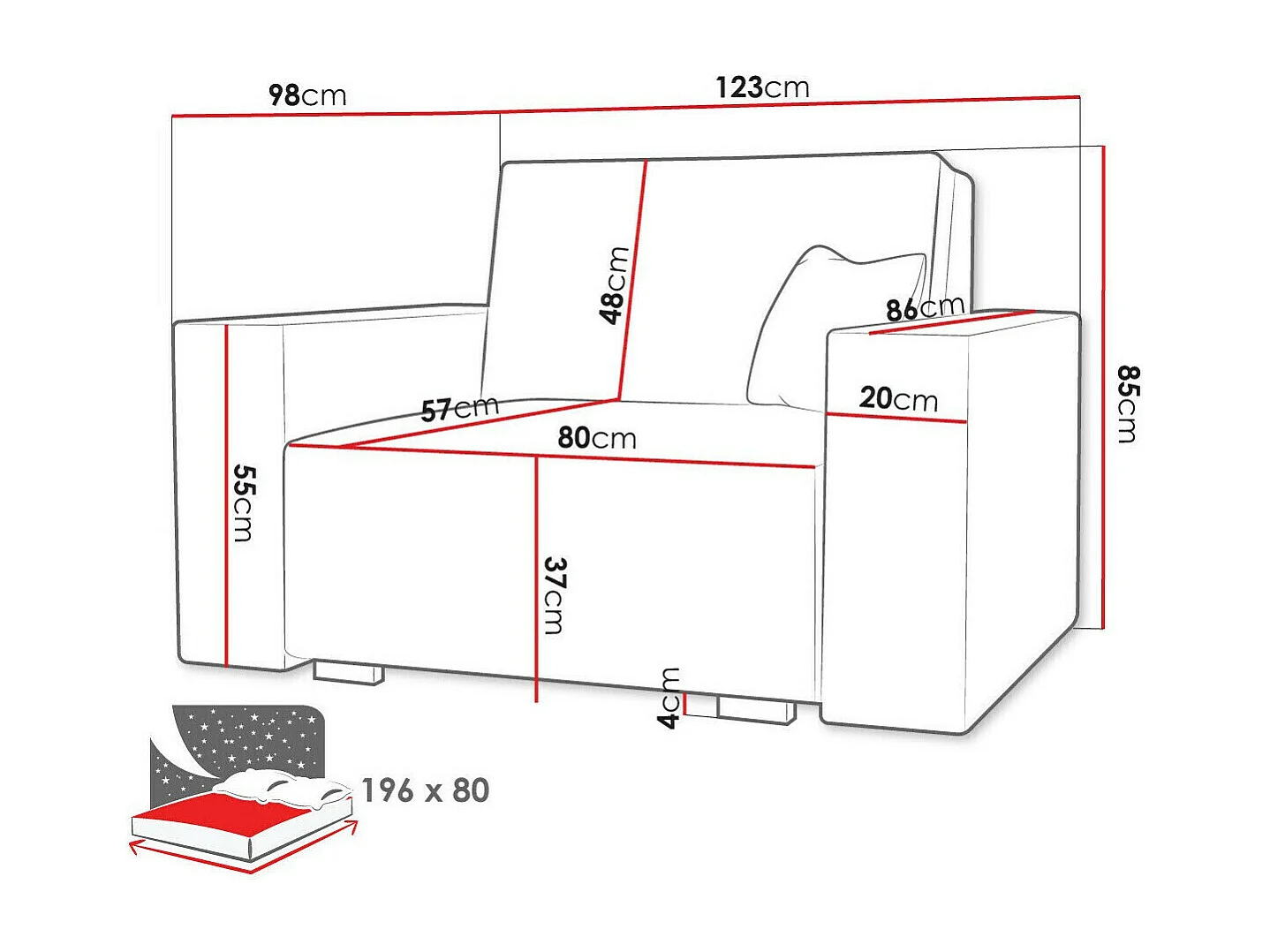 Fauteuil Columbus 195, Gris, 85x123x98cm, Tapisserie, Pieds: Bois, Mobilier déjà assemblé