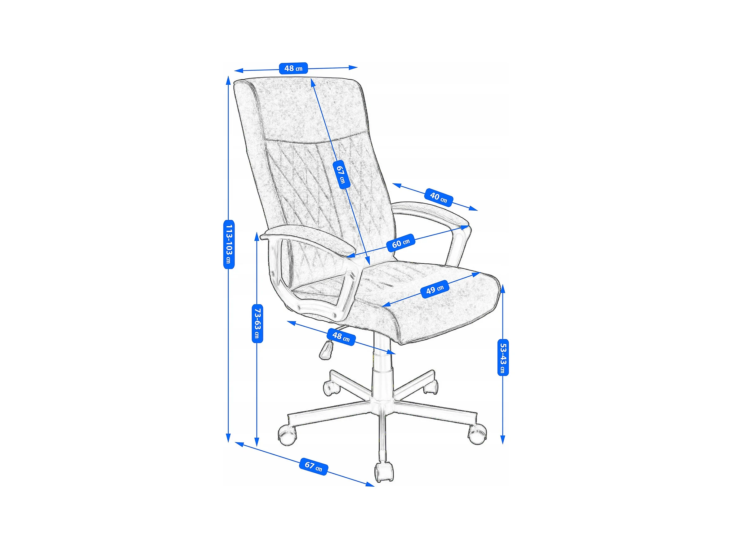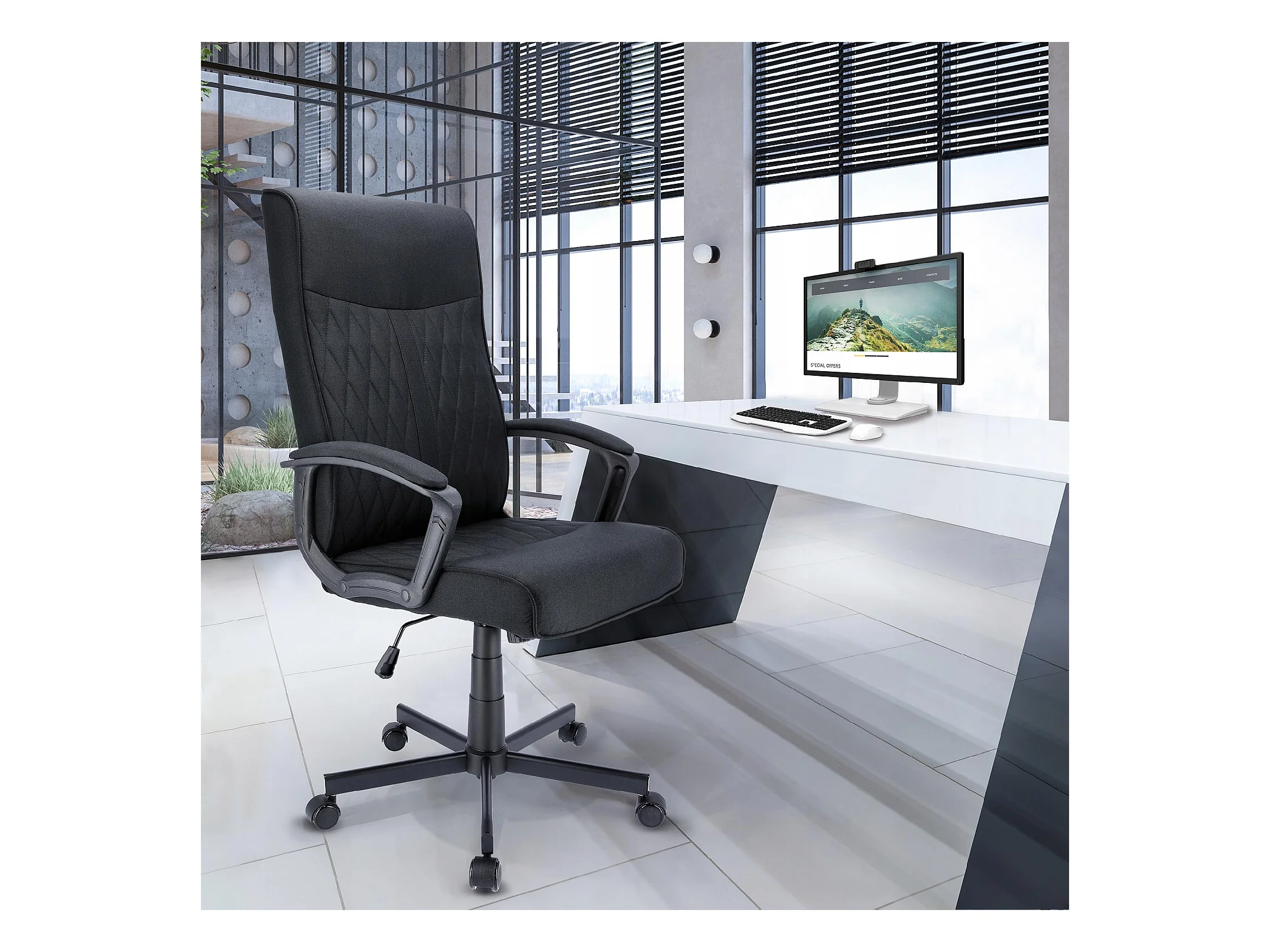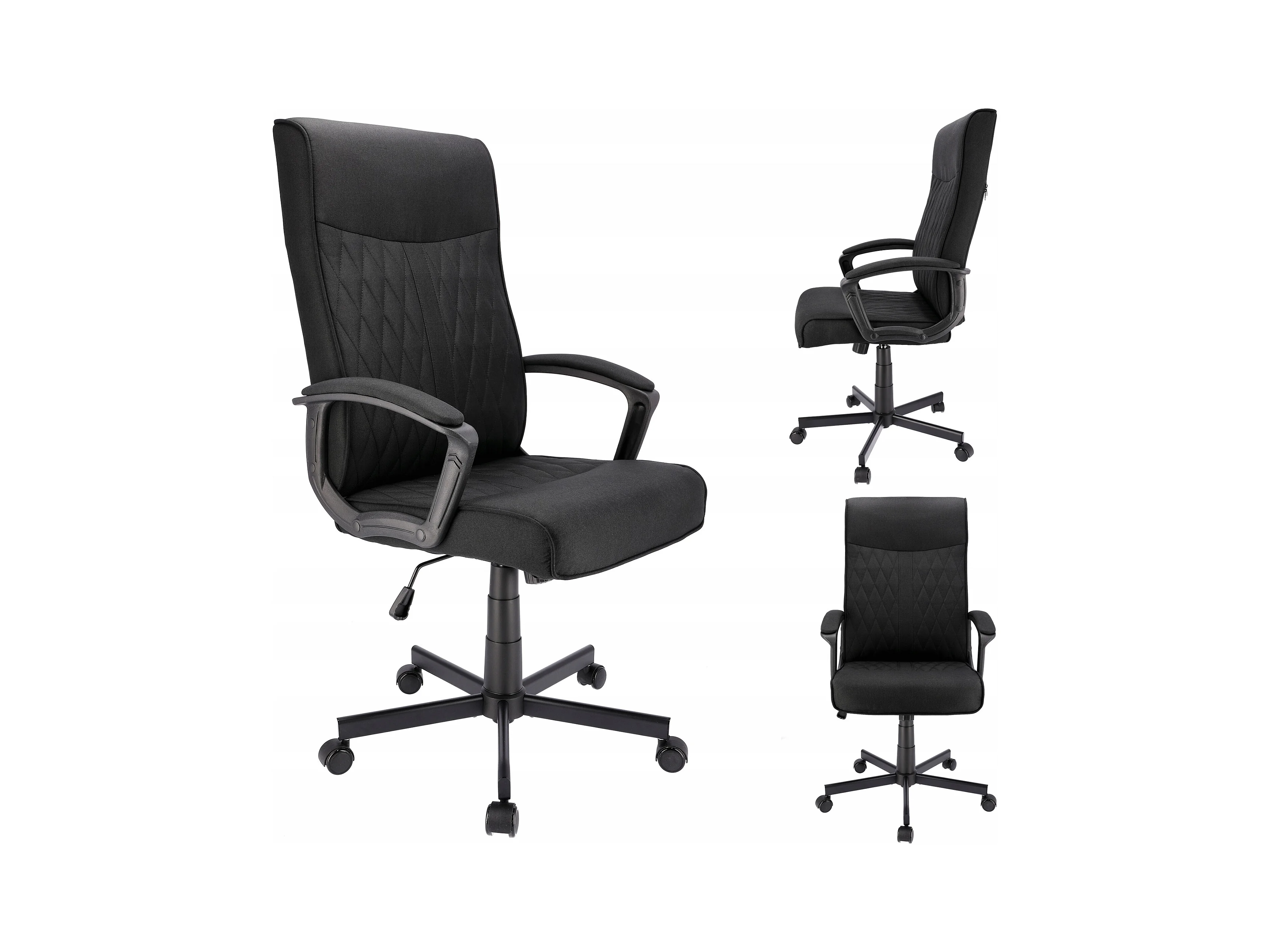Chaise de bureau Dubbo, Fauteuil présidentiel avec accoudoirs, Chaise de bureau ergonomique, 70x65h103/114 cm, Noir