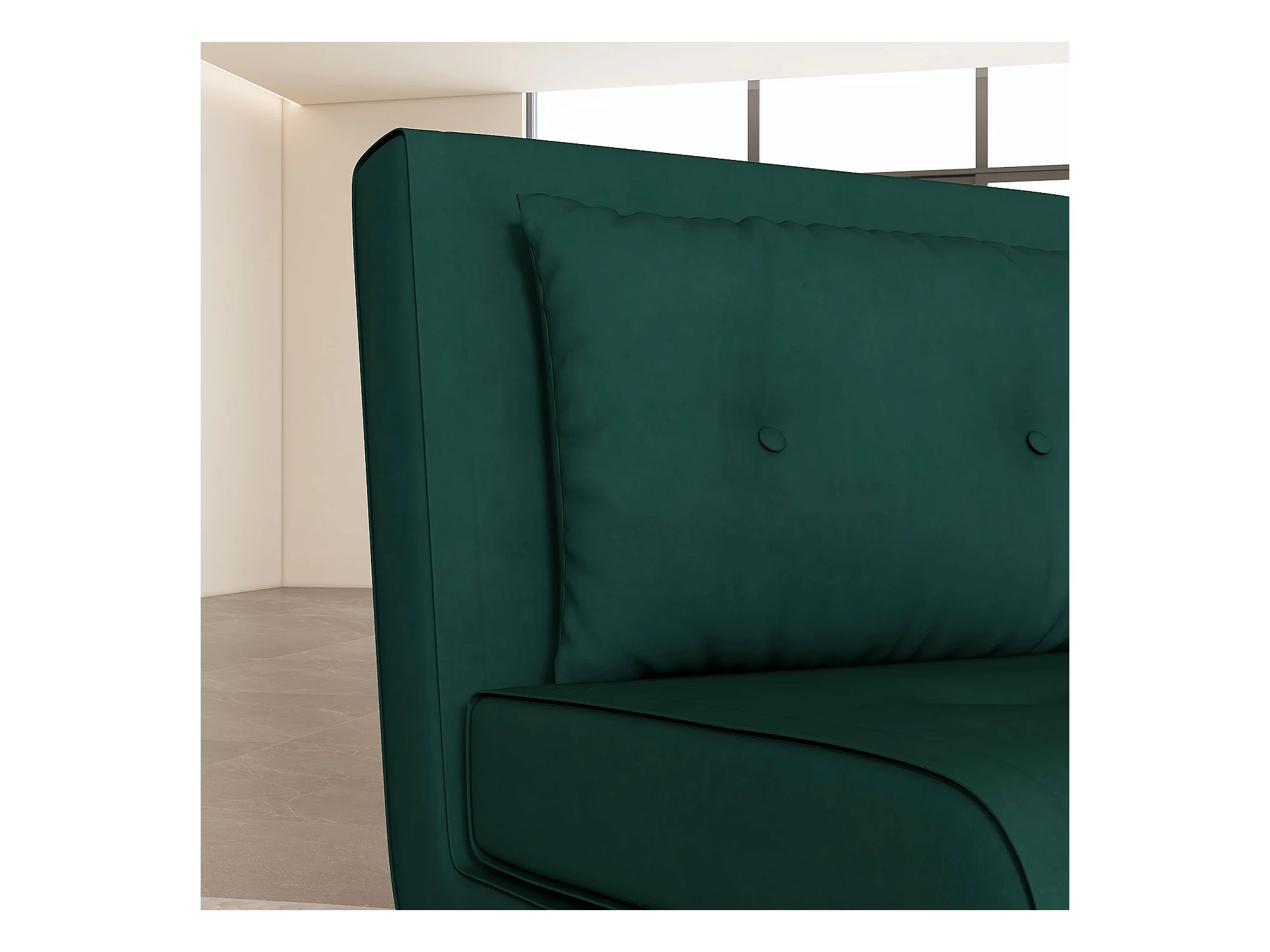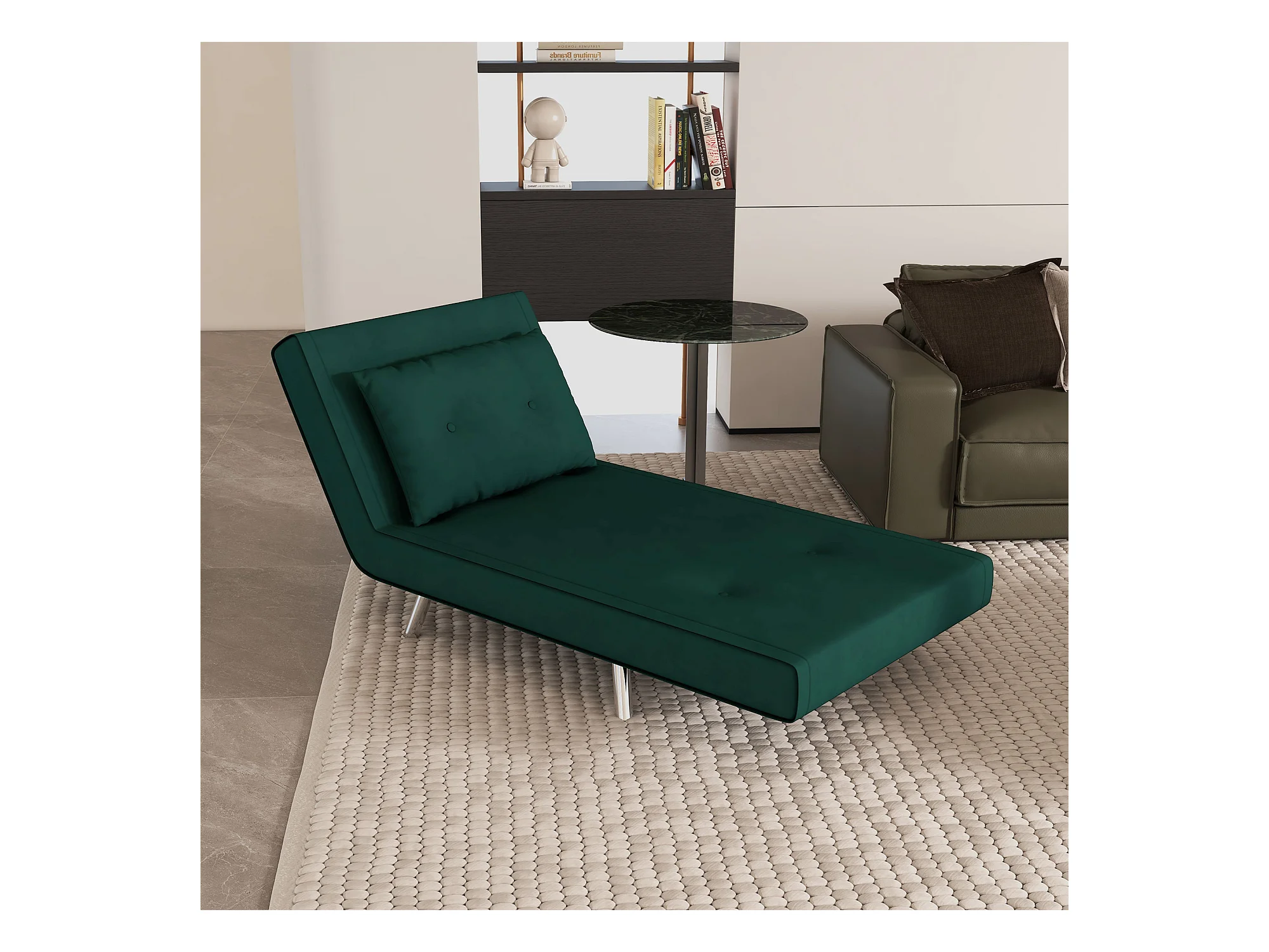 Fauteuil convertible 3-en-1 avec coussin, tissu velours, pieds en acier, vert foncé (77x88x83cm)