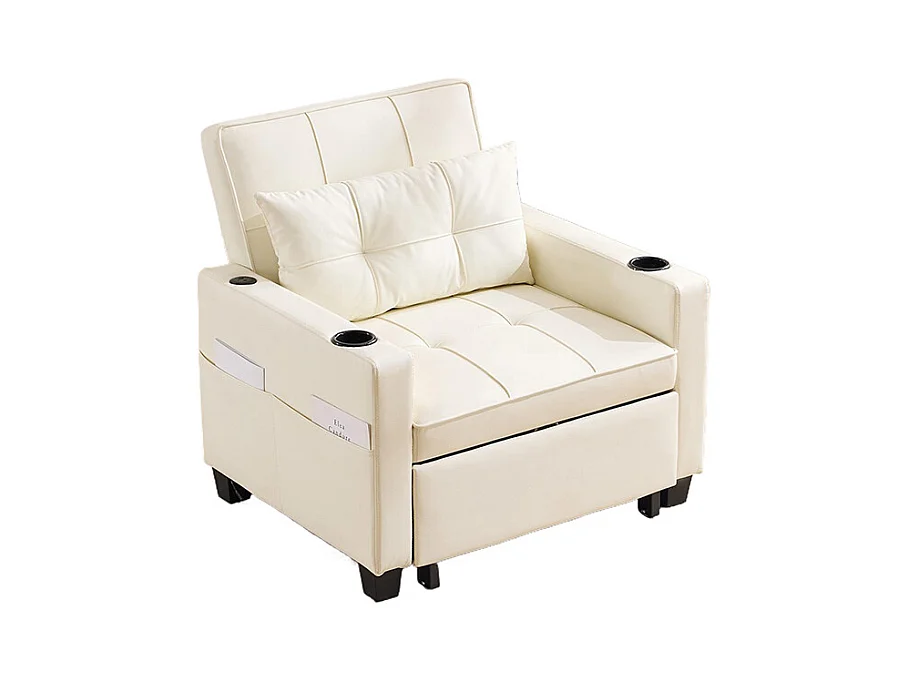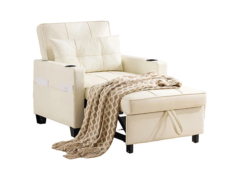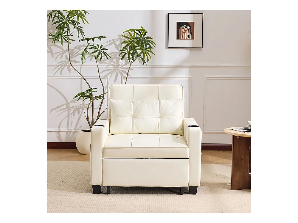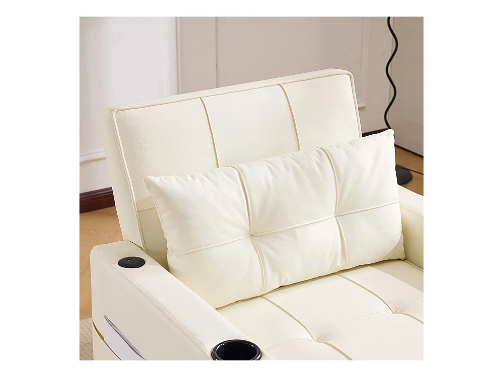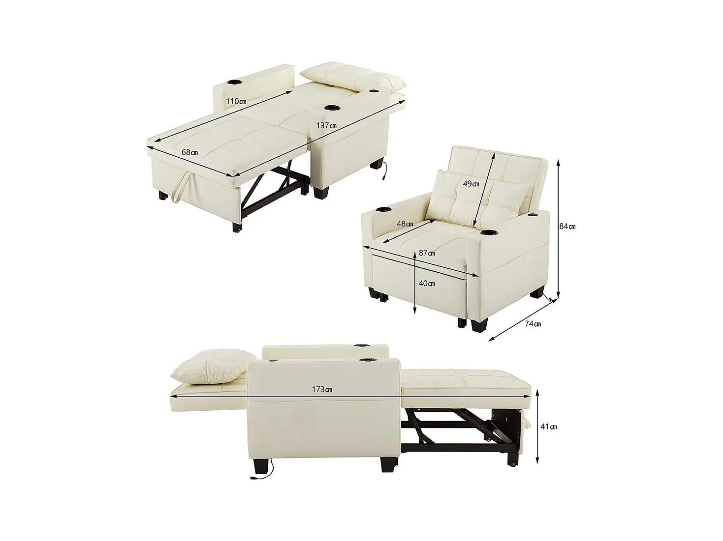 Fauteuil convertible 3 en 1 avec porte-gobelets port USB chaise longue parfait petites pièces blanc