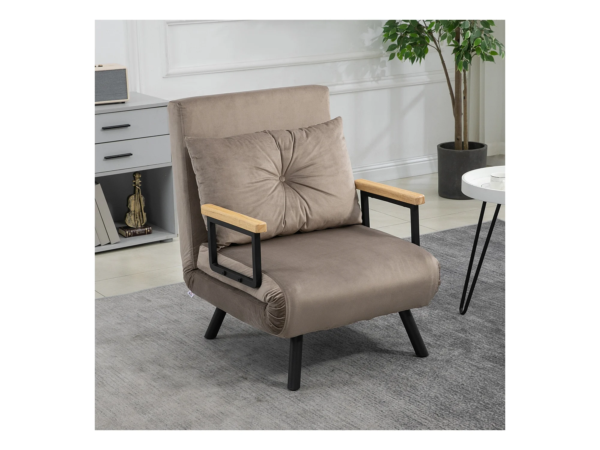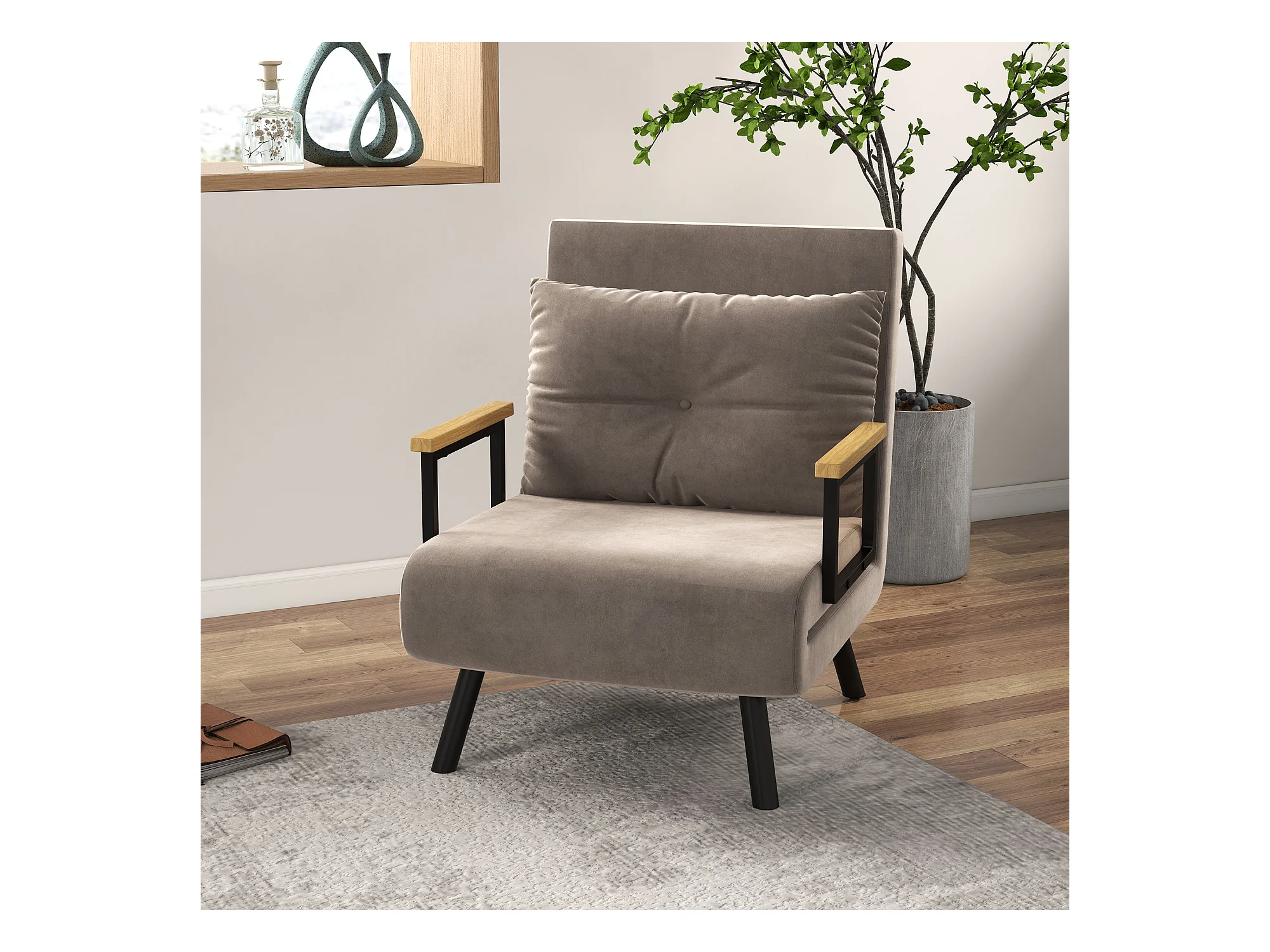 Fauteuil convertible 3 en 1 chauffeuse lit dossier réglable coussin accoudoirs bois velours gris