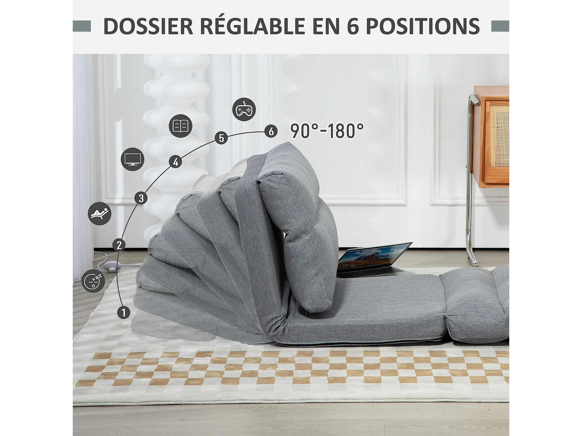 Fauteuil convertible fauteuil paresseux grand confort inclinaison dossier multipositions 90°-180° tissu gris chiné